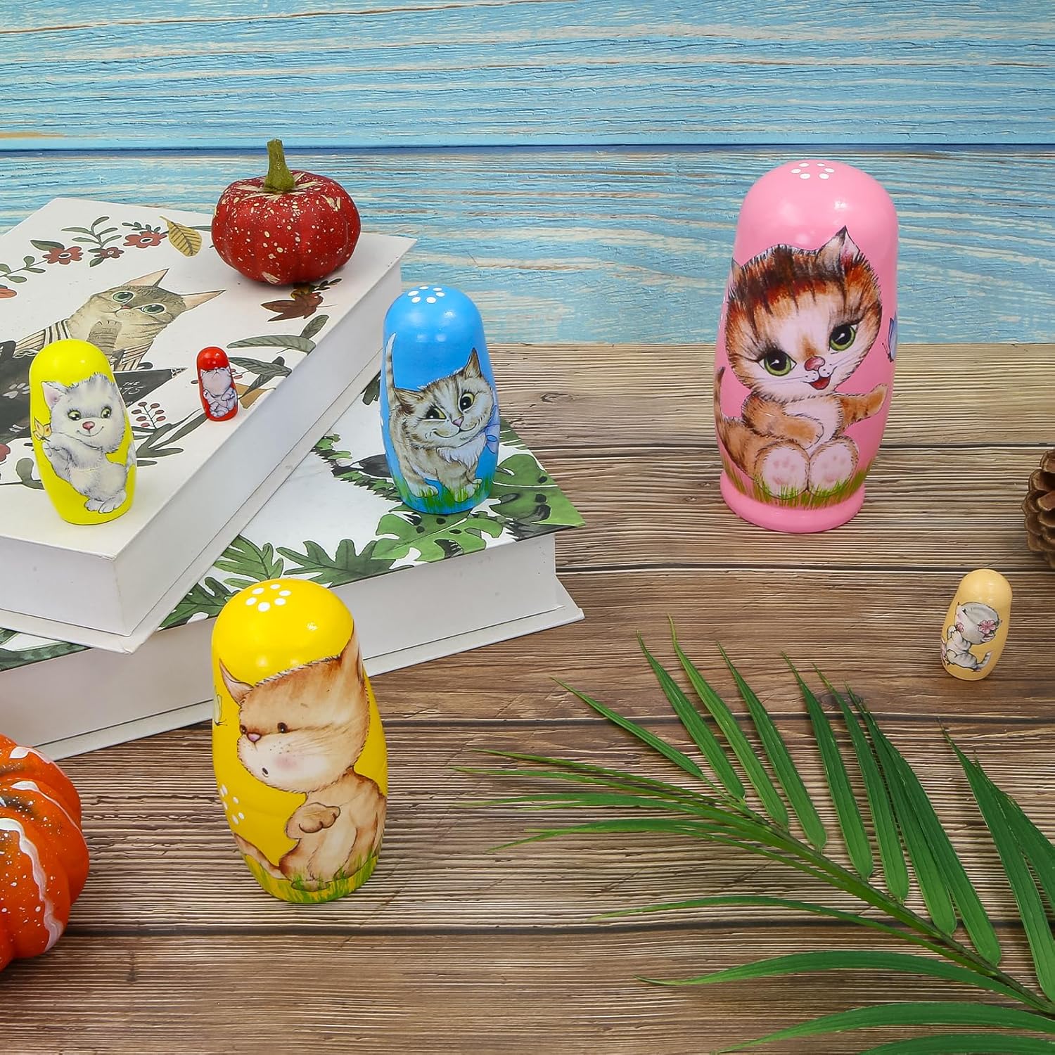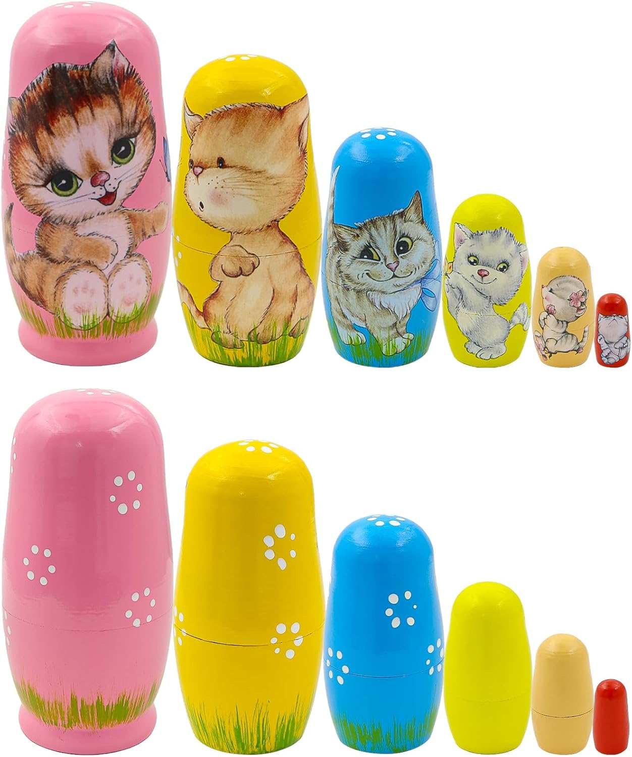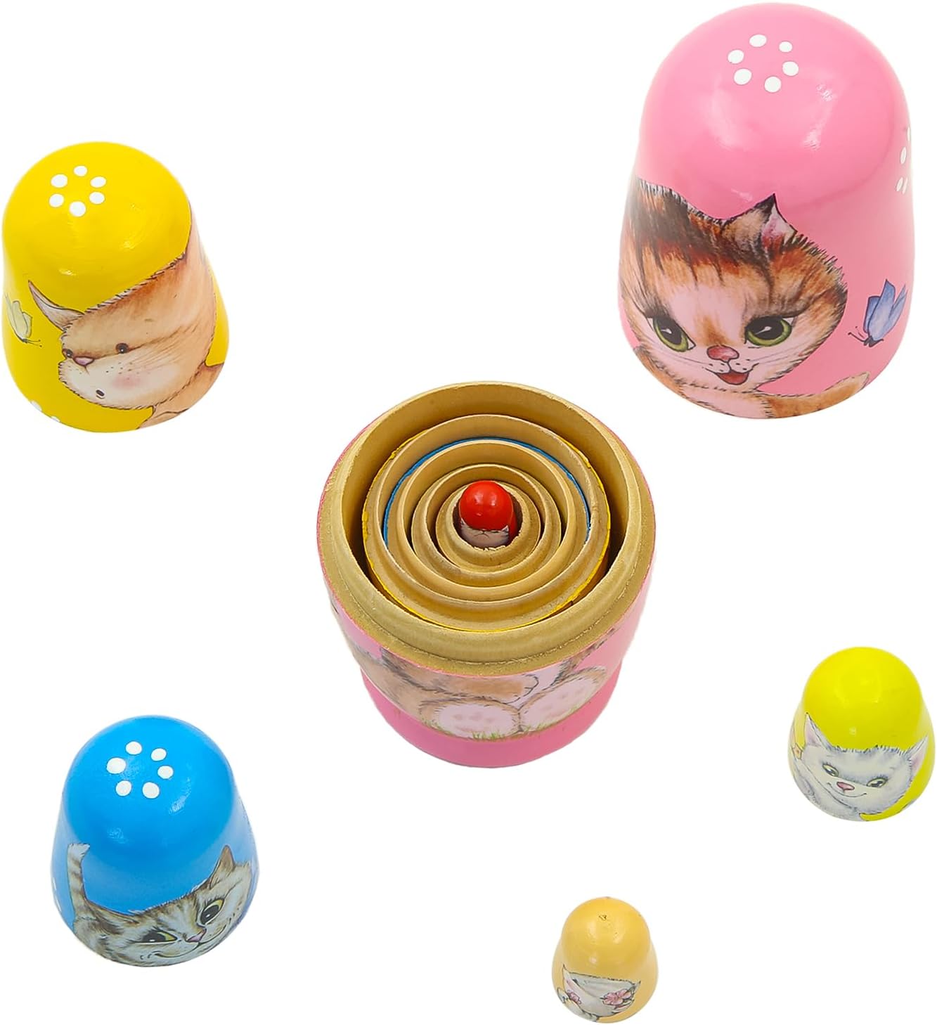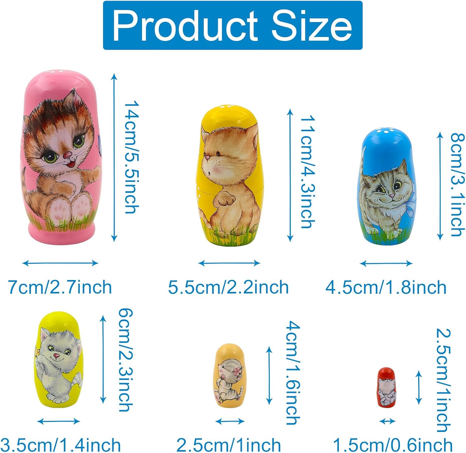 Ogni strato della bambola ha diverse dimensioni e modelli. Questa interessante bambola estraibile in legno ha 6 diversi motivi di gatti carini, come gatti che cacciano farfalle sull'erba, godendo dei fiori, ecc. La bella bambola russa a forma di animale e i suoi colori vivaci sono molto popolari tra i bambini. È disponibile in 6 bambole estraibili colorate, la dimensione è decrescente. Il più piccolo è posto all'interno del più grande. Può stare in piedi grazie al fondo piatto. Realizzato in legno di alta qualità e durevole, fatto a mano, squisito, inodore pungente e non facilmente deformabile. Le bambole in legno a tema gatto hanno bei motivi e possono anche migliorare la comprensione dei colori e degli animali da parte dei bambini. I bambini apprezzeranno il piacere di smontarli e rimontarli. Ideale per la casa, l'ufficio, la decorazione delle feste. Può essere utilizzato per conservare piccoli snack, oggetti vari, gioielli, ecc. Un bel regalo per la famiglia, gli amici e i bambini. Regalo speciale per Pasqua, Natale, Halloween, festa dei bambini, compleanno, festa del papà, festa della mamma, Capodanno, laurea, ecc.