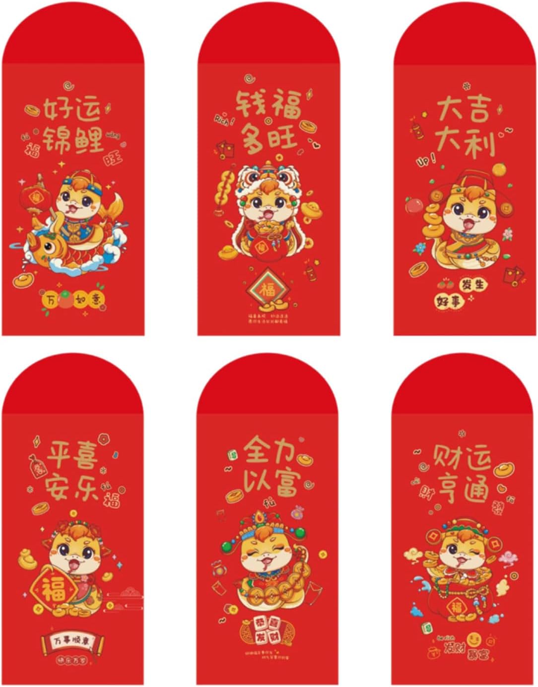 Set di 6 delicate buste per denaro a tema serpente, realizzate per feste e celebrazioni culturali