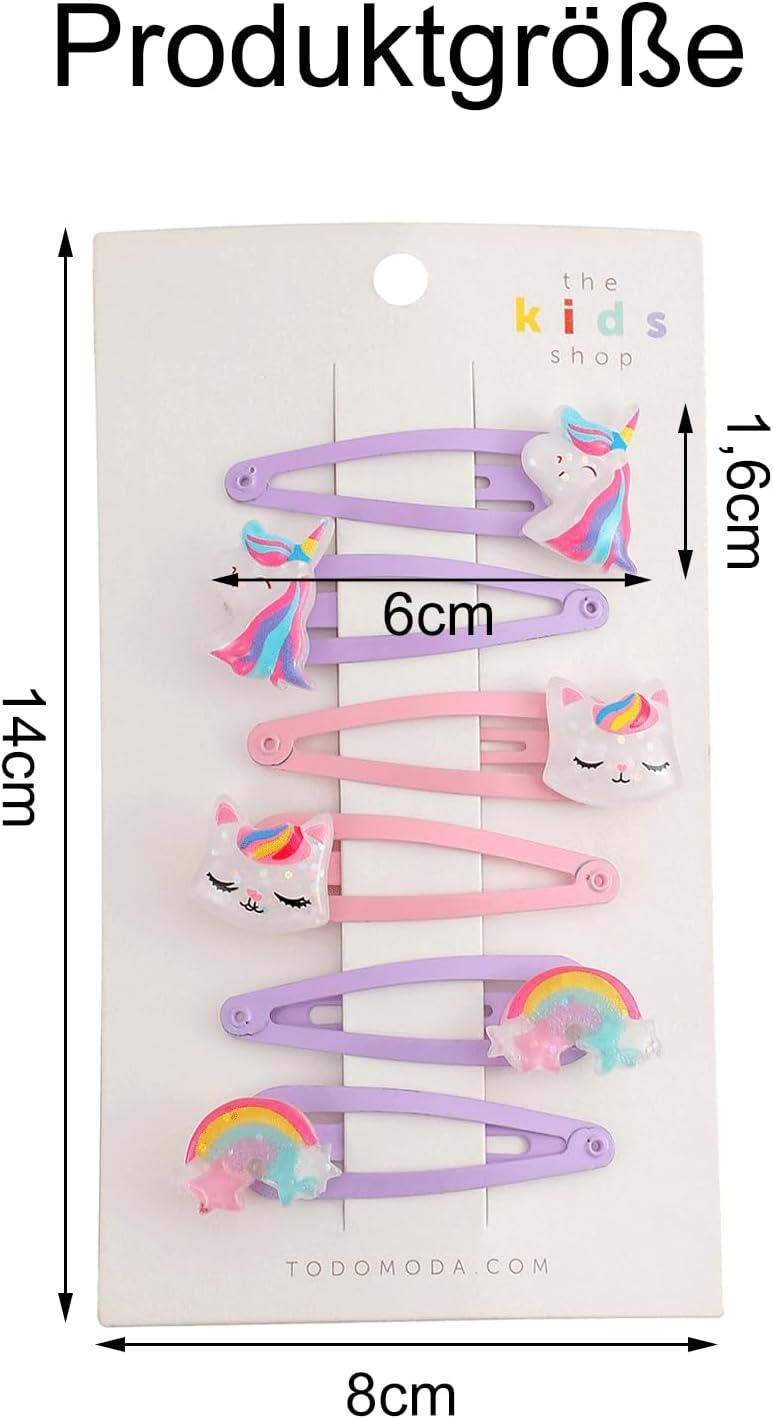 Contenuto della confezione: il nostro set di fermagli per capelli per bambine contiene 6 pezzi in 3 stili diversi. Il motivo con unicorno e arcobaleno è vivido e carino e i colori sono luminosi e affascinanti, il che è molto adatto come decorazione per acconciatura per ragazze con elementi di moda. Qualità affidabile: questi fermagli per capelli sono realizzati a mano in resina e metallo di alta qualità, molto resistenti e durevoli. Resiste alle cadute. Può tenere saldamente i capelli senza ferirli, comodi da indossare e leggeri. Facile da usare: questi fermagli per capelli colorati sono facili da indossare e non danneggiano i capelli e non si aggrovigliano né scivolano. Adatto per la maggior parte dei capelli, come capelli lunghi, corti, lisci o ricci. Ampie applicazioni: i nostri fermagli per capelli carini e delicati sono molto adatti per la regolazione quotidiana dell'acconciatura, i viaggi o le feste. Sia nella vita scolastica di tutti i giorni, in viaggio o alle feste di compleanno, con questo fermaglio per capelli per ragazze il vostro bambino farà sempre una bella figura. Idea regalo perfetta: questi graziosi fermagli per capelli sono ottimi regali per ragazze, bambini, neonati, regali per neonati o bambini, regali di compleanno, regali di Natale, regali di San Valentino o regali di festa. Perfetto per compleanni, feste, vacanze, servizi fotografici o da indossare tutti i giorni