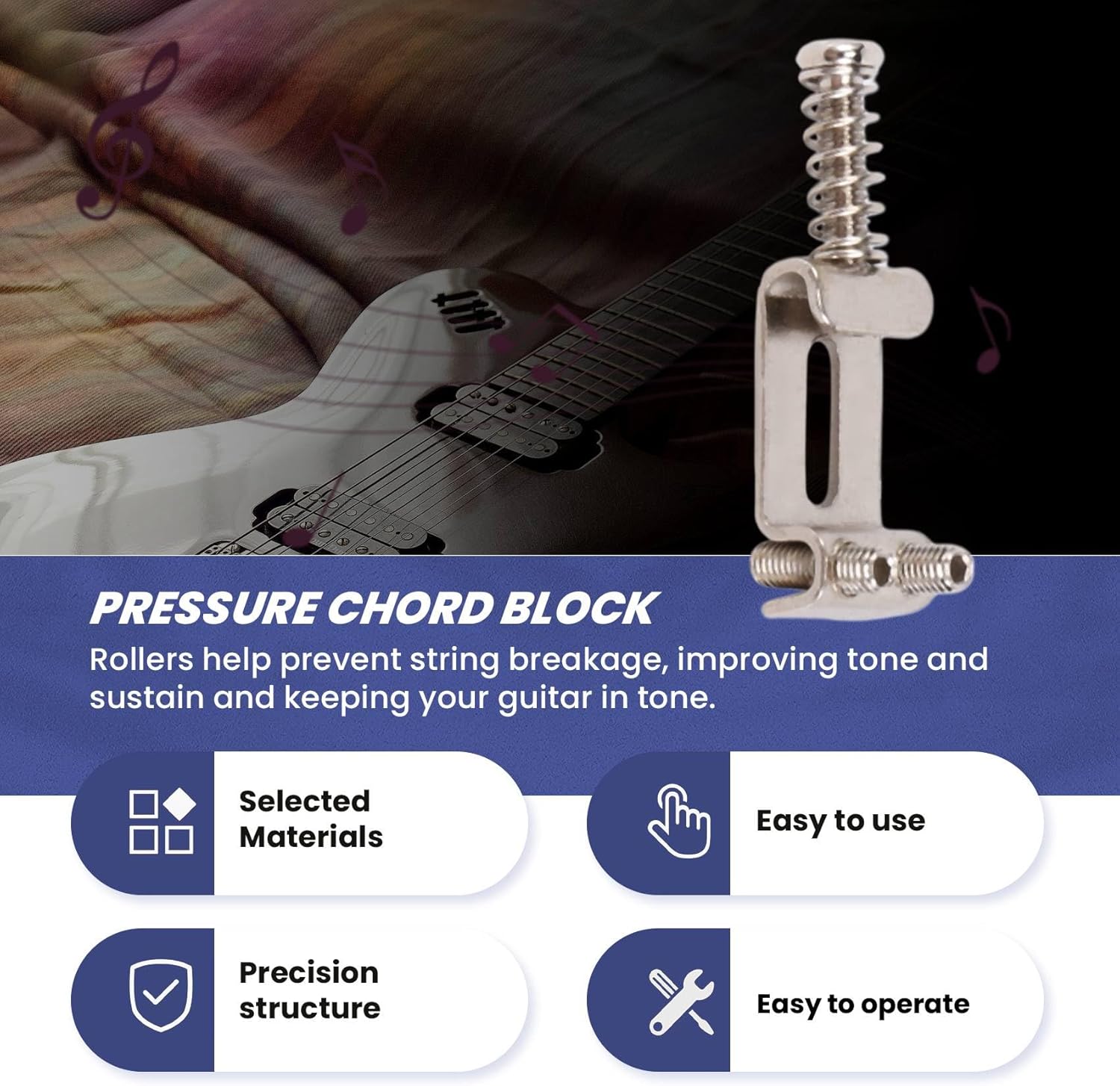 Set da per ponte di ricambio per chitarra elettrica. per le corde in sintonia. con una finitura ed estremamente resistente. I rulli aiutano a prevenire la rottura delle corde, migliorano il tono e il sustain e mantengono il tono della chitarra.