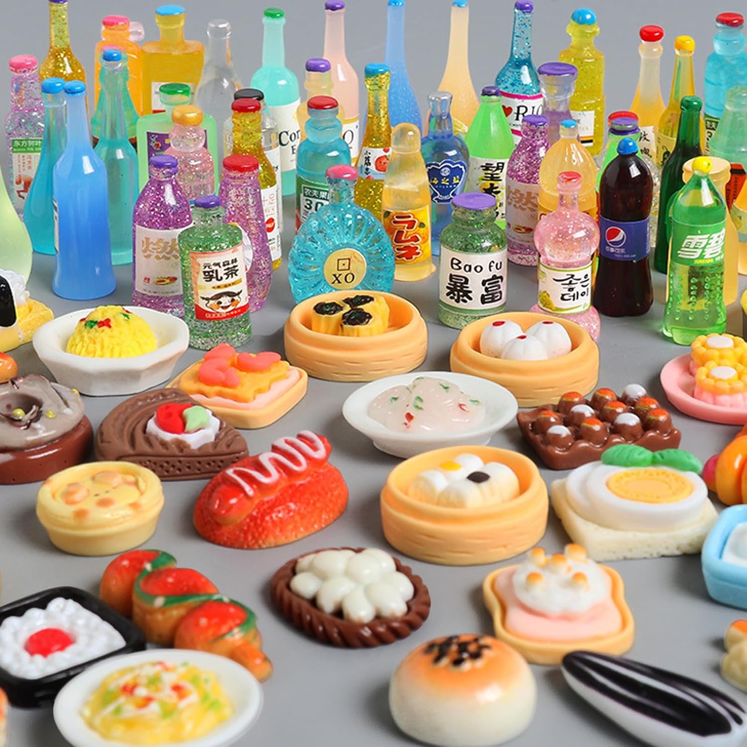 【Super Valore】Questo Set Di Drogheria Per Alimenti Finti Include 60 Pezzi Di Prodotti In Scatola Per Bambini E Ragazzi. Il Set Include Bevande, Succhi Di Frutta, Condimenti, Bottiglie D'Acqua, Salse, Yogurt, Gelati, Brodo, Barattoli E Scatole Di Snack E Altro Ancora. 【Materiale Sicuro】Le Parti Piccole Non Sono Adatte Ai Bambini Di Età Inferiore Ai Tre Anni. Il Set Di Alimenti è Realizzato Con Materiali Di Alta Qualità, Sicuri, Inodori, Durevoli E Atossici. Ogni Accessorio Per La Casa Delle Bambole Ricrea Cibi E Bevande Reali Per Una Squisita Esperienza In Miniatura. 【Uso Previsto】Questi Simpatici Giocattoli Per Alimenti Possono Essere Applicati Non Solo Come Bella Decorazione, Adatti Per Realizzare Forcine Per Capelli, Cucito, Scrapbooking, Ma Anche Come Accessori Per Telefoni Cellulari, Cornici, Scatole Di Cancelleria O Qualsiasi Progetto Fai Da Te, Come Si Può Immaginare. 【Accessori Miniature】Colori Vivaci E Texture Chiara Danno A Qualsiasi Mini Cibo E Bevanda Un Aspetto Realistico, Mentre La Dimensione Mini Lo Rende Più Bello E Attraente. 【Ampiamente Usato】Ideali Per Mini Paesaggi, Finestre, Casa Delle Bambole, E Sono Anche Complementi Ideali Per Soggiorno, Caffè, Decorazioni Per La Casa O Oggetti Di Scena Per La Fotografia Di Action Figure. Gli Accessori Per La Casa Delle Bambole Sono Ideali Per Progetti 3d E Giochi Di Piccoli Mondi, Perfetti Come Un Buon Regalo Per Bambini, Amanti, Amici E Familiari.