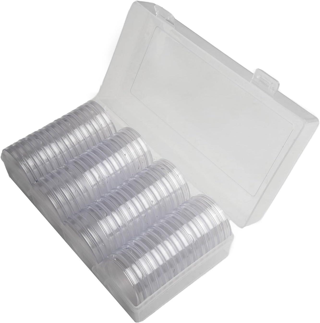 Materiale plastico ispessito: le nostre capsule sono realizzate in plastica ispessita, fornendo eccellenti proprietà di resistenza alla polvere e all'ossidazione. Adatto per monete di diametro: questi supporti sono progettati per contenere monete con un diametro non superiore a 41 mm, il che li rende perfetti per monete e argento. Design altamente trasparente e aderente: le capsule sono altamente trasparenti e si adattano saldamente, protezione sicura per collezioni preziose. 60 capsule con scatola organizer: questo set include 60 capsule insieme a una comoda scatola organizer. È una scelta per cerimonie, affari, mostre o come Natale per collezionisti.