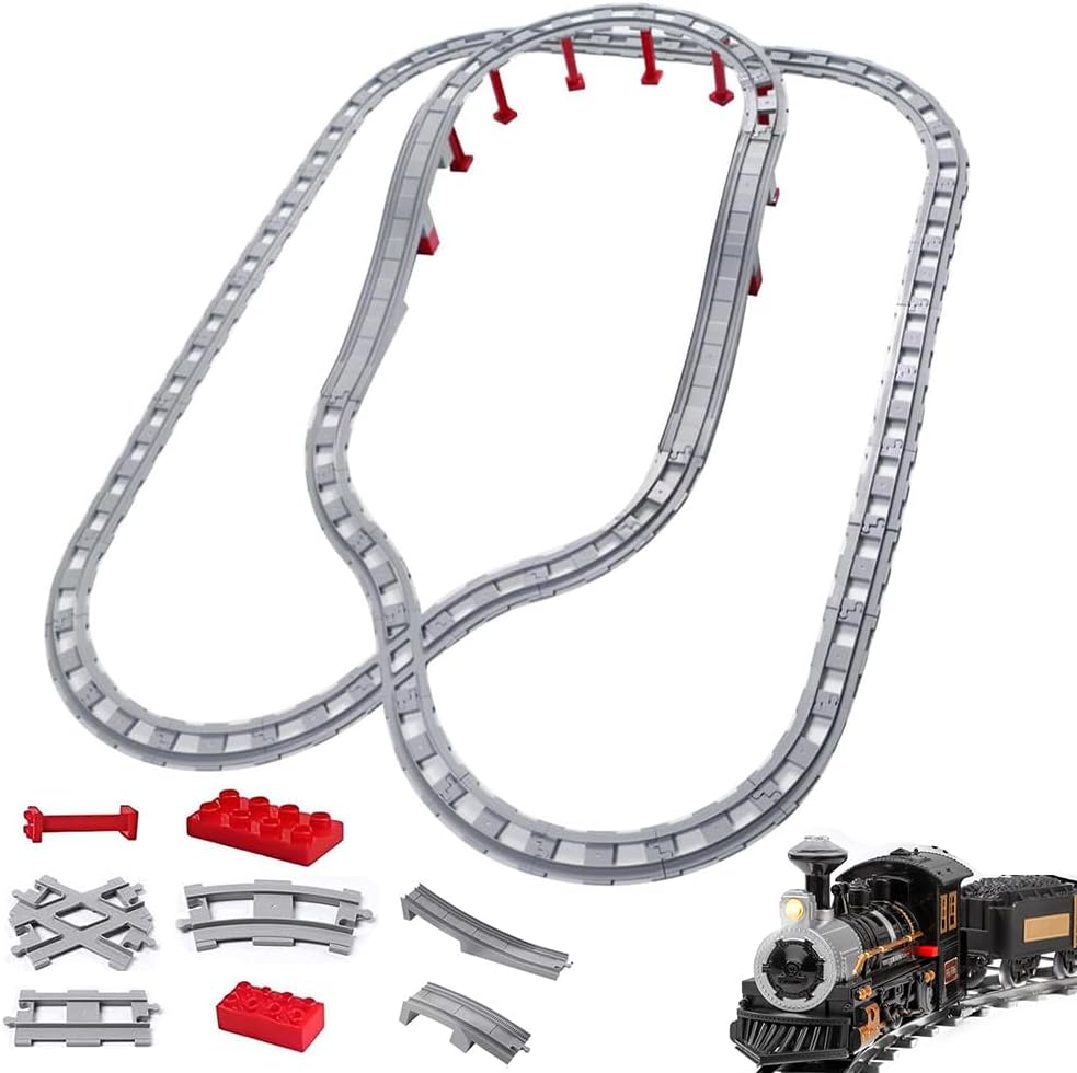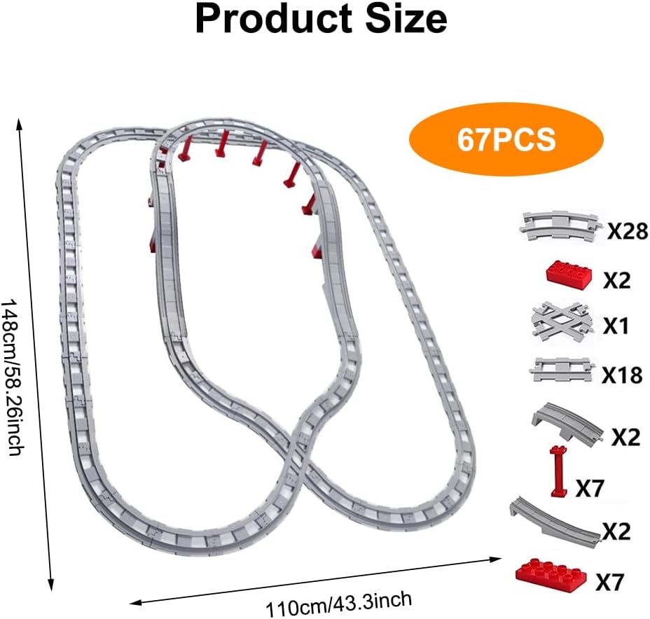 Set di binari da costruzione, 67 pezzi – FARYODI include 18 binari dritti, 28 binari curvi, 1 cross track, 4 binari obliqui, per costruire il ponte ferroviario e 16 accessori per binari. Elevata compatibilità: i nostri binari sono compatibili con le principali marche sul mercato, ideali per ampliare la vostra collezione di binari per treni cittadini. Con l'aiuto dei loro genitori, ragazzi e ragazze possono costruire scene ferroviarie più velocemente dai 2 anni. Trascorri del tempo prezioso con i tuoi bambini: i nostri binari per treni offrono la possibilità di espandere i set esistenti e creare percorsi e scene più grandi e complesse, costruire binari insieme ai tuoi bambini e goderti il tempo prezioso con la famiglia, promuovendo allo stesso tempo la capacità di concentrazione e la destrezza manuale dei tuoi bambini. Alta qualità e sicuro: i set di binari FARYODI sono realizzati in materiale ABS atossico di alta qualità, durevole e sicuro, puoi essere certo che i tuoi bambini avranno un momento meraviglioso per giocare e divertirsi. Regalo per bambini a partire dai 2 anni – Il nostro set di treni ferroviario è facile da montare ed è adatto per ragazzi e ragazze a partire dai 2 anni. Promuove la pazienza, la concentrazione e le capacità di risoluzione dei problemi nei bambini e lascia che il tuo bambino impari a giocare.