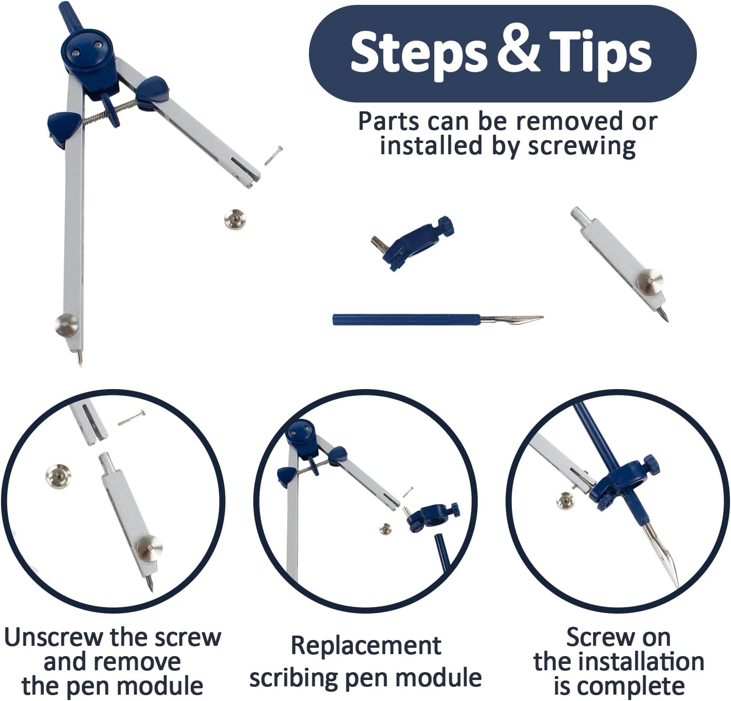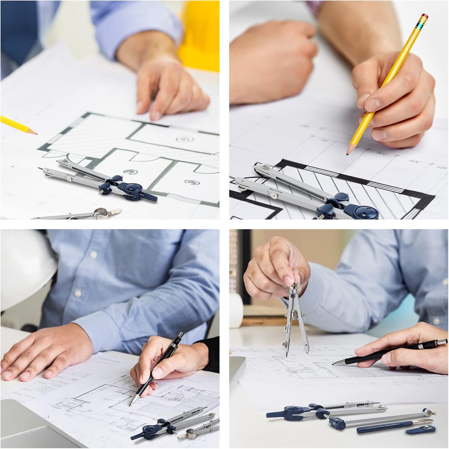 Confezione conveniente: 2 bussole professionali, 1 barra di estensione, 1 adattatore universale multifunzione, 1 penna a righello, 1 temperamatite, 1 ricarica per matita. Set di 7 bussole geometriche confezionato in una scatola infrangibile per un facile trasporto e conservazione. Bussola di alta qualità: la nostra bussola professionale utilizza la lega di zinco come materiale principale, che è più leggera e resistente. La bussola in metallo con ruota folle può effettuare una regolazione precisa per assicurare alta precisione e prevenire movimenti involontari delle gambe. Design a sorpresa: il nostro set di bussole utilizza un'asta di trazione flessibile che sostituisce l'asta tradizionale per mantenere la stessa pressione e più conveniente. I piedini a bussola possono essere ruotati e piegati secondo le esigenze, che lavorando con barra di estensione e adattatore universale, possono soddisfare varie esigenze di disegno. Dimensioni applicabili: le bussole più grandi possono disegnare cerchi con la maggior parte del raggio di 143 mm e con la barra di estensione questa figura può raggiungere i 265 mm. Le bussole più piccole possono disegnare cerchi con la maggior parte del raggio di 57 mm per soddisfare le tue esigenze di disegno precise. Multiuso: il nostro set di bussole soddisfa esigenze di misurazione professionale, adatto per progettisti meccanici come ingegneri, architetti, ecc., adatto anche per insegnanti e studenti, il nostro set di bussole può disegnare qualsiasi forma geometrica.