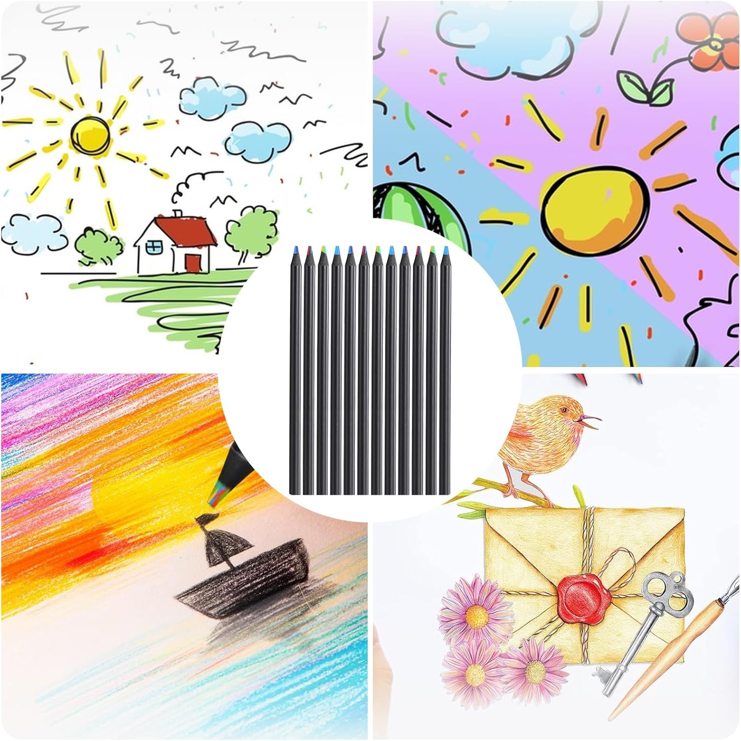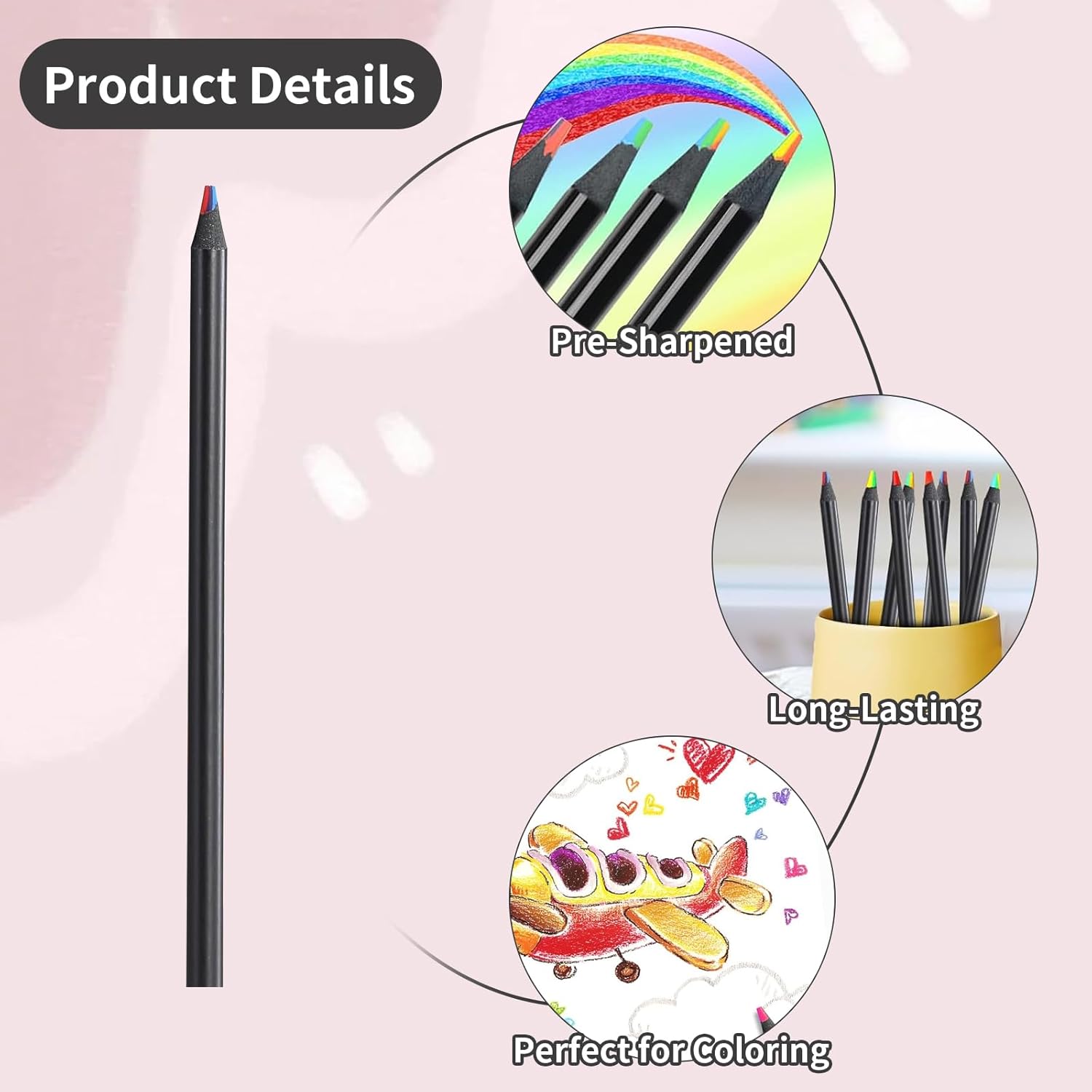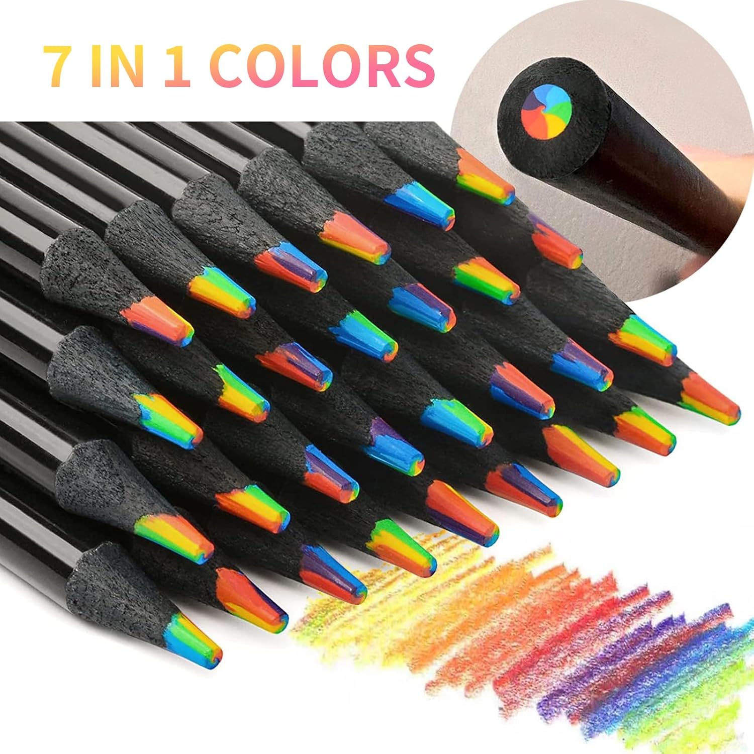 【LINEE COLORATE】: queste penne arcobaleno creano automaticamente linee colorate durante il disegno. Le matite colorate combinano più colori in una mina e offrono così un effetto cromatico unico che dà vita ad ogni opera d'arte. 【DIVERTIMENTO DI DISEGNO CREATIVO】: le matite colorate dei nostri bambini sono ideali per le mani creative dei bambini. Rendono la pittura una vera avventura facendo sembrare ogni linea diversa - perfetta per la scuola, i compleanni o semplicemente per divertimento 【ADATTO A TUTTE LE ETÀ】: Che si tratti di piccoli artisti o adulti con la passione per il disegno, queste matite colorate per adulti e bambini offrono colori ricchi e transizioni morbide che possono essere applicate senza sforzo sulla carta 【EFFETTI VERSATILI】: Le mine arcobaleno delle matite arcobaleno per bambini creano affascinanti sfumature di colore e forniscono ricchi strati per disegni complessi - ideali per progetti creativi a casa o a lezione d'arte 【VARI COMBINAZIONI DI COLORI】: Le matite colorate spesse contengono diverse combinazioni di colori in ciascuna mina. In questo modo si crea un nuovo effetto ad ogni tratto, perfetto per i disegni dei bambini e i disegni colorati