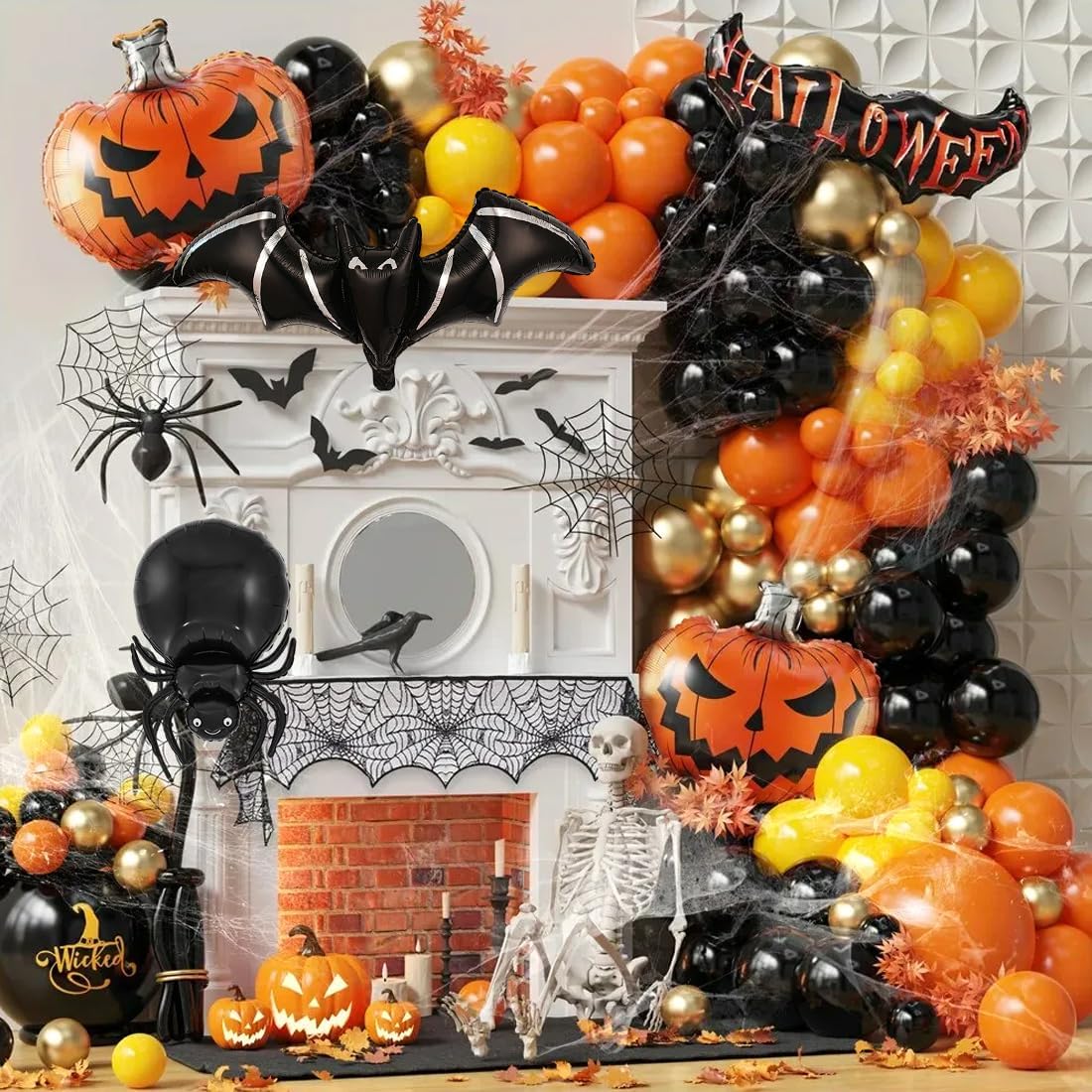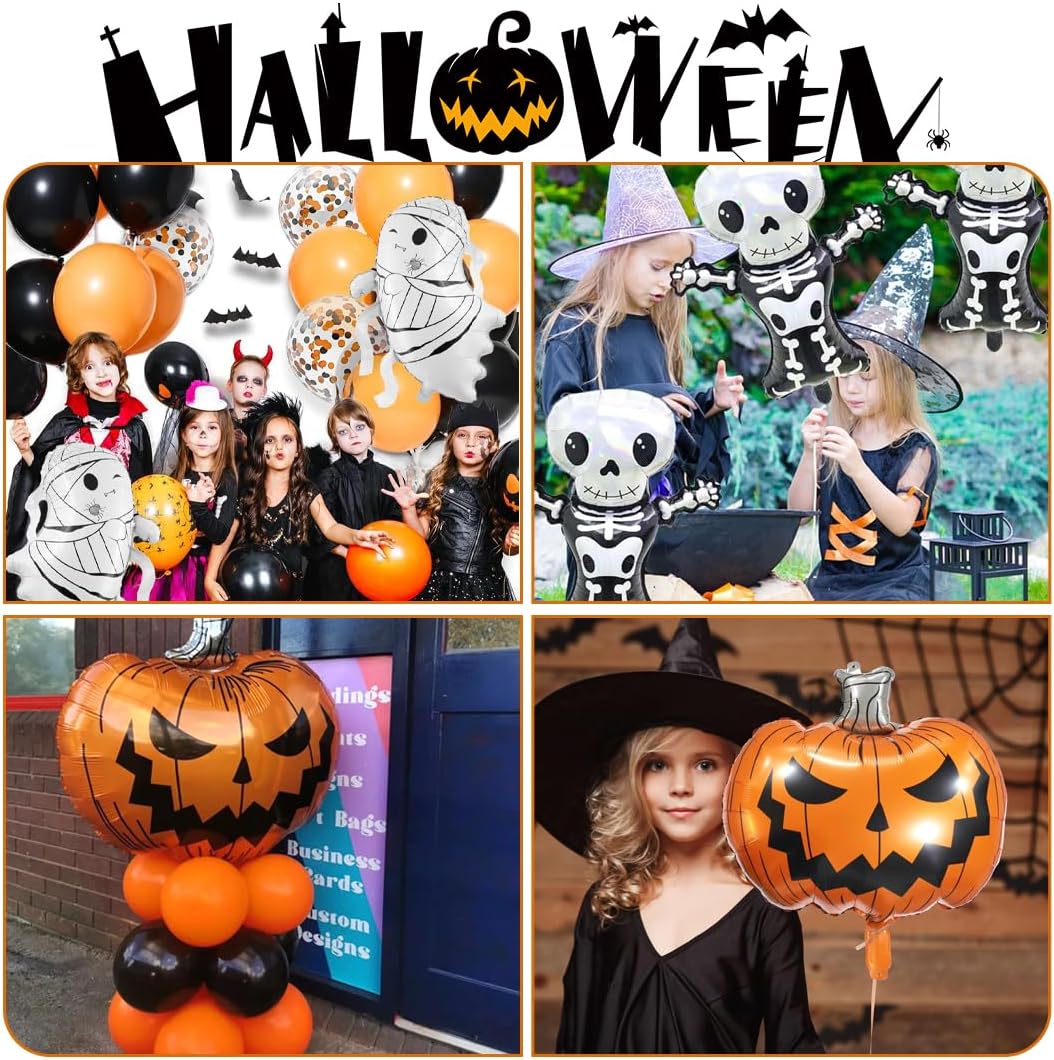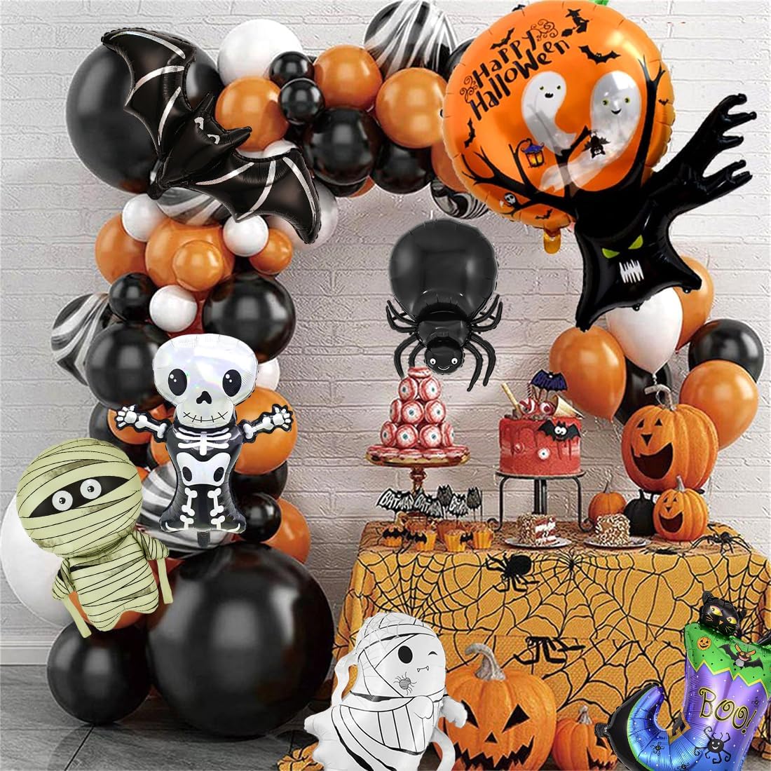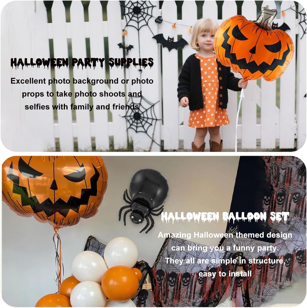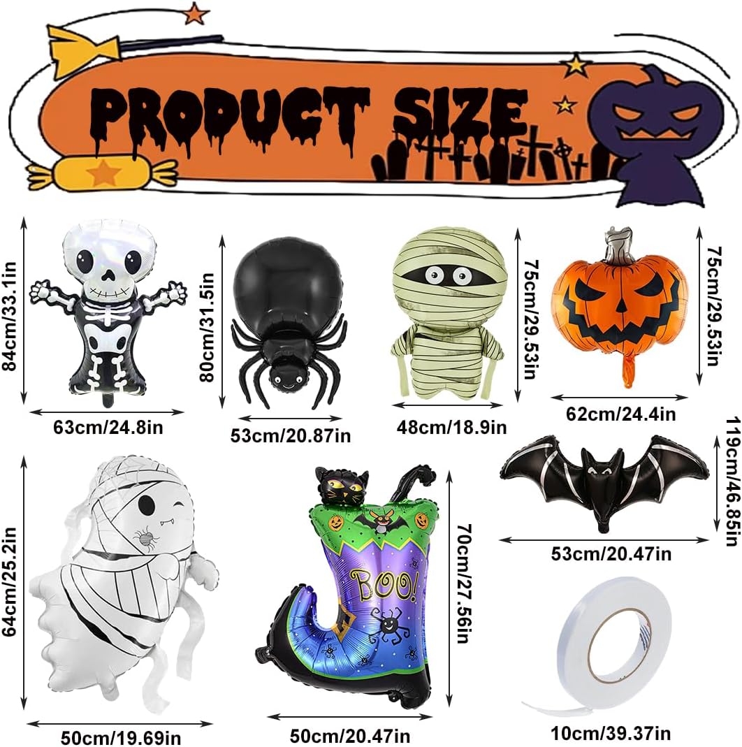GXGM Set di decorazioni di Halloween con 7 palloncini giganti XXL: 1 ragno, 1 pipistrello, 1 scheletro, 1 stivale, 1 zucca, 1 uomo scheletro, 1 fantasma. Inclusa 1 confezione gratuita di nastro bianco per palloncini da 10 m. Materiali di alta qualità: realizzati con palloncini e palloncini in foglio di alluminio di alta qualità, resistenti e riutilizzabili. Facile da usare: Supporta il riempimento di palloncini con aria o elio ed è molto facile da gonfiare. Design unico: il design unico dei nuovi palloncini di Halloween renderà la tua festa di Halloween ancora più emozionante. Decorazioni di Halloween: ideali come palloncini per feste per bambini, decorazioni per feste di Halloween, decorazioni festive, decorazioni murali per uso interno ed esterno.