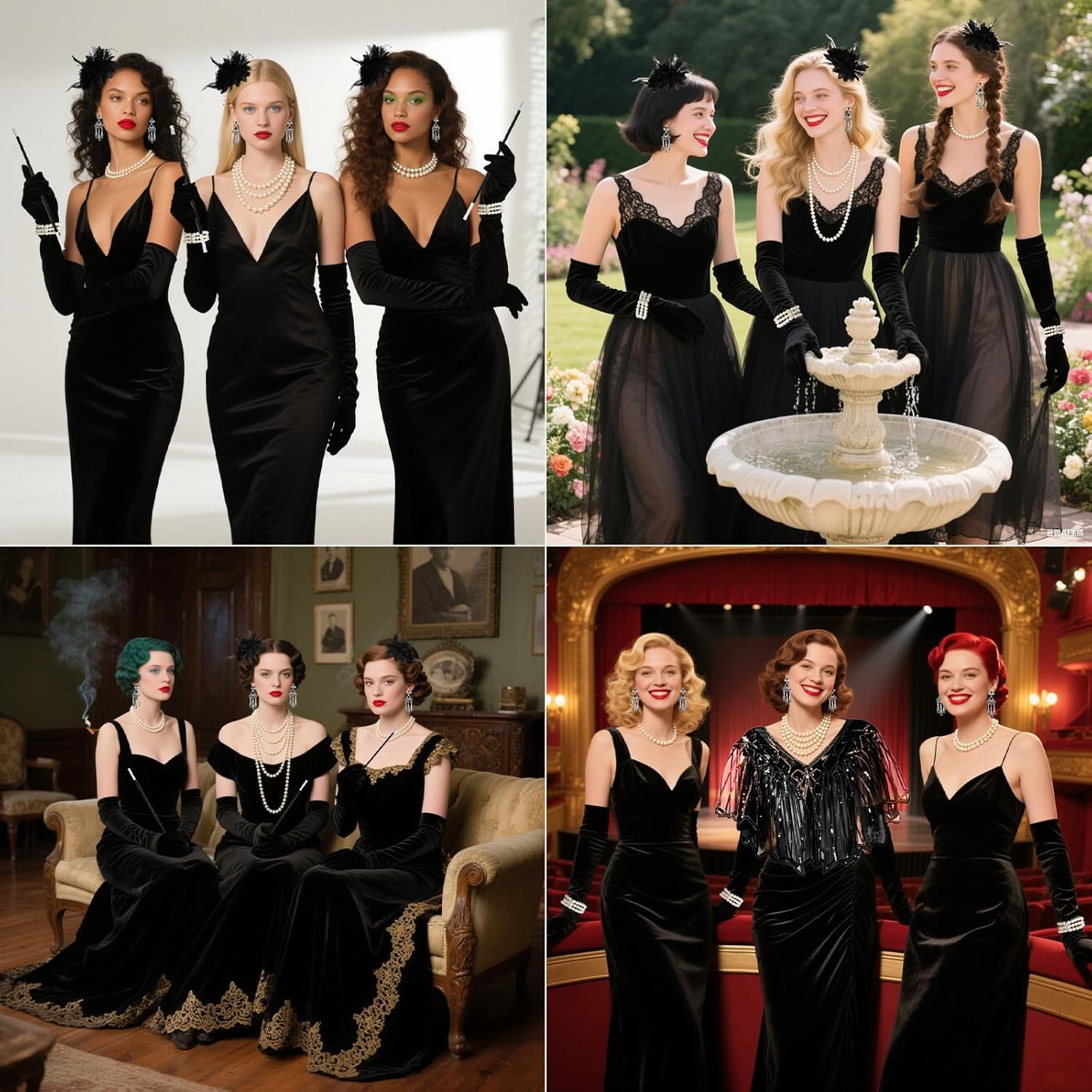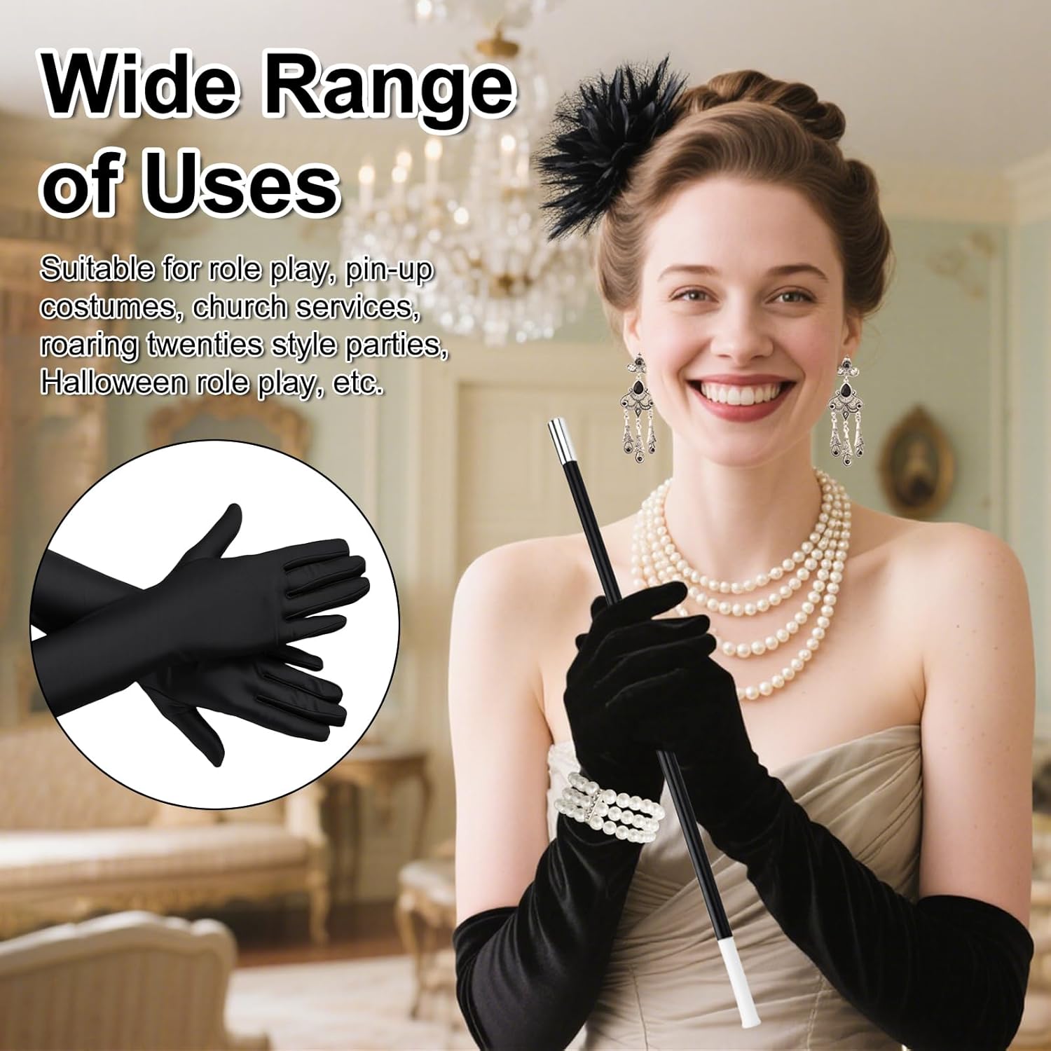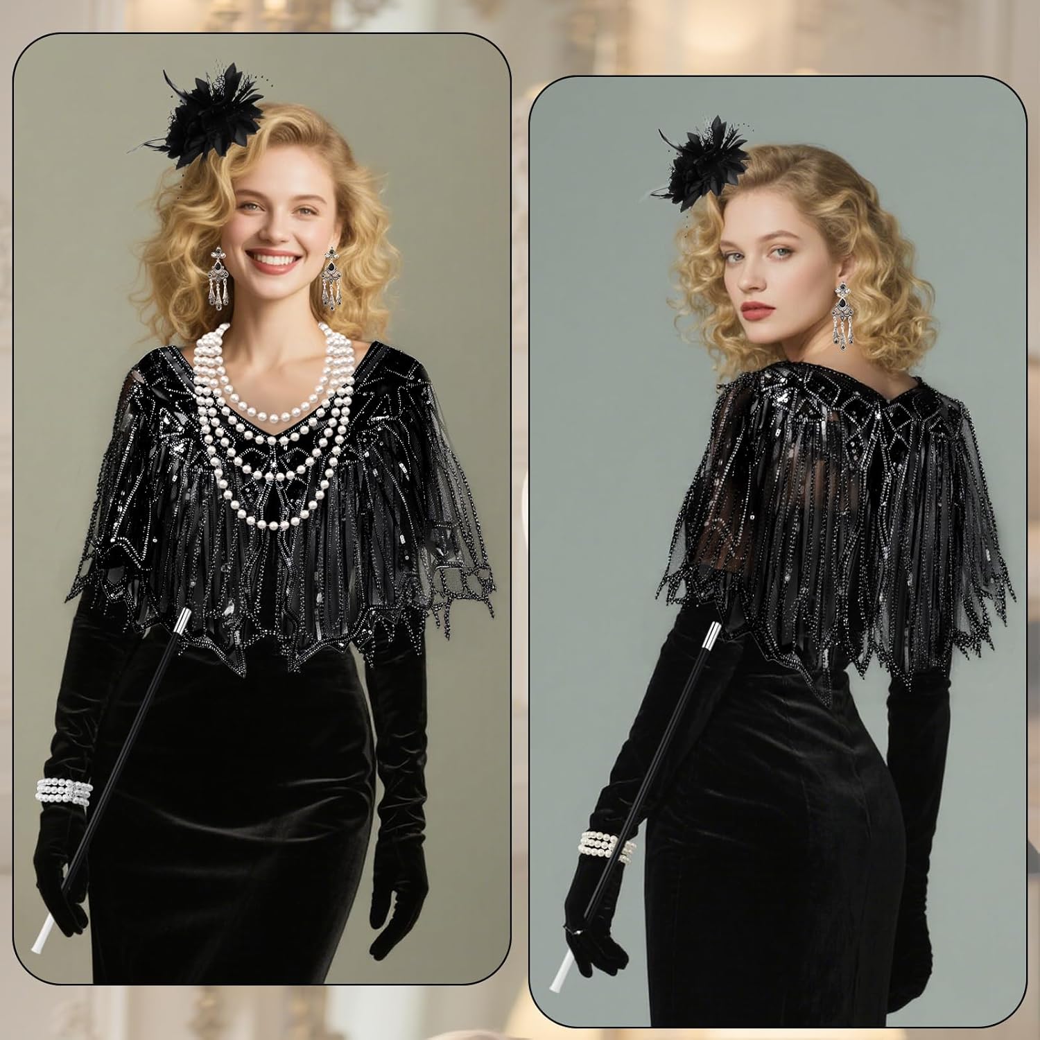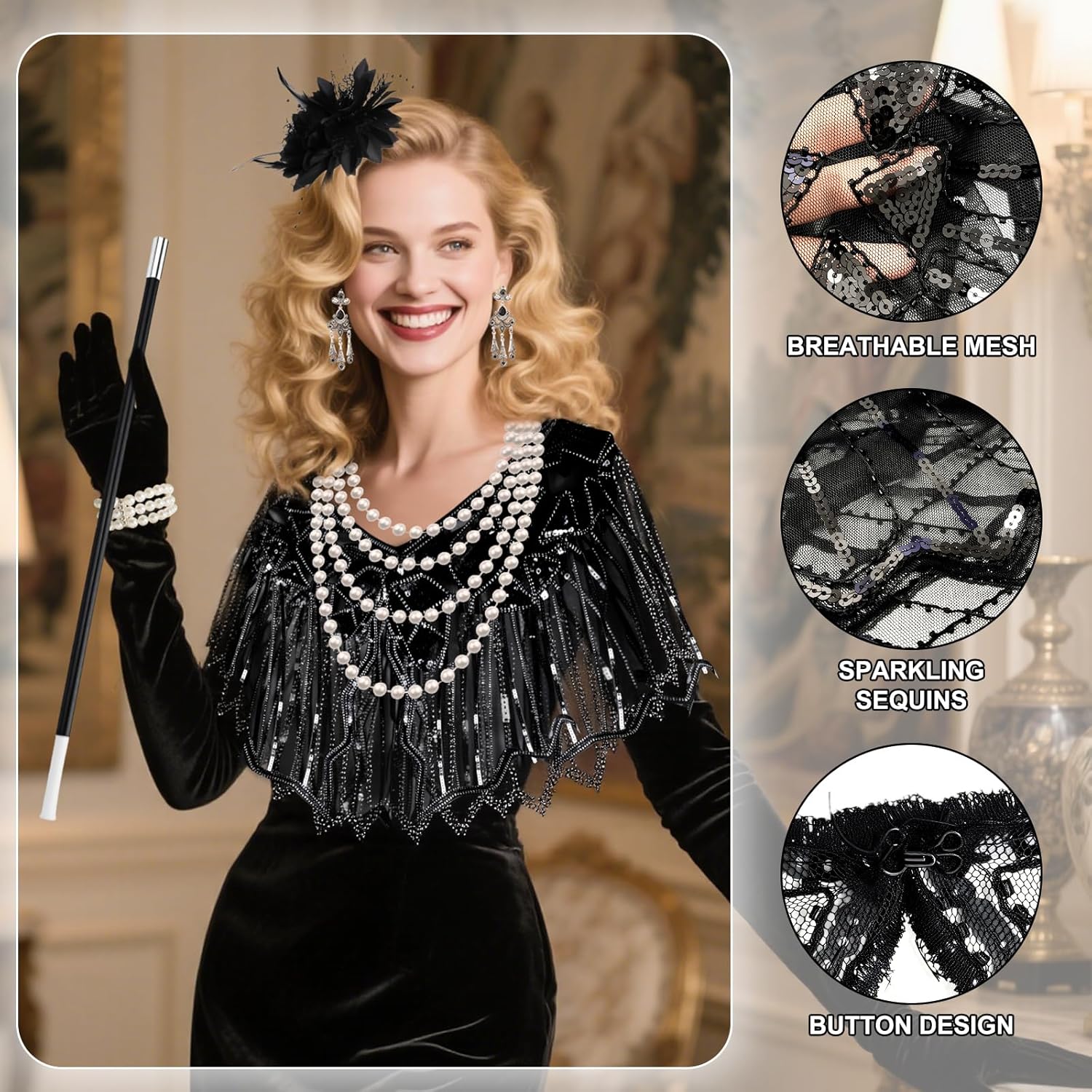 Descrizione - Questi accessori da donna in stile anni '20 sono perfetti per feste retrò, feste a tema anni '20, feste a tema anni '20, feste in maschera di Halloween, balli di fine anno e molto altro. Questo è un set completo di accessori per foto. - La fascia floreale vintage si adatta alla maggior parte delle adolescenti e degli adulti e completa perfettamente il tuo look da pin-up anni '20. Gli eleganti orecchini e la scintillante collana di perle ti regalano un look splendido e accattivante. Caratteristiche Marca: TOPBELIEF Materiale dei guanti: Spandex Materiale della fascia: Plastica e piume Materiale del mantello: Poliestere Colore: Multicolore La confezione include: 1 x Guanti 1 x Fascia 1 x Collana 1 x Orecchini 1 x Bracciale 1 x Manipolo 1 x Mantello