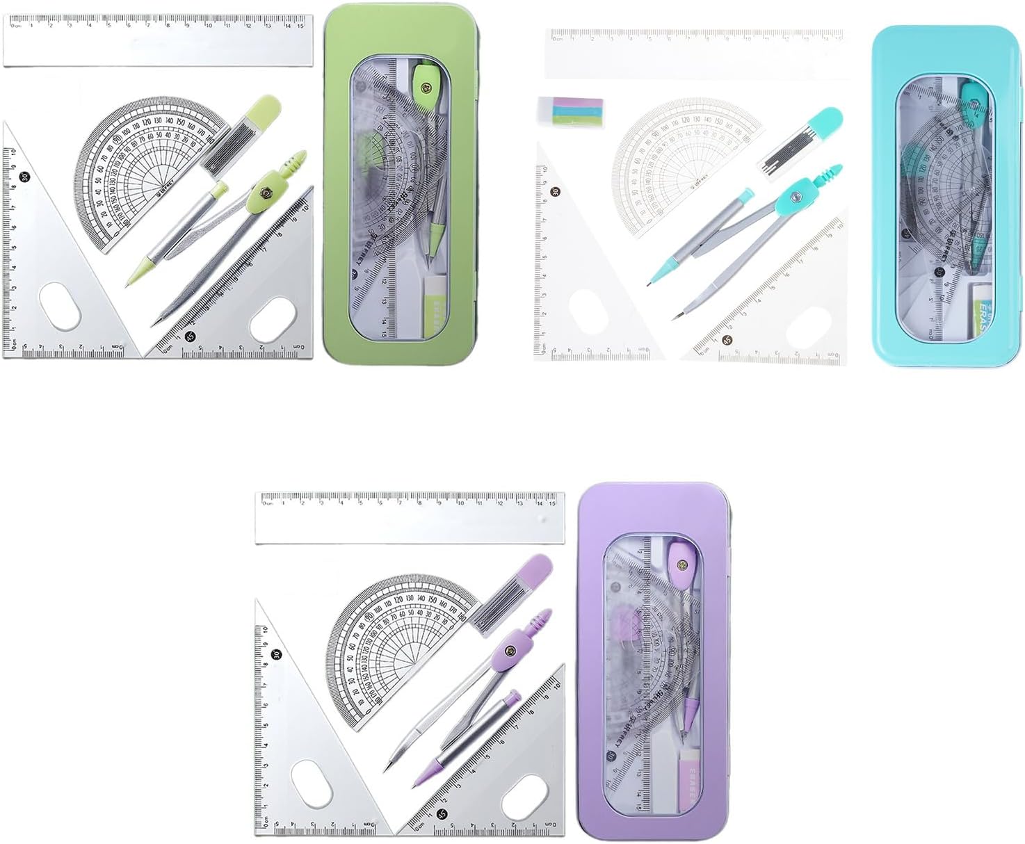 Ideale per matematica, geometria, arte, disegno, lavorazione del legno e disegno. Facile da portare a lezioni di matematica e conservare in classe Realizzato in polipropilene e metallo, facile misurazione. Ogni righello quadrato e goniometro matematico con scala chiara. La custodia per proteggere e riporre gli strumenti geometrici in zaini, borse per la scuola, borsa per libri La confezione contiene: 1 strumento per geometria in metallo, 1 quadrato da 30°/60°, 1 quadrato a 45°, 1 righello dritto, 1 goniometro matematico a 180 gradi, 1 scatola di ricariche per matite da 0,7 mm, 1 gomma da cancellare, 1 custodia Set di strumenti professionali per geometria matematica, adatto per architetti, ingegneri, artisti, designer, studenti, insegnanti Lo strumento di disegno geometrico in metallo può disegnare fino a 23 cm di diametro. Lo strumento di geometria con parte bruscamente deve essere usato con attenzione e posizionato lontano dal bambino