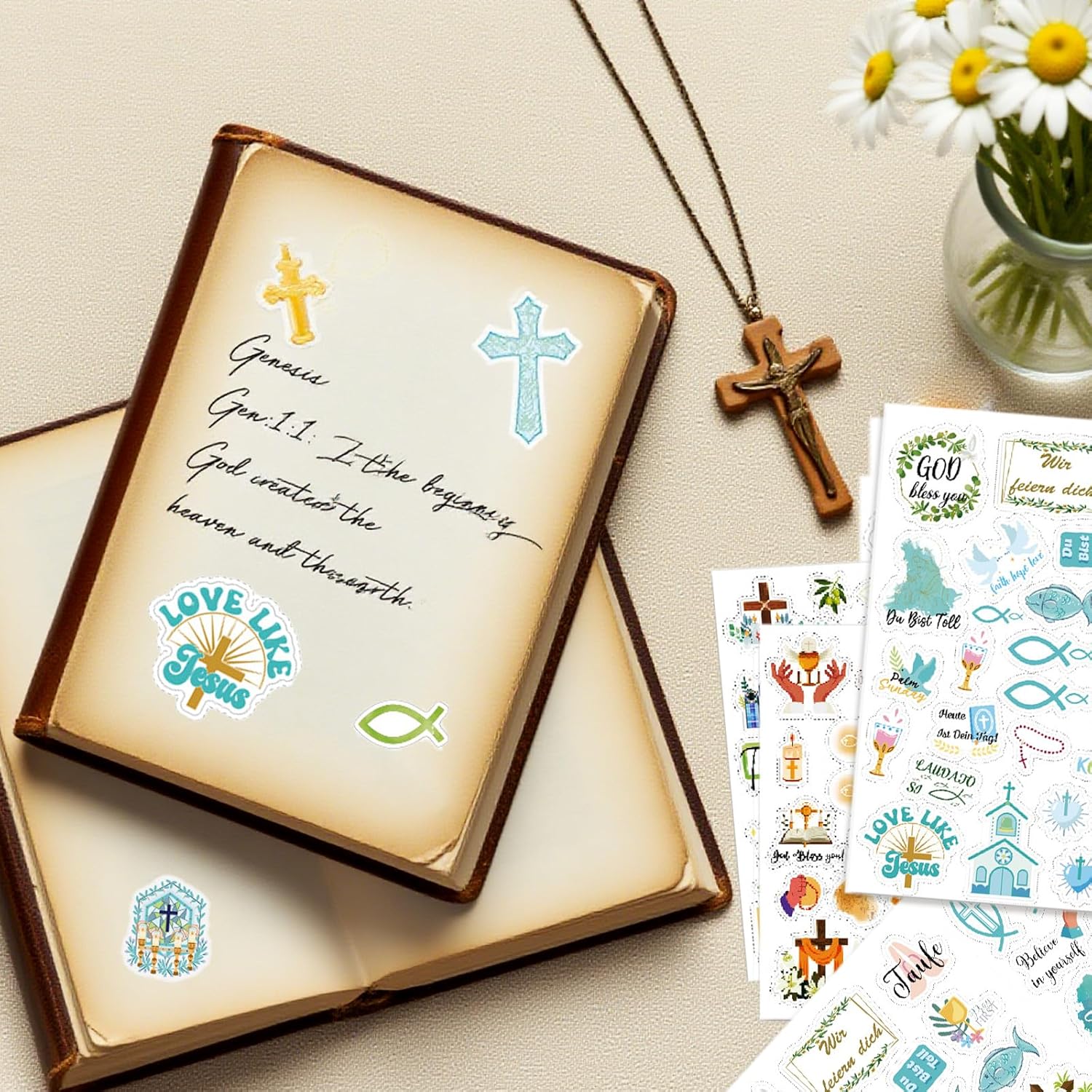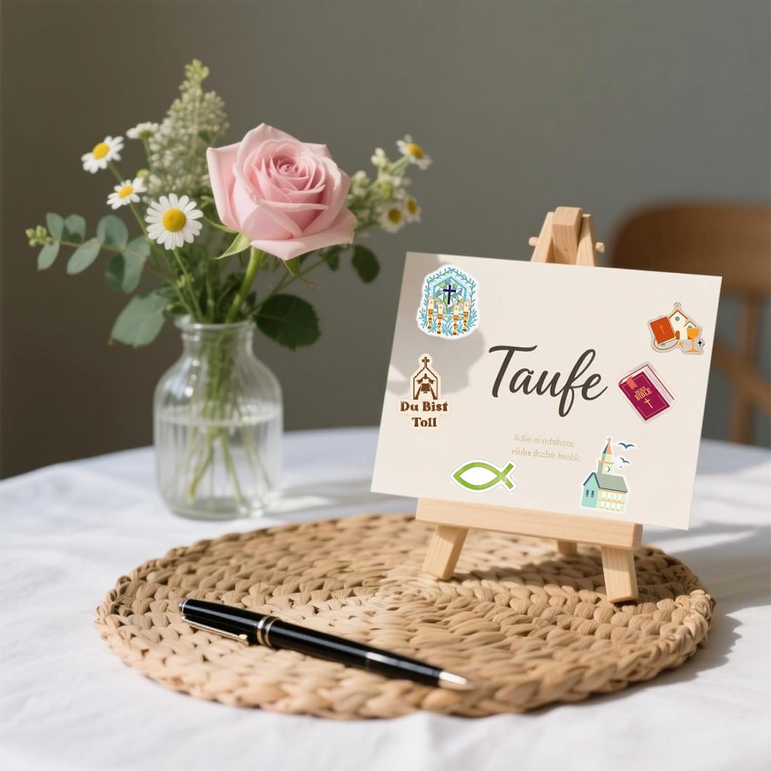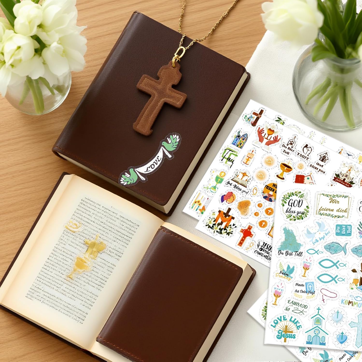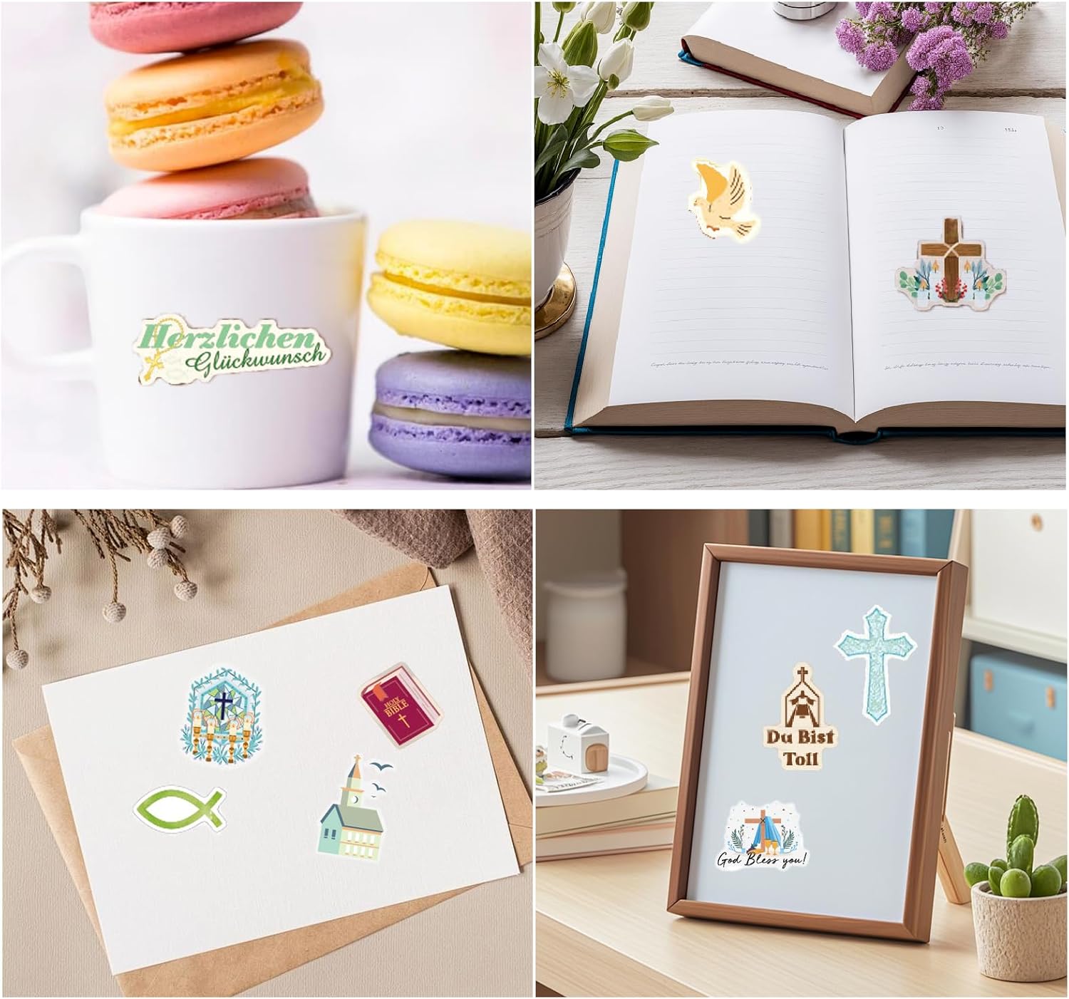 【Adesivi per libro degli ospiti per comunione, conferma del battesimo】 8 fogli di bellissimi adesivi tedeschi per album fai da te per la conferma del battesimo della comunione per ragazze, ragazzi e bambini, 227 adesivi diversi, adesivi per la comunione della conferma del battesimo con detti tedeschi e molti bellissimi elementi. 【Facile da realizzare】 Design originale, adesivi di alta qualità progettati con cura, la superficie è opaca e pulita, adesivi per album fotografici per battesimo, cresima, comunione che possono essere facilmente attaccati a libri degli ospiti, album di ritagli, angoli di foto, quaderni, cartoline. 【Design Comunione Cresima Battesimo】 Tre tipi di adesivi soddisfano le tue diverse esigenze. Puoi usarli per la decorazione artigianale del battesimo, cresima e comunione e per la decorazione dei biglietti di comunione per la cresima del battesimo. 【Regali artigianali per comunione e conferma del battesimo】 Set di adesivi per comunione e conferma del battesimo adatti ad accessori artigianali per scrapbooking / bullet journal, libro degli ospiti per conferma del battesimo e comunione, decorazione di album fotografici per ragazze, ragazzi e bambini DECORAZIONE PERFETTA PER LA COMUNIONE - Adesivi per comunione dal design amorevole per una decorazione festiva. Ideale per inviti, libri dei ricordi e decorazioni per la tavola della Prima Comunione.