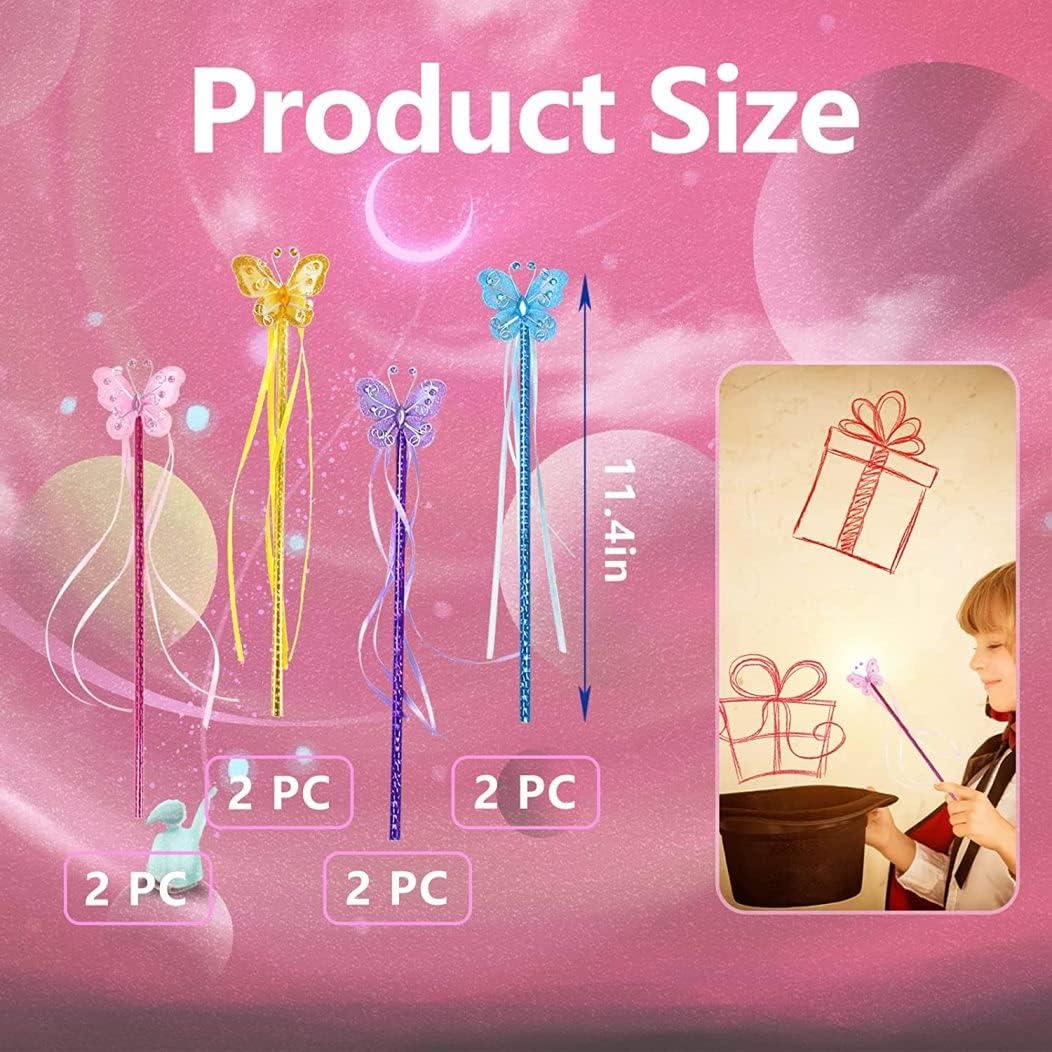 Ampie applicazioni: la bacchetta magica non è adatta solo per cosplay, accessori per costumi da fata, compleanni, baby shower, matrimoni, addio al nubilato e altro ancora..È perfetto anche per tutti i tipi di feste a tema per bambini, come feste per ragazze, tea party, feste a tema farfalle, feste magiche, feste di compleanno, feste in maschera, feste in costume di Halloween, ecc. Puoi usare le decorazioni a farfalla come oggetti di scena alla tua festa e anche come regali per le ragazze. Alta qualità: le fate sono progettate con paillettes, seta e nastri..Sono realizzati con buoni materiali, di buona qualità, possono essere utilizzati più e più volte, non deformano, non deformano facilmente e sono realizzati con materiali sani, quindi puoi usarli senza alcun disagio allergico. Design: le bacchette magiche sono caratterizzate da colori luminosi ed eleganti, ogni bacchetta magica ha una forma a farfalla e nappe, dettagli straordinari e colori scintillanti con aggiunta di glitter per un effetto abbagliante..Aggiungi un tocco fantastico alla tua festa e crea un ricordo accattivante e memorabile..Puoi vestire tua figlia come un'adorabile principessa La confezione include: Riceverai 8 pezzi di bacchetta magica da fata a farfalla, la lunghezza complessiva della bacchetta da principessa delle fate è di circa 11,8 pollici..Disponibile in blu, viola e oro, con 2 pezzi per ogni colore..La varietà di colori ti permetterà di abbinare lo stile che desideri. Seta