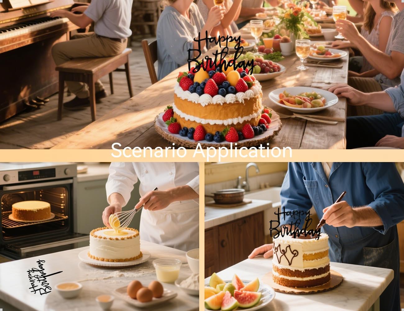 [Contenuto del set]: Questo set contiene 8 decorazioni per torta "Happy Birthday". Il classico design nero aggiunge eleganza e un tocco misterioso alla torta, rendendola adatta a feste di compleanno a tema diverso [Design unico]: Il cake decorare presenta una scritta "Happy Birthday" con effetto specchio, che conferisce alla tua torta di compleanno un effetto visivo splendido e unico, rendendola un vero colpo d'occhio [Proprietà del materiale]: Il cake decorare è realizzato in acrilico, liscio, resistente e facile da pulire. Può essere riutilizzato più volte, assicura una lunga e affidabile durata [Uso pratico]: la decorazione per compleanno ha un design semplice. Basta attaccarla alla torta e la decorazione è pronta. Non sono necessari strumenti o competenze aggiuntive, il che la rende adatta a persone diverse [Ampiamente usato]: le decorazioni per torte di buon compleanno sono adatte a compleanni, anniversari, baby shower, matrimoni, celebrazioni e altre occasioni e possono essere utilizzate per decorare torte, cupcake, gelati e dessert, ecc