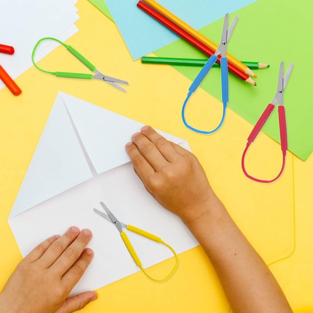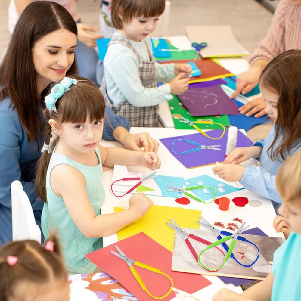 Value Pack: È possibile ottenere 4 pezzi di 5,5" e 4 pezzi di 8" forbici ad anello per bambini, che includono blu, rosso, giallo e verde. Forbici colorate per i bambini a scegliere. Design unico: Le forbici a ciclo sono progettate con forbici autoadattive auto-apribili, che è conveniente per il taglio, mentre la maniglia è in plastica, che è comoda da tenere, facile da schiacciare e può essere ripristinata alla sua posizione originale dopo la compressione. Ampio uso: Le nostre forbici ad anello possono essere utilizzate nelle scuole, negli uffici, nelle case e in altri luoghi e supportano anche le esigenze speciali. Adatto per adulti o bambini, due dimensioni diverse, più favorevole per voi a fare artigianato genitore-bambino con i vostri figli a casa, e trascorrere un tempo genitore-bambino felice con i vostri figli. Facile da riporre: Il design della maniglia dell'anello delle forbici rende facile per voi appenderli al gancio della parete dopo l'uso senza occupare spazio e rendendoli facili da raggiungere di nuovo. Consigli: Al fine di garantire la sicurezza dei bambini, abbiamo realizzato una testa rotonda sulle forbici, ma la lama in acciaio inossidabile può tagliare la carta con precisione, quindi si prega di usarlo sotto la supervisione di un adulto.