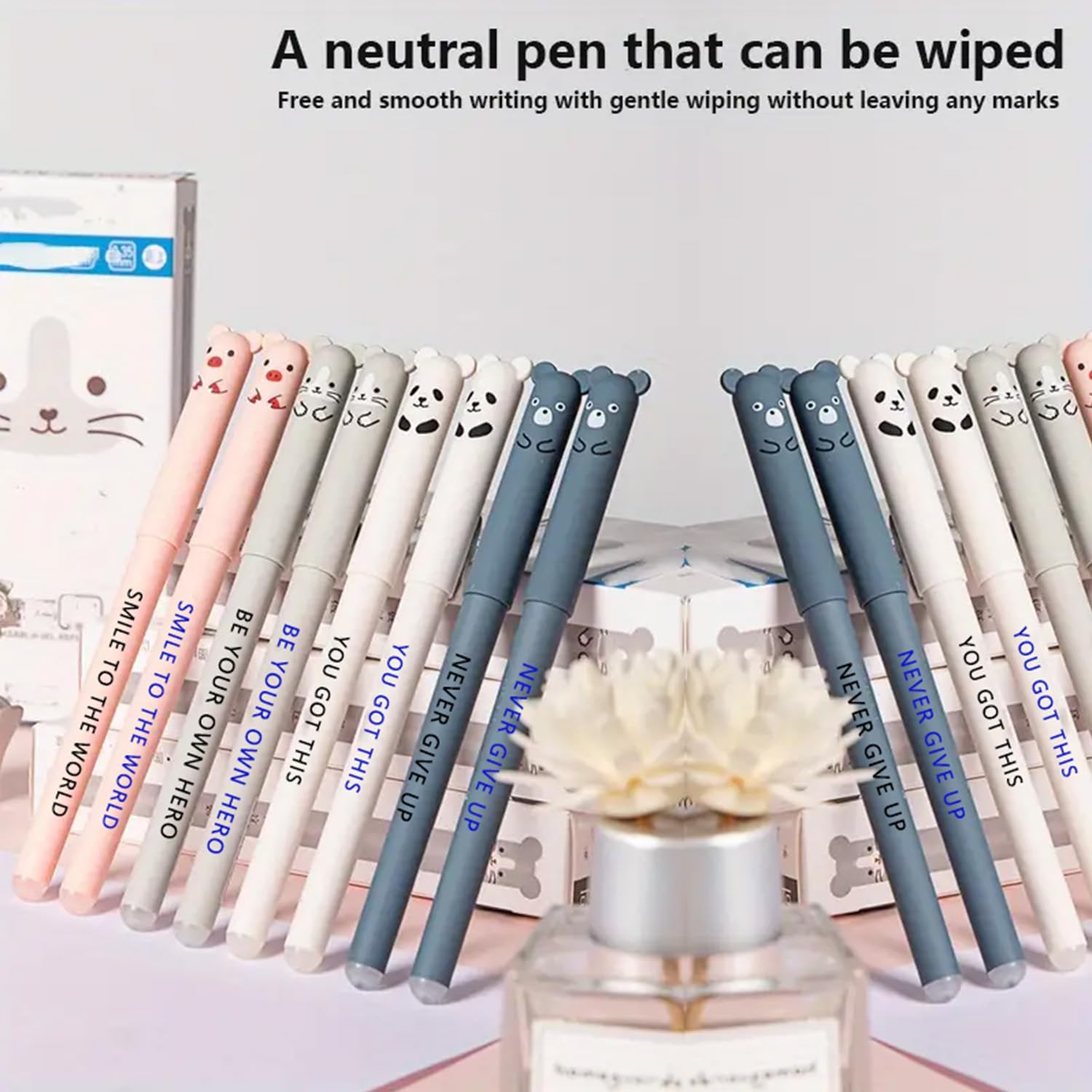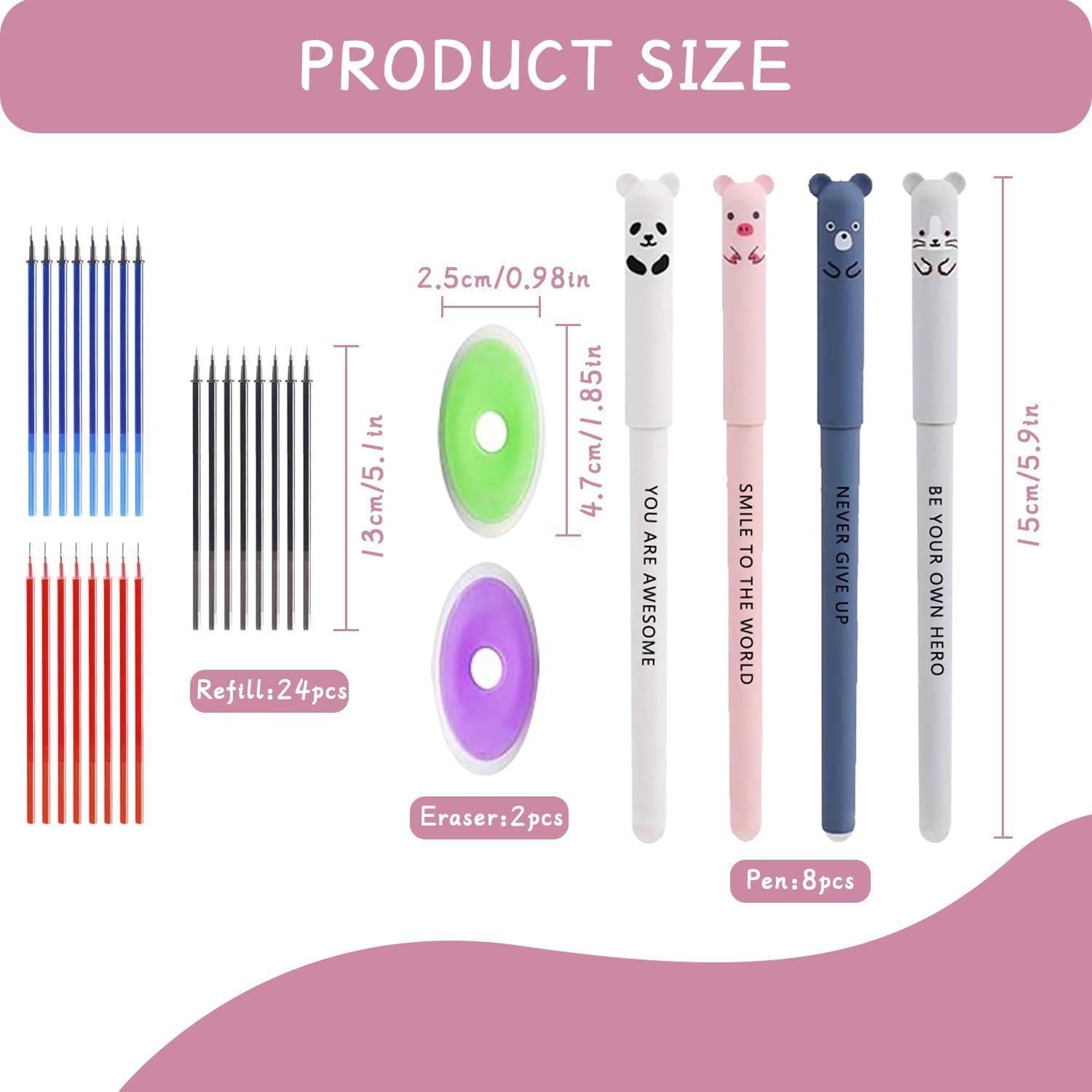 Set di cancelleria multifunzionale: questo set include 8 penne a sfera cancellabili a forma di animale a forma di animale, ognuna delle quali è dotata di una funzione cancellabile unica, rendendo la scrittura più flessibile e conveniente. Allo stesso tempo, il set include anche 24 ricariche per penne di ricambio per soddisfare le vostre esigenze di scrittura a lungo termine, nonché 2 pratiche gomme per correggere facilmente gli errori in qualsiasi momento. Opzioni di colore ricco: la penna neutra cancellabile nel set offre tre colori di base: nero, blu e rosso, per soddisfare le esigenze di scrittura di diverse occasioni e scopi. Che si tratti di appunti, compiti o disegni, tutti possono essere facilmente gestiti, rendendo la tua scrittura più colorata. Design animale del fumetto: ogni penna neutra adotta simpatiche forme di animali dei cartoni animati, che non solo hanno un aspetto squisito, ma stimolano anche l'interesse dei bambini per la scrittura. Sia per uso personale che come regalo, è una scelta eccellente per i bambini per imparare e crescere nella felicità. Materiali di alta qualità: questo set è realizzato con materiali di alta qualità per garantire una scrittura fluida e resistenza ai danni. L'inchiostro sul nucleo della penna è chiaro, fornendo una migliore esperienza di scrittura. Ampia applicazione: questo set di penne a sfera con inchiostro gel cancellabile a forma di animale dei cartoni animati è molto adatto per studenti, impiegati e altre persone. Che si tratti di studio, lavoro o registrazione quotidiana, può soddisfare le tue esigenze.