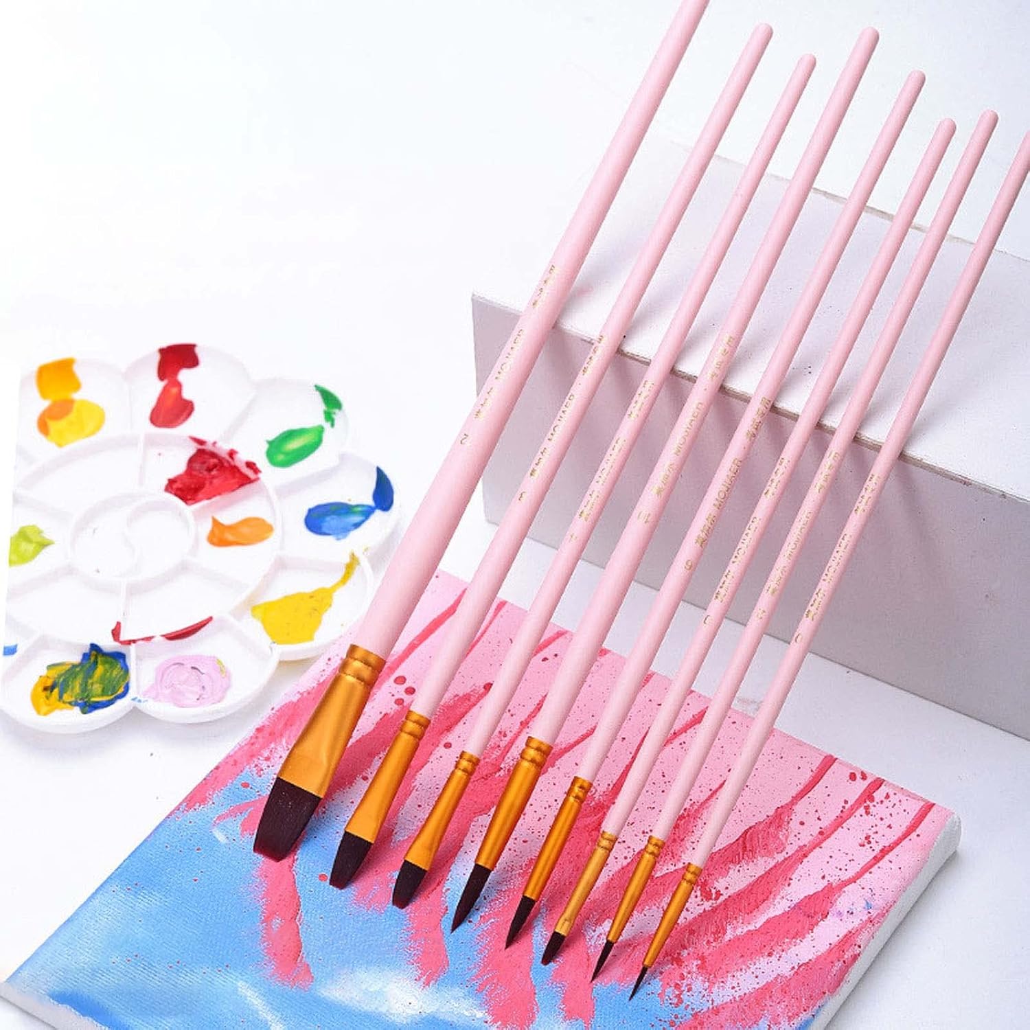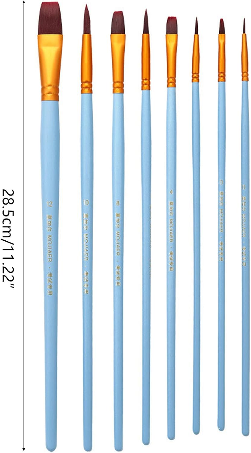 Ampia gamma di applicazioni. Set di pennelli professionali per la maggior parte dei tipi di pittura come pittura su viso e corpo, arte murale, pittura a olio/acquerello/acrilico/guazzo, pittura con stencil, pittura su modellini in scala, arte roccia/ceramica/pittura su pietra PENNELLO PROFESSIONALE. I pennelli multifunzionali per pittura sono adatti per principianti, studenti, bambini e hobbisti. Ogni pennello ha le sue dimensioni contrassegnate sul manico, facile da differenziare e utilizzare Facile da usare. Legno di alta qualità e setole di nylon e grande assorbimento d'acqua, morbido e facile da colorare. Puntali in lega antiruggine sigillati estremamente saldamente che non fuoriescono o si allentano facilmente VERSATILITÀ, PRATICITÀ. 8 tipi di pennelli ad acquerello per varie esigenze di pittura e colorazione. Manico in legno antiscivolo, offre una presa comoda. Soddisfa facilmente varie esigenze di dettaglio, illustrazione, rivestimento, miscelazione Meraviglioso regalo. Per principianti, studenti, lavoratori artistici e artigiani e artisti professionisti. Facile da lavare con acqua corrente e acqua calda. Consigli: prima dell'uso, si prega di immergere in acqua a bassa temperatura per alcuni minuti