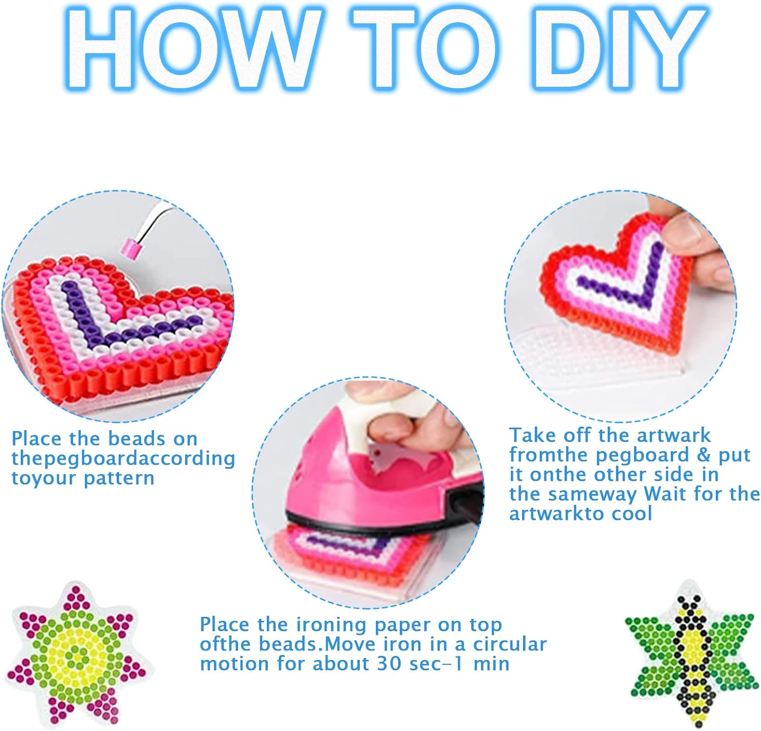 Set di piastre di perline da stirare: il set di piastre contiene 8 modelli e 1 pinzetta, come quadrato, cerchio, esagono, fiore, stella e cuore. Esistono diverse forme di tavole in rilievo per soddisfare le diverse esigenze. Materiali di alta qualità: le piastre per perline sono realizzate in plastica di alta qualità, durevoli, sicure e inodori. Inoltre, la lamina ungueale non è facile da rompere durante la stiratura e non si scioglie o si piega facilmente. Istruzioni per l'uso: 1. Posizionare lo stencil sotto una bacheca trasparente; 2. Posizionare le perline sullo stencil con una pinzetta e modellare il modello a piacimento; 3. Mettere la carta da stiro sulle perline e scaldare leggermente con il ferro da stiro fino a quando le perline si attaccano, quindi lasciarle raffreddare. Gioco di pazienza: il set di perline da stirare è un ottimo passatempo per i bambini. Il set di perline da stirare allena la coordinazione occhio-mano, stimola la creatività dei bambini e migliora la loro capacità di attenzione e pazienza. Regalo perfetto: questo set di piastre di perline è il regalo perfetto per i bambini. Puoi trascorrere un tempo divertente e fantasioso con il tuo bambino e realizzare bellissimi lavori di bricolage.
