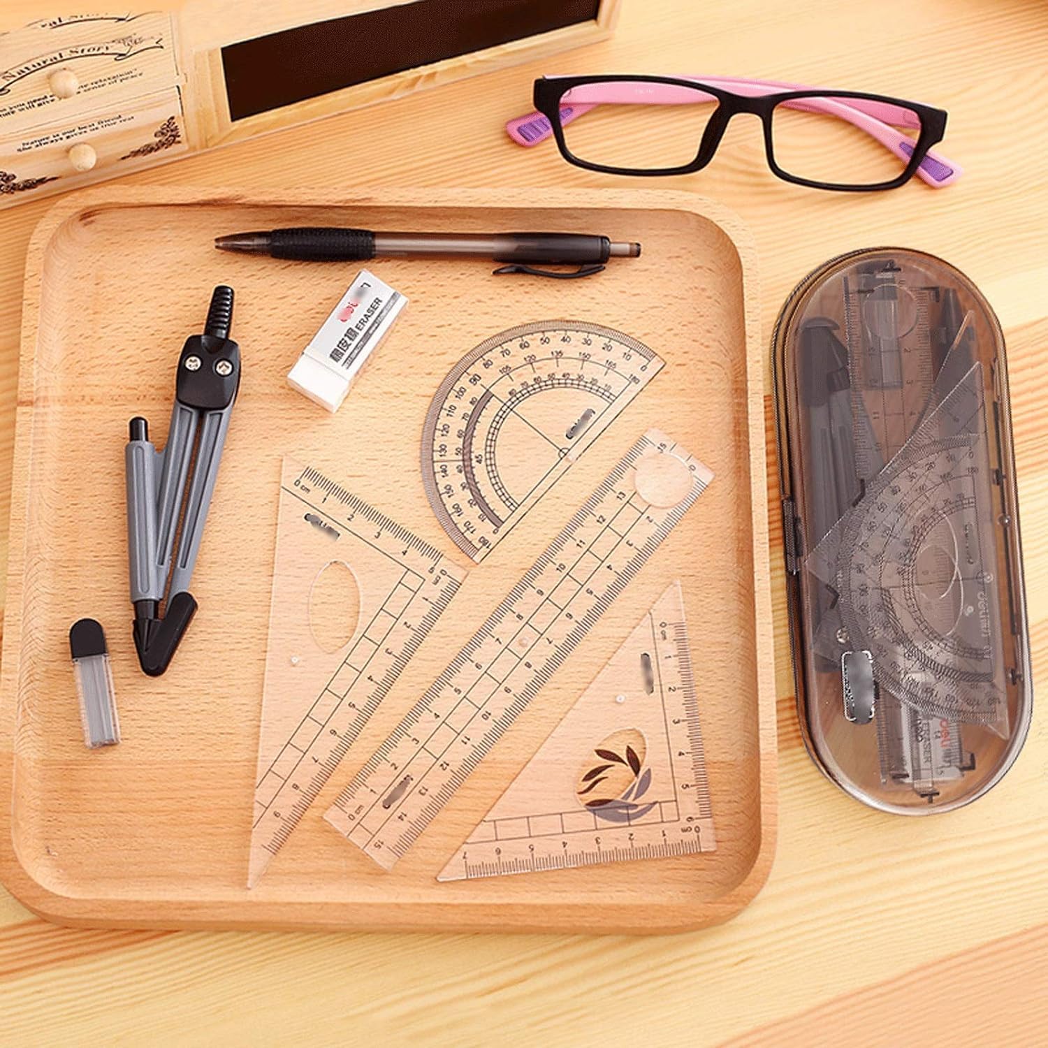 Realizzati con materiali durevoli, i nostri strumenti sono progettati per garantire precisione e durata costanti, sia che tu sia uno studente alle prese con i compiti di geometria, sia che tu sia un professionista che lavora su progetti complessi. Il set include: goniometro, gomma, matita, compasso, righello, anima in mina, righello triangolare 2. La scala è chiara e luminosa, facile da leggere, comoda da misurare e soddisfa le esigenze. La bussola è dotata di una matita meccanica, comoda per disegnare e piacevole da usare. Riponilo in una scatola trasparente riutilizzabile. Facile da riporre e trasportare.
