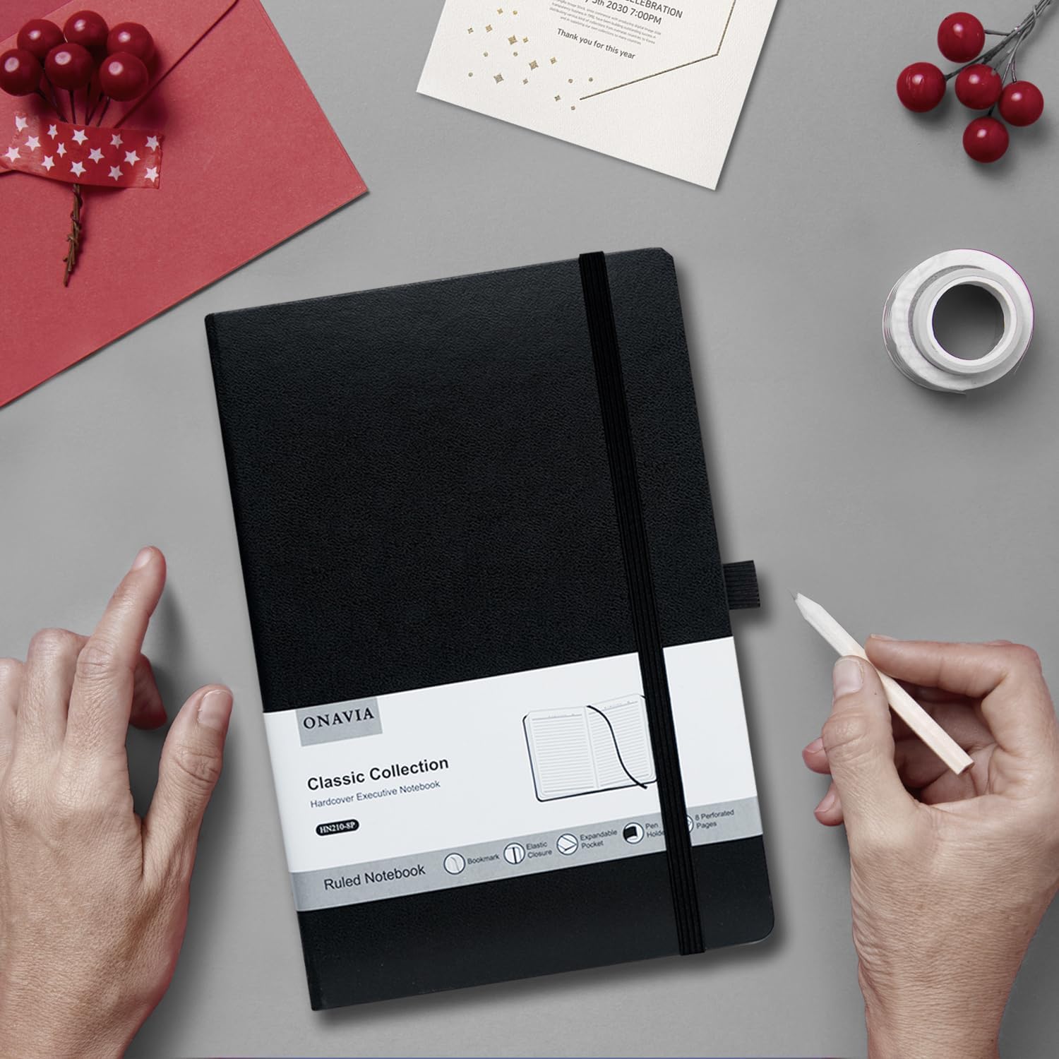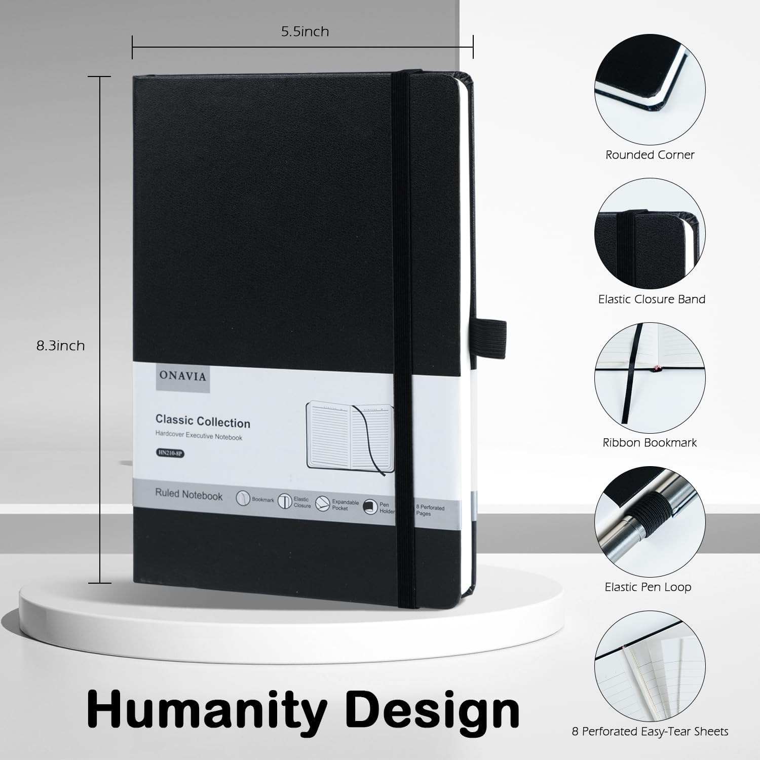 Notebook con copertina rigida in confezione multipla: il notebook della linea standard ONAVIA presenta una copertina rigida robusta e durevole, 80 fogli, 160 pagine. I viaggiatori possono utilizzare questo taccuino come diario di viaggio per annotare momenti e pensieri preziosi. Ogni taccuino misura 21 x 14 cm, il che è comodo da portare in mano o mettere in borsa Pagine Premium: ONAVIA Le spesse pagine di carta avorio da 100 g/m² di un taccuino con copertina rigida ONAVIA sono perfettamente strutturate per scrivere con una penna a sfera, una penna stilografica o una matita senza sbavature. Il prodotto è molto adatto come regalo di Natale Design piatto a 180° per scrivere facilmente: il taccuino a righe ONAVIA College è progettato per essere piatto a 180°, rendendo più facile e comodo scrivere, prendere appunti e fare schizzi Design dettagliato dell'umanità: i quaderni da lavoro ONAVIA A5 includono 1 segnalibro a nastro che può aiutarti a segnare il punto esatto in cui sei rimasto. 1 anello elastico per penna ti assicura di avere sempre una penna o una matita a portata di mano quando devi annotare una nota. 1 tasca interna espandibile per riporre oggetti sfusi come appunti, fatture, ricevute, biglietti per appuntamenti, ecc. 8 fogli perforati facili da strappare: gli ultimi 8 fogli perforati facili da strappare con una linea di strappo nei quaderni ONAVIA ti consentono di strappare le pagine in modo pulito e senza sforzo senza lasciare bordi irregolari. Può aiutarti a creare biglietti da visita temporanei, foglietti adesivi e altro ancora