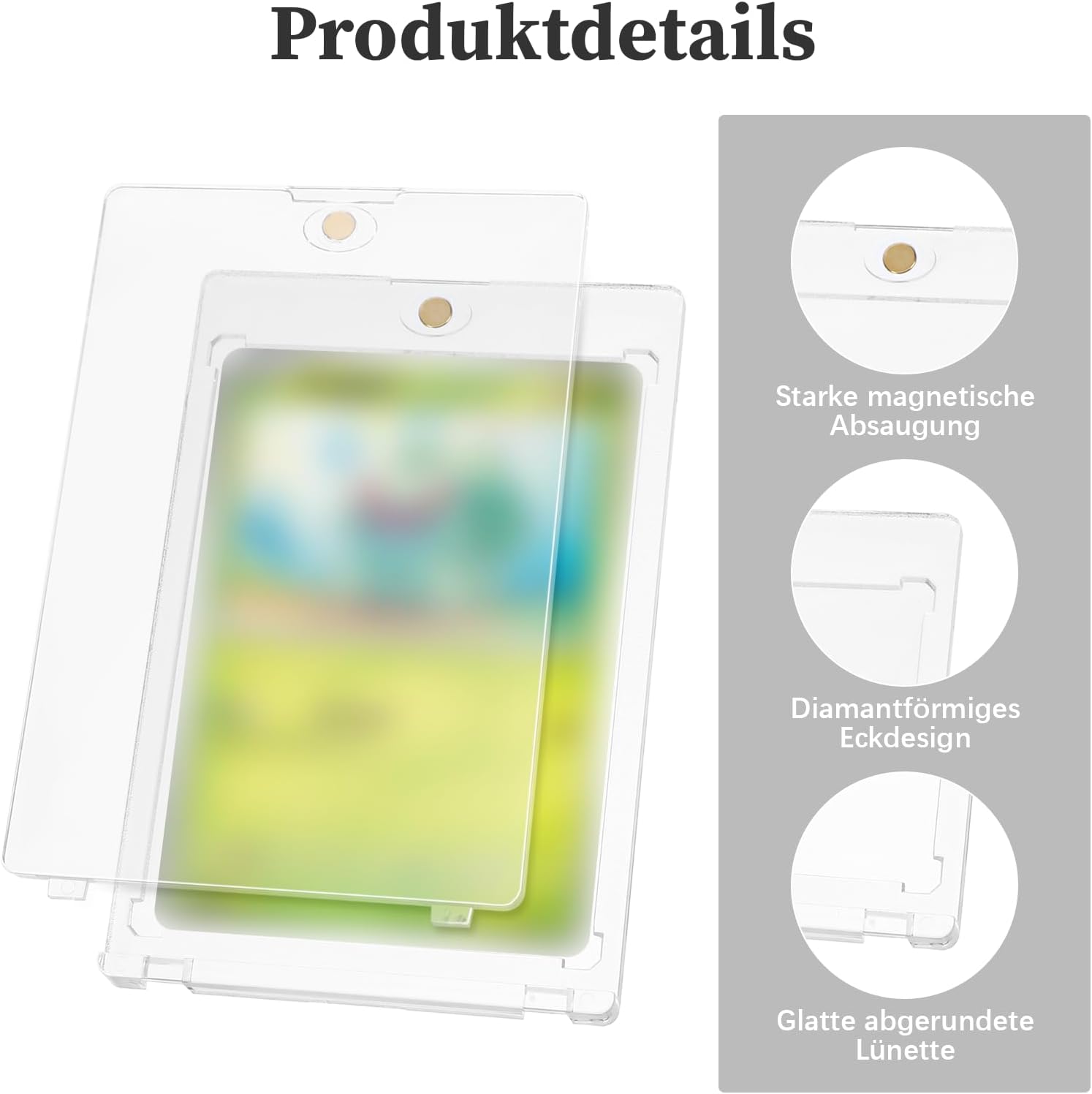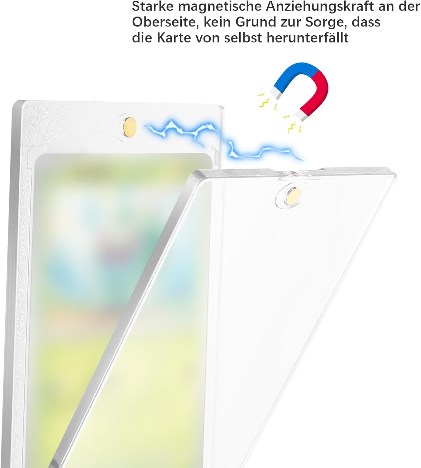 35pt Magnetic Card Holder Set: riceverete 8 custodie per carte di credito e 8 supporti per carte di credito, dimensioni 110 mm x 73 mm x 6 mm, può essere utilizzato per la maggior parte della collezione di carte Materiale di alta qualità: il nostro supporto magnetico per carte di credito è realizzato in materiale PS di alta qualità. Photocard Holder ha un rivestimento resistente ai raggi UV che impedisce alle carte di umidità e sporco, conservare le carte correttamente ed evitare che le carte si rompano e sbiadiscano Design superiore: le nostre custodie per carte di credito sono progettate magneticamente per contenere le carte. Questo design assicura che le carte siano saldamente fissate nella cartellina trasparente. Le carte collezionabili possono essere aperte o chiuse facilmente e comodamente, facilitando l'accesso alle tue carte e riducendo il rischio di danni o smarrimento Cornice ideale: i nostri angoli (caso carta) utilizzano un design a forma di diamante che protegge gli angoli delle carte da piegatura. (Card Case) può proteggere le vostre preziose carte e ridurre il rischio di rughe, graffi situazione Versatile: il supporto magnetico per carte può essere utilizzato per raccogliere e memorizzare le vostre preziose carte, è possibile raccogliere e mostrare carte sportive, carte anime, carte da gioco, carte da baseball, carte di calcio, carte di trading, foto, altamente trasparente (custodia per carte) non solo protegge bene le vostre carte preziose, ma permette anche di visualizzare le carte