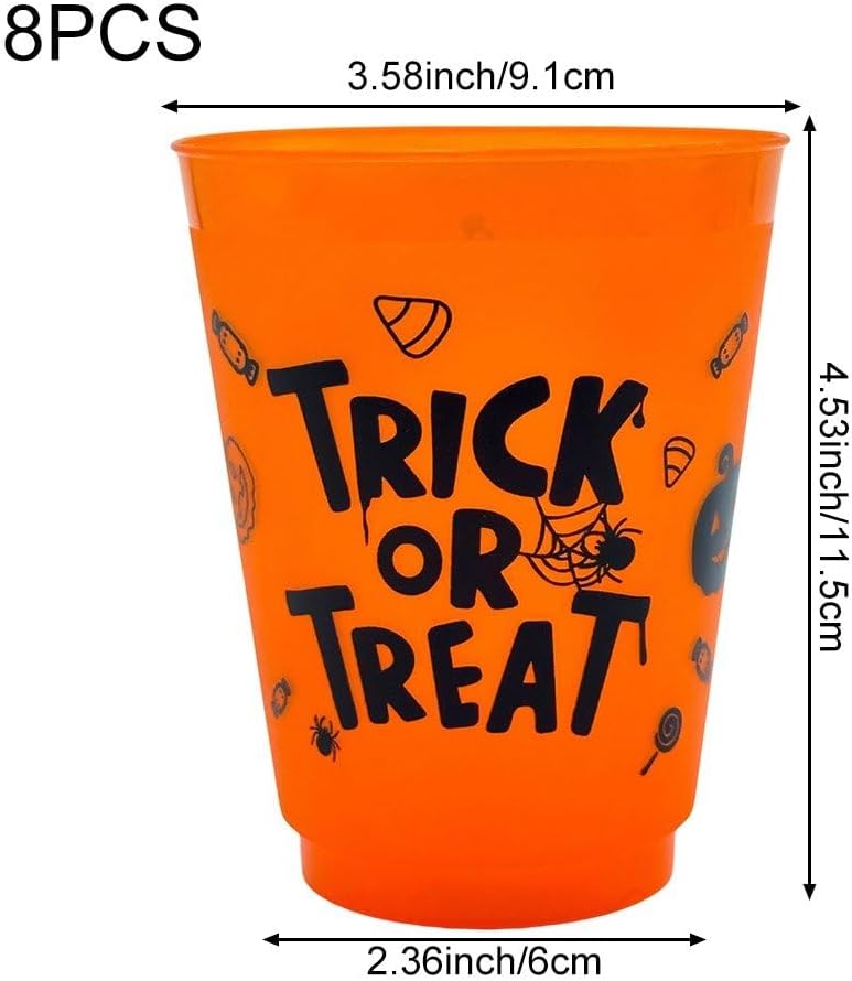 Perfetto per le feste: ideale per feste e celebrazioni di Halloween. Queste tazze presentano frasi classiche come "Dolcetto o scherzetto", "Stagione spettrale" e "!" con grafica a tema abbinata DIMENSIONE VERSATILE: Le tazze sono di dimensioni perfette per diverse bevande, rendendole adatte sia a bambini che ad adulti per la tua festa di Halloween COSTRUZIONE DUREVOLE: Realizzata in plastica robusta, perfetta per servire bevande fredde alle feste di Halloween e riunioni a tema DESIGN SOLIDO: Set di bicchieri di plastica Halloween da 8 pezzi con motivi spettrali tra cui fantasmi, zucche e case infestate APPELLO DECORATIVO: Aggiungi un tocco festoso alla tua festa di Halloween con i suoi colori traslucidi e i disegni delle silhouette spettrali