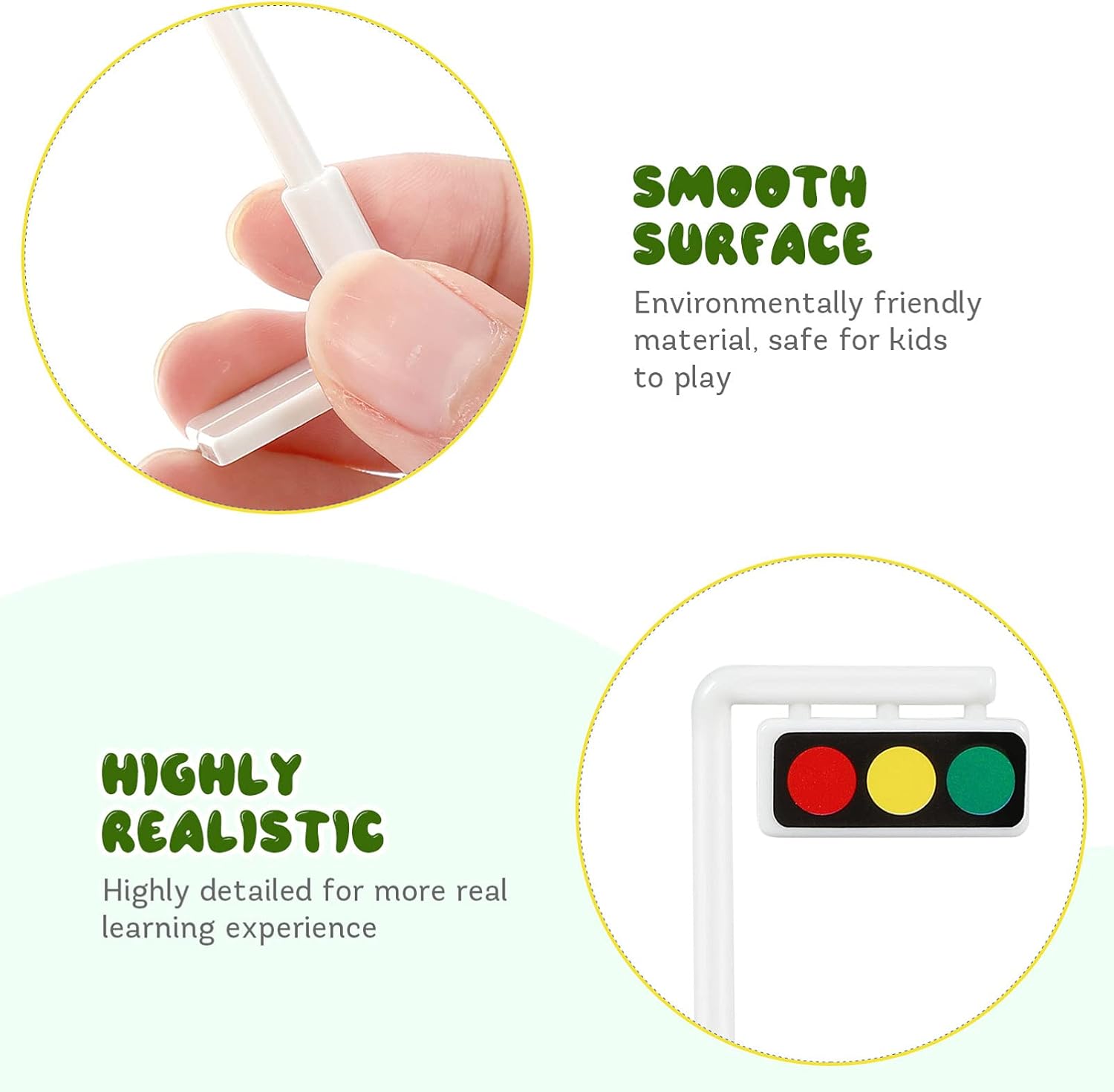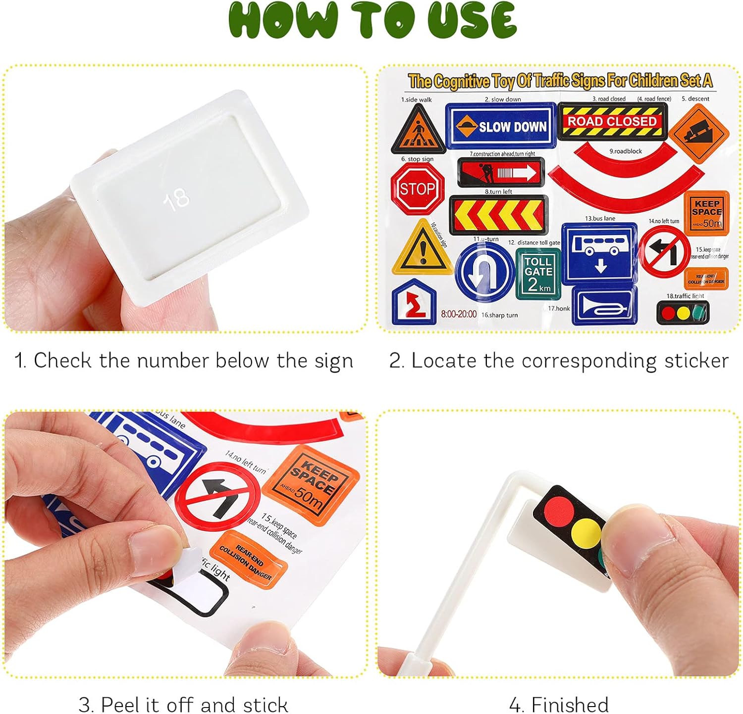 Realizzato in materiale di buona qualità, non facile da danneggiare, deformare, sbiadimento, squisita fattura, per un uso prolungato, superficie liscia, inodore, sicuro da usare. Può essere dato come un per i vostri bambini. Segnali assortiti per simulazione di edifici e costruzioni stradali e materiali di alta qualità per stare in piedi in modo più stabile. Fai sapere ai bambini più segnali stradali. Lascia che si impegnino nell'apprendimento. Promuovere il riconoscimento dei segnali stradali standard, educativi e di sviluppo. Basta attaccare le decalcomanie sui cartelli secondo il numero. Scena traffico veicolo fingere, incoraggia cooperativo e fantasioso con gli amici. Incoraggia i bambini a essere fantasiosi e a lavorare bene con gli altri bambini. Promuovere il riconoscimento dei segnali stradali standard, educativi e di sviluppo.