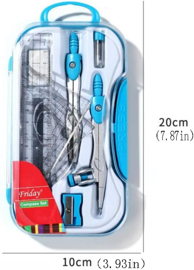 Adatto a professionisti e studenti, esigenze di matematica, geometria, disegno e disegno tecnico La confezione include: 1 bussola, 1 confezione di matite meccaniche. Diametro massimo: 20 cm (7,87 pollici) * 10 cm (3,93 pollici) La bussola è inserita in una custodia riutilizzabile per facilitarne il trasporto e la conservazione. Per lezioni di geometria, disegno tecnico, disegni architettonici, progettazione ingegneristica, inclusa progettazione meccanica e costruzione.