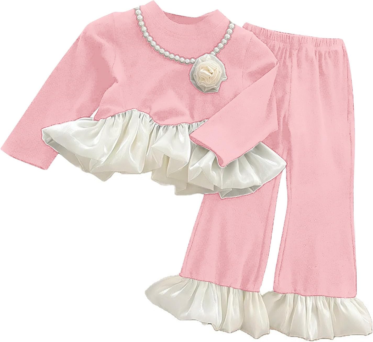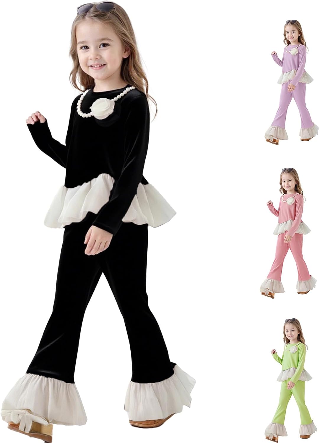Questo è un set di abbigliamento per ragazze con motivo Halloween e pantaloni svasati. Il vestito autunnale in due pezzi con stampa di lettere, adatto per la stagione