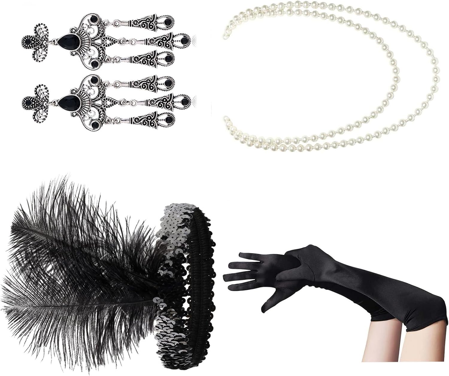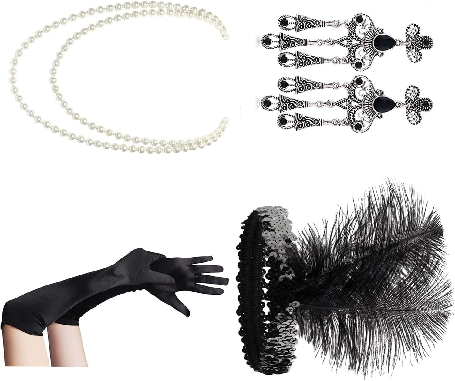 Caratteristiche: Accessori anni '20 da donna, riceverai un totale di 4 pezzi, 1 fascia per capelli anni '20, 1 paio di orecchini pendenti vintage (2 pezzi), 1 paio di guanti elastici (2 pezzi), 1 collana di perle. copricapo da donna, fascia con cristalli anni '20 ha un design semplice, dolce ed elegante. Taglia adatta alla maggior parte delle persone, adatta per la maggior parte delle donne e ti fa risaltare alle feste. Adatto per molte occasioni, il set di accessori da donna è un'ottima aggiunta per feste, come grandi banchetti, feste a tema ruggenti anni '20, feste di Halloween, feste a tema. Meraviglioso, dolce e caldo per amici, familiari o per te stesso. Specifiche tecniche: : Poliestere + Colore: vino, nero, bianco, verde, oro, rosso. Dimensioni: circonferenza della testa: 54-58 cm. Nota: Considerare un margine di errore di 1-2 cm dovuto alla misurazione manuale. A causa della differenza tra i diversi monitor, l'immagine potrebbe non rispecchiare il colore reale dell'articolo. La confezione include: Set di accessori per costume ruggenti anni '20