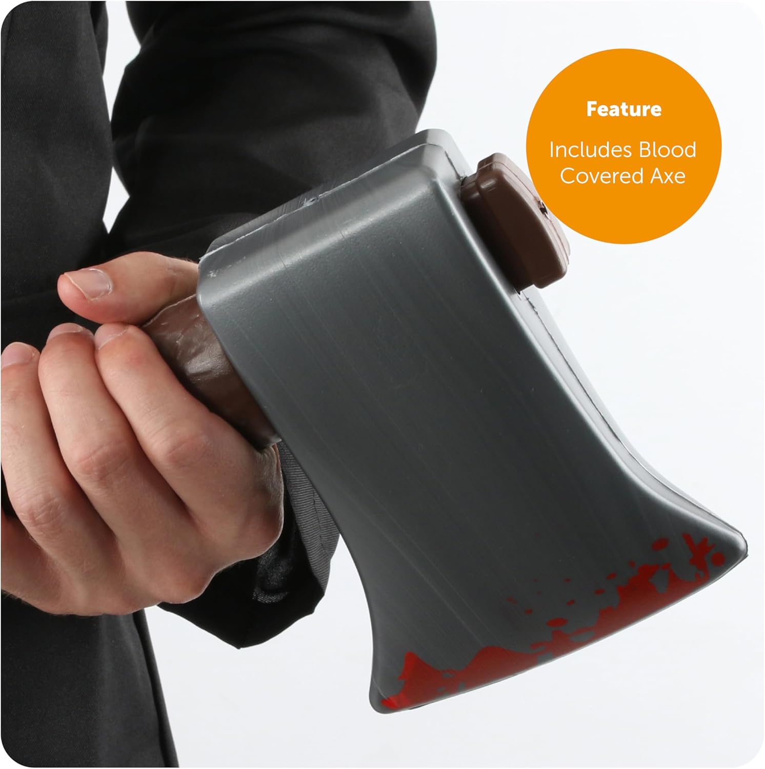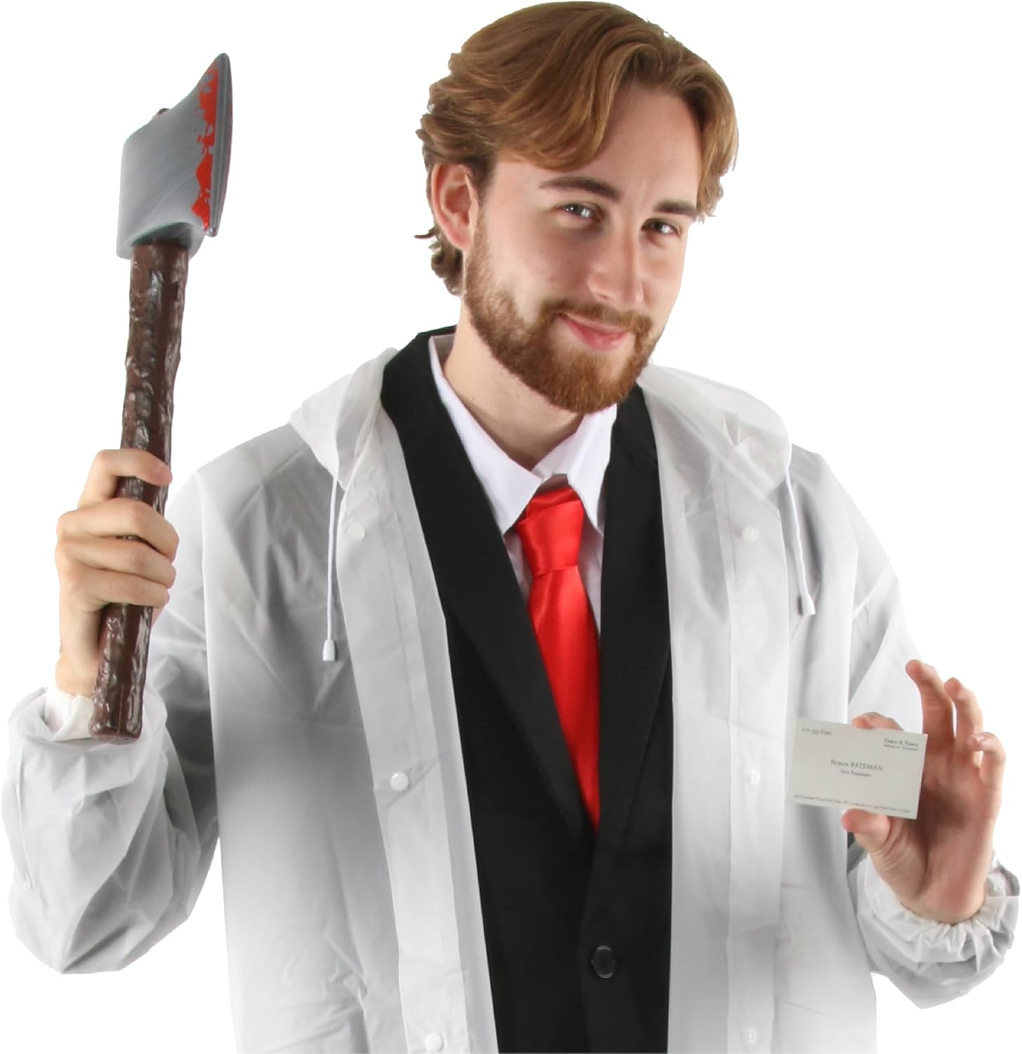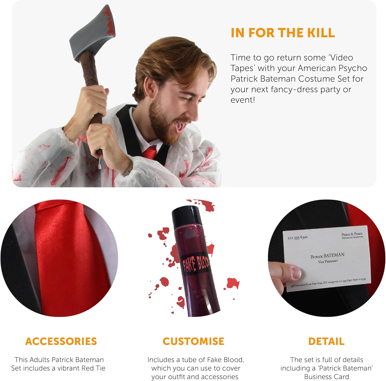 Set di accessori Patrick Batman - Ascia insanguinata, cravatta rossa, biglietto da visita e sangue finto - Costume da PSYCHO americano adulto e personaggio del film