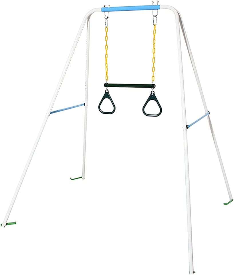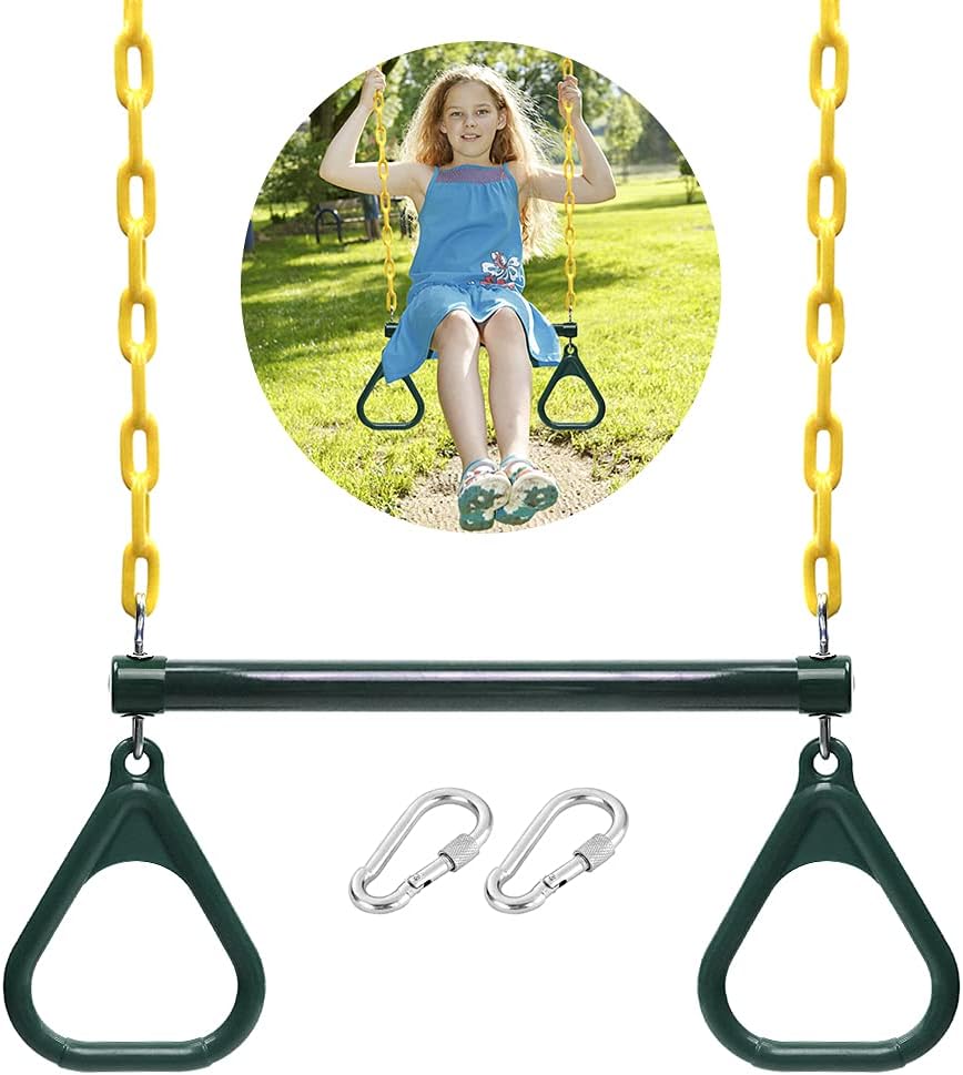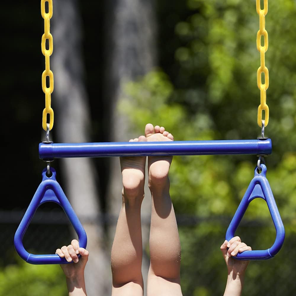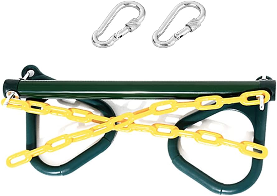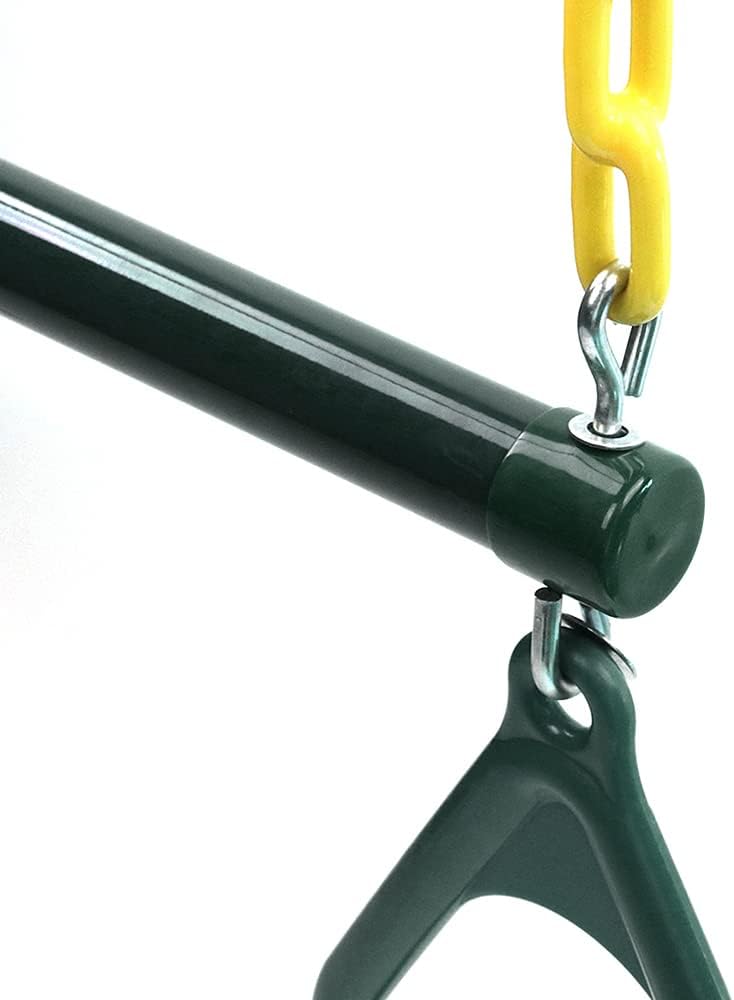 I componenti rivestiti in plastica garantiscono un gioco liscio, antiruggine e sicuro per i bambini Catena regolabile in altezza per un'esperienza di oscillazione personalizzabile Supporta fino a 200 kg per un uso familiare versatile Include barra trapezio, anelli, catene e moschettoni per una configurazione completa dell'altalena Set di accessori per altalena resistenti completamente assemblati per un divertimento istantaneo