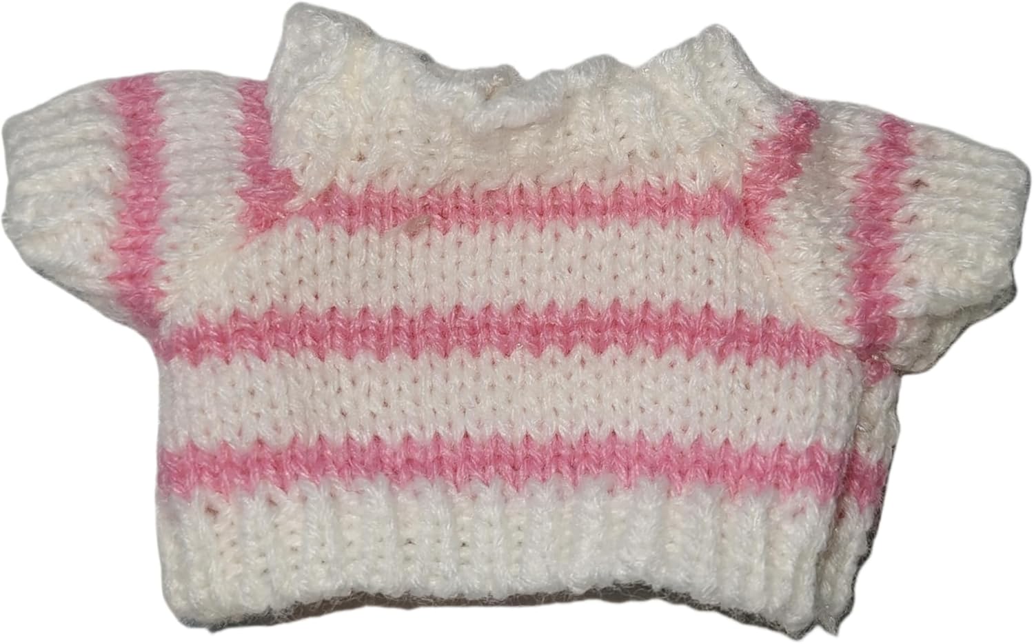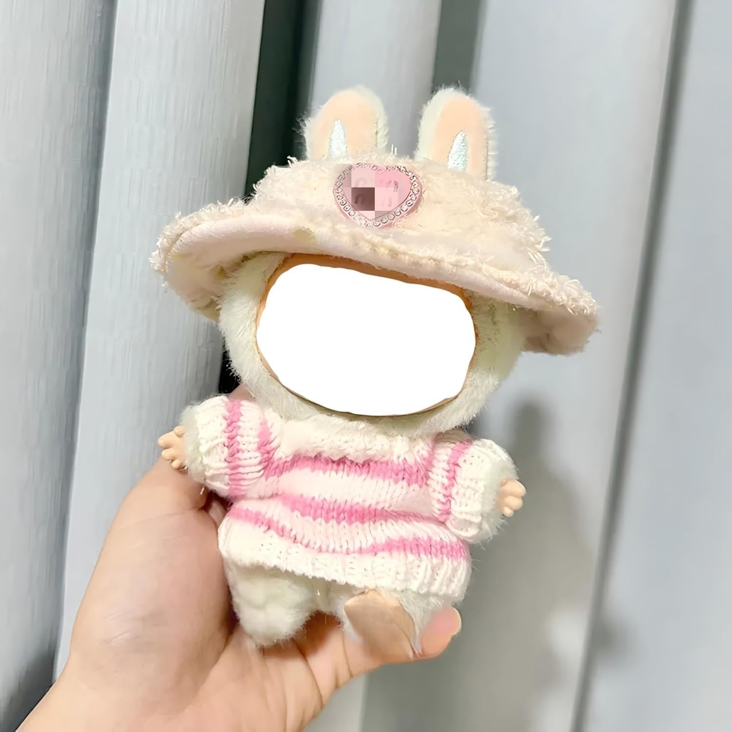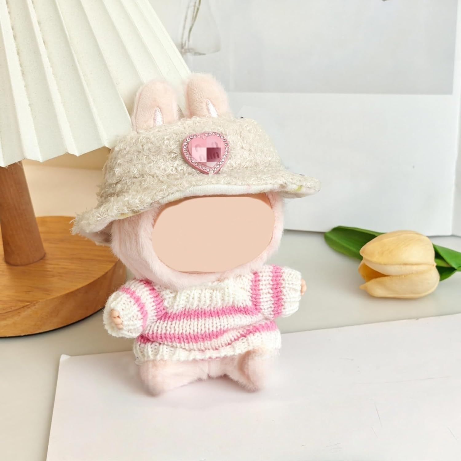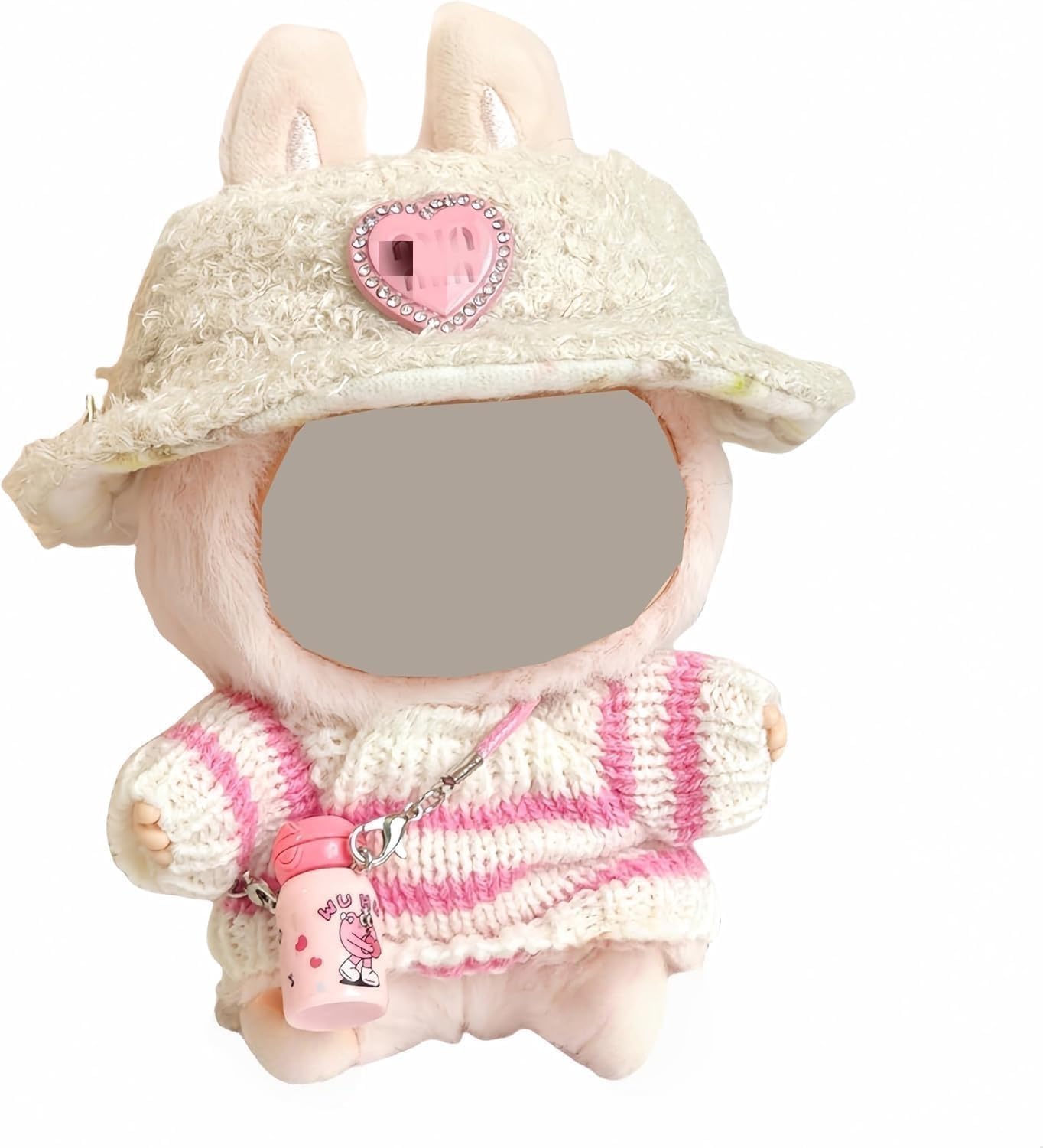 Set di accessori: set di accessori per bambole di alta qualità, composto da cappello, maglione lavorato a maglia e bottiglia in combinazione di colori rosa-bianco Cappello elegante: cappello di peluche bianco con orecchie carine Maglione caldo: maglione lavorato a mano in bianco con strisce rosa, perfetto per la stagione fredda Dettagli carini: piccola bottiglia rosa con simpatico motivo a fumetti e pratico anello di fissaggio Vestibilità: vestito appositamente progettato per bambole di peluche (bambola non inclusa)