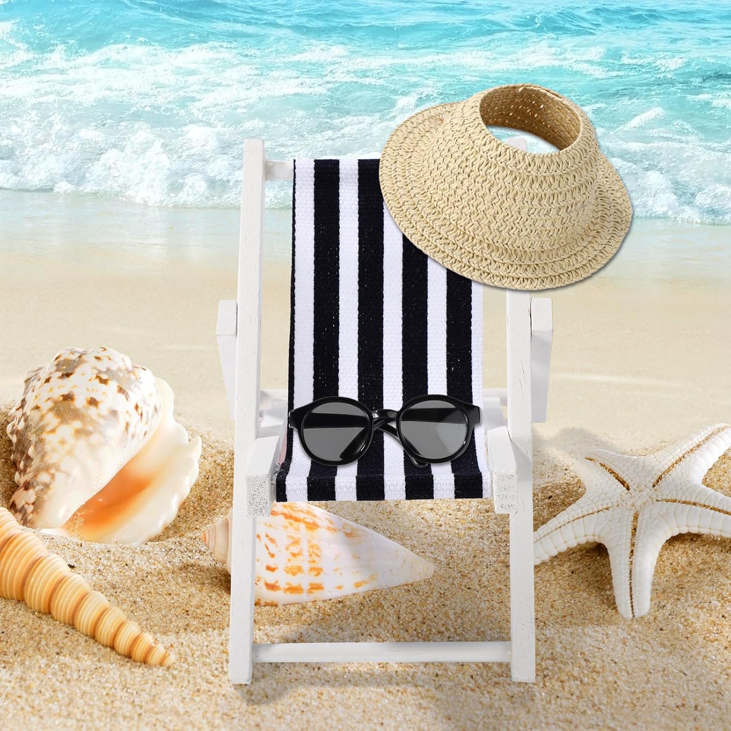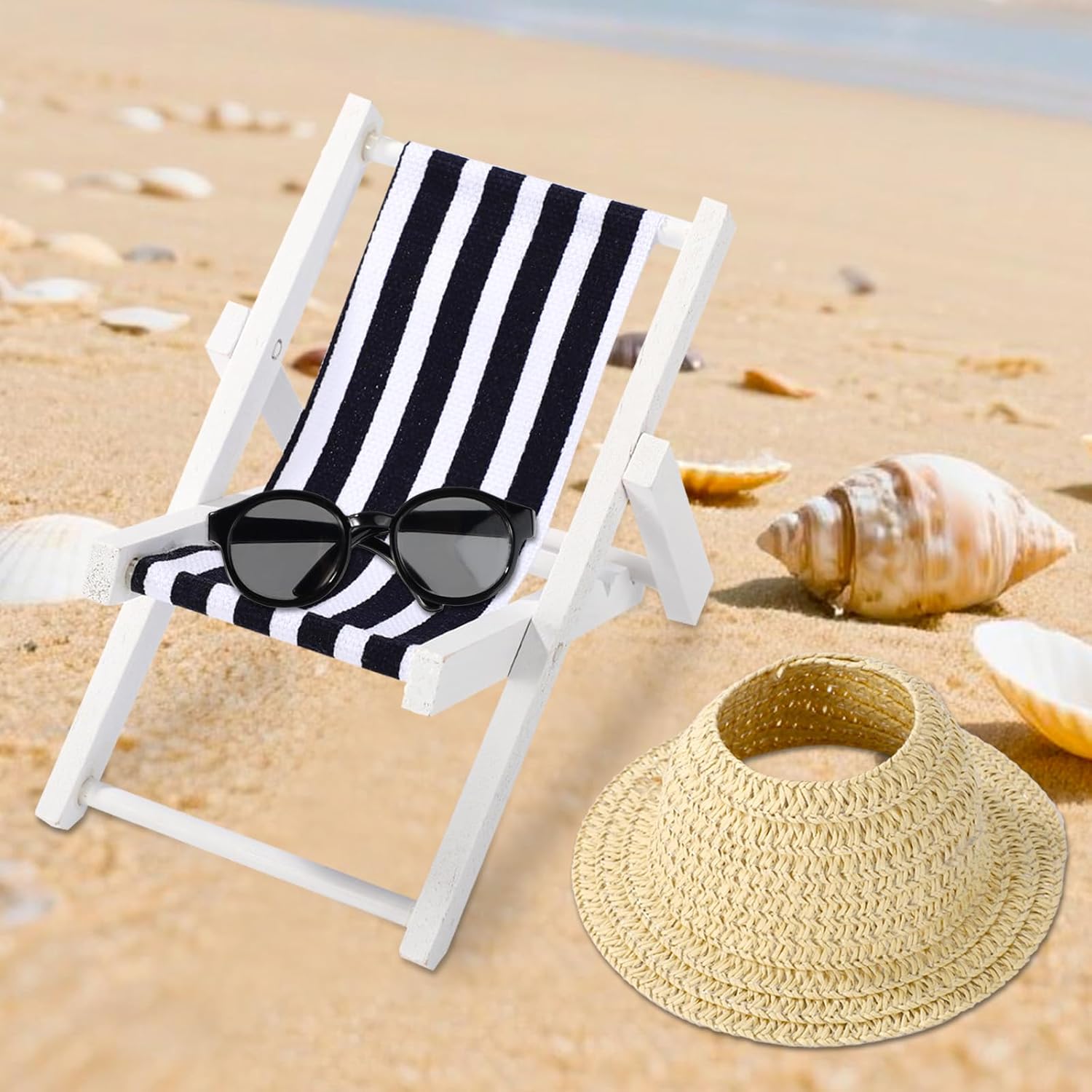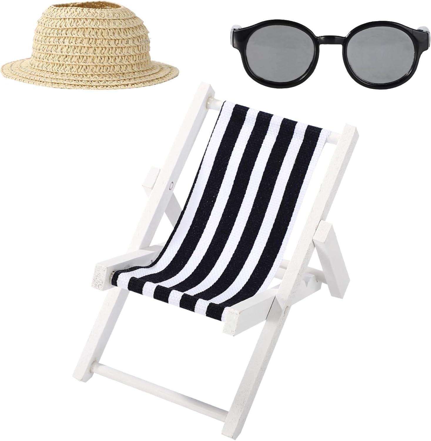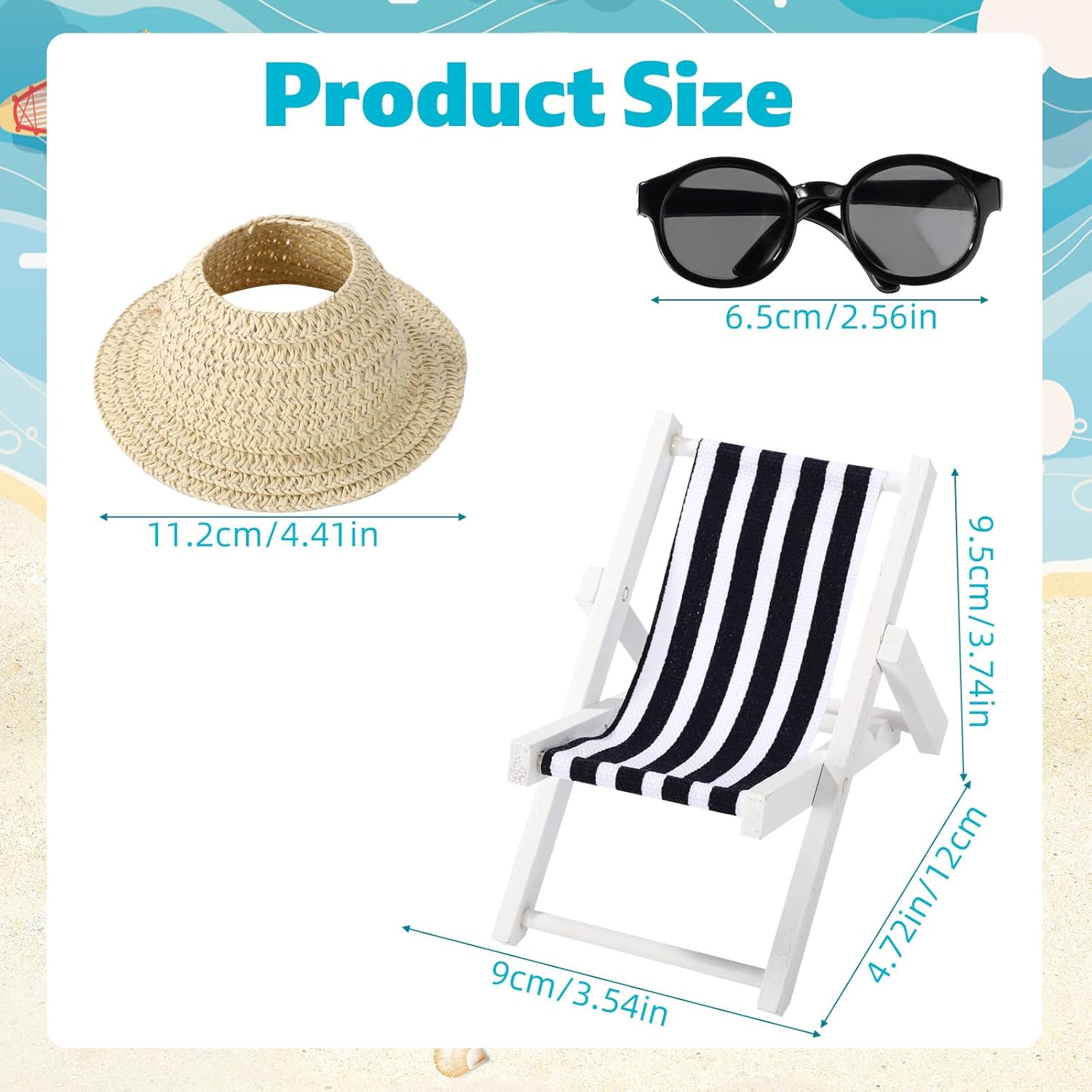 Elenco dei prodotti: include 1 mini sedia a spiaggia pieghevole in legno, 1 paio di piccoli occhiali da sole in plastica e 1 cappello da sole. Perfetto per bambole da 17 cm. Nota: la bambola non è inclusa. Informazioni sulle dimensioni: la sedia pieghevole in miniatura misura 12x9x9,5 cm, gli occhiali da sole sono 6,5 cm e il cappello da sole è di 11,2 cm. Accessori divertenti delle bambole: questi accessori sono progettati per adattarsi alle bambole di 17 cm di altezza. Ideale per il tempo di gioco e per decorare la tua casa delle bambole per creare un ambiente da sogno. Materiale del prodotto: realizzato con legno e stoffa per la sedia, plastica per gli occhiali da sole e carta rattan per il cappello da sole. Questi mini accessori sono leggeri e facili da usare, garantendo la durata e il gioco di lunga durata. Occasioni applicabili: questi accessori delle bambole sono perfetti per le vacanze a tema spiaggia, offrendo molto divertimento e divertimento per le tue bambole. Ottimo per l'uso a lungo termine e una fantastica aggiunta a qualsiasi collezione di bambole.