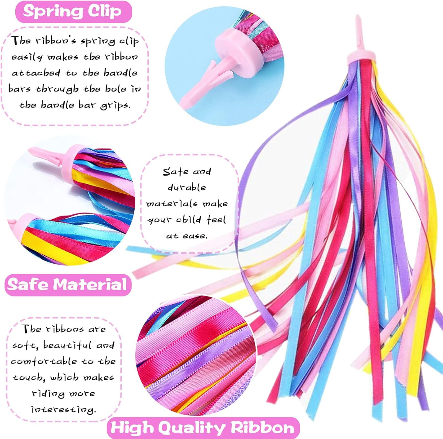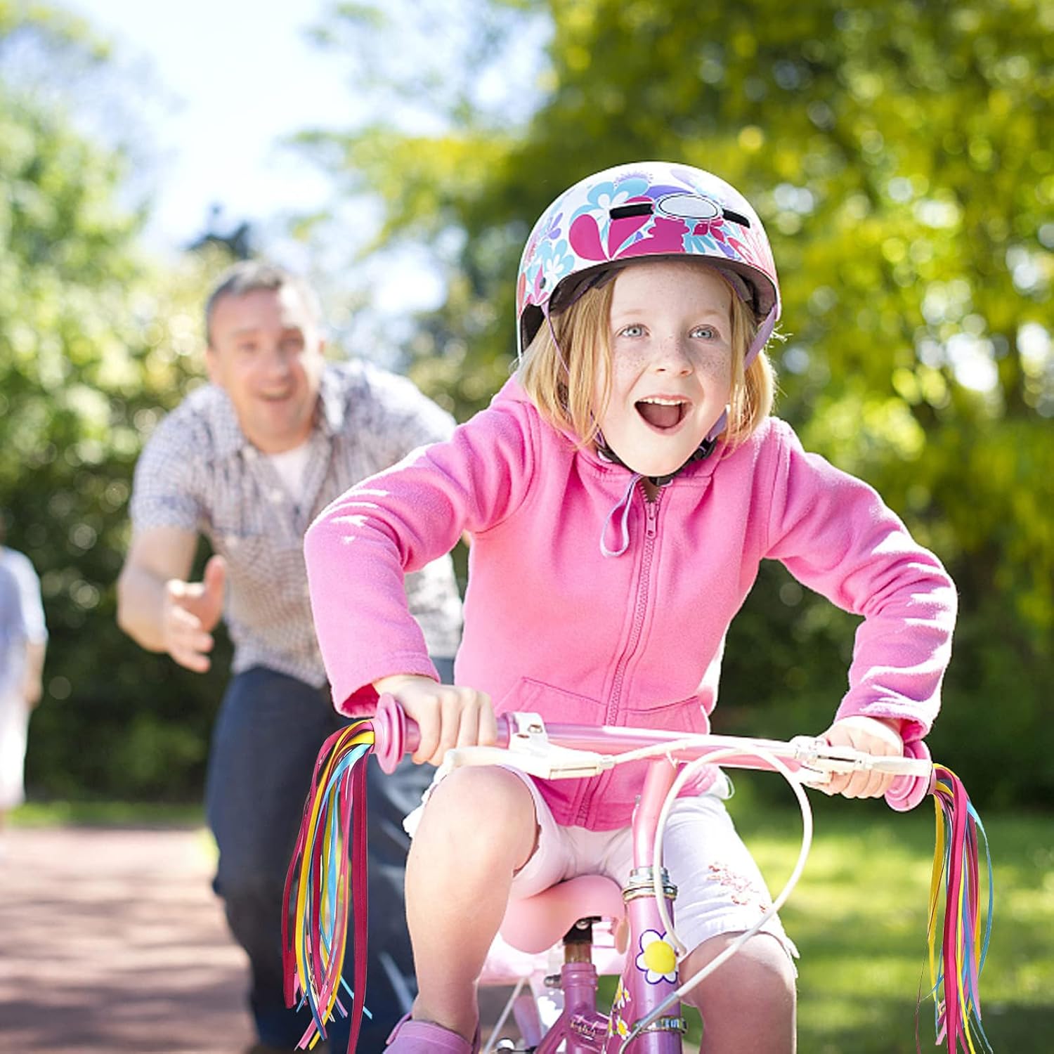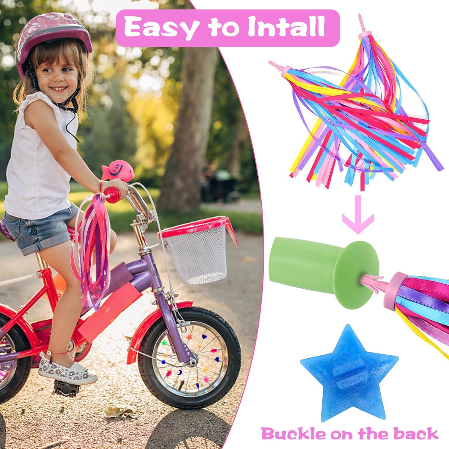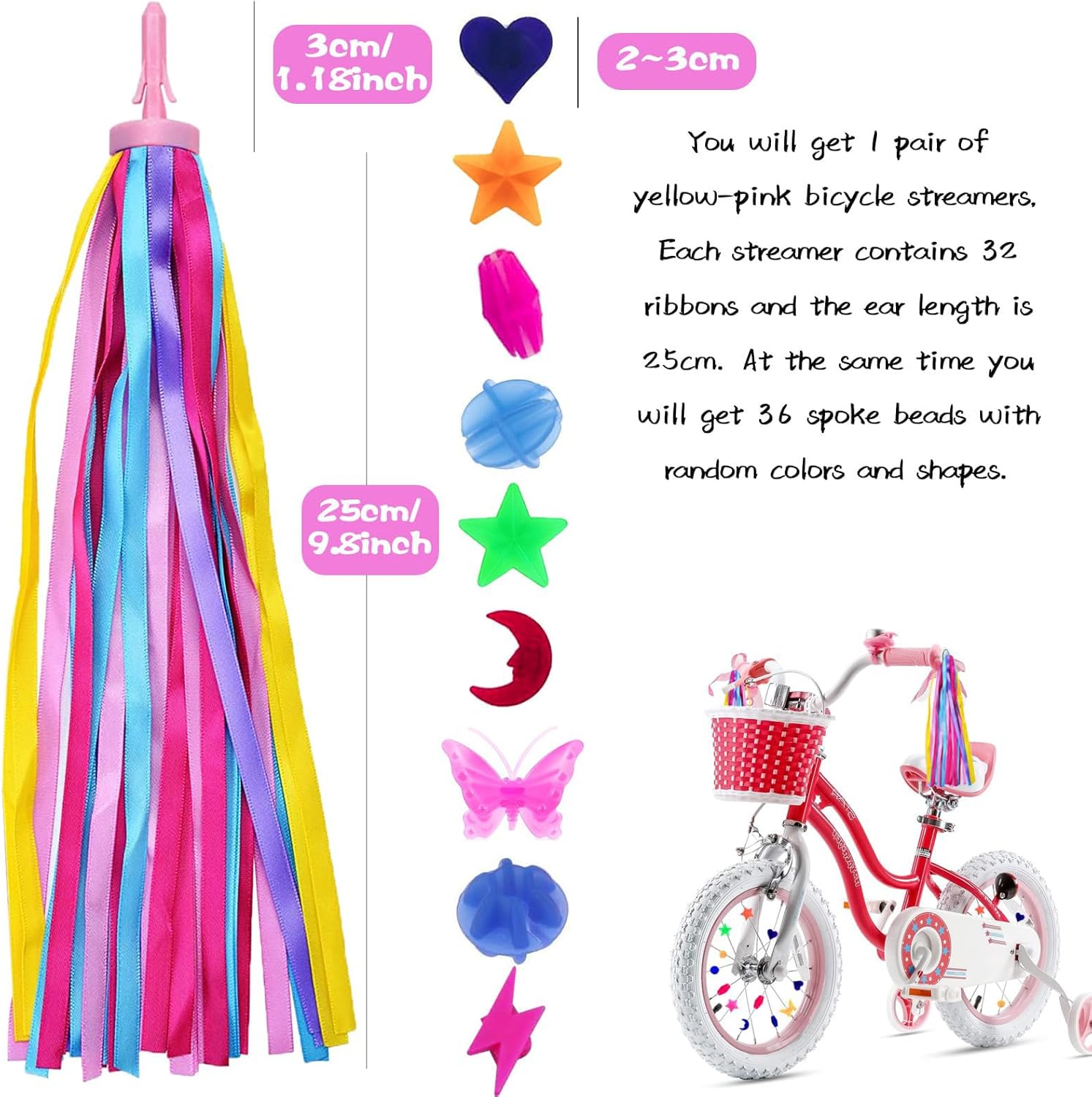 Decorazione squisita e più sicura: questi pom pom premium e stelle filanti con perline a raggi sono un'ottima decorazione per le biciclette per bambini, svolazzano nel vento con il veicolo durante la corsa, aggiungendo più divertimento e bellezza alla guida del piccolo, e i colori vivaci lo rendono facile da notare per gli altri, migliore sicurezza durante la guida. Diffusori colorati per biciclette: riceverai 1 paio di stelle filanti per biciclette giallo-rosa viola e 32 diversi stili di perline per raggi di bicicletta, di colore brillante e in quantità sufficiente, che possono soddisfare le tue esigenze di utilizzo e sostituzione. I colori possono decorare molto bene la bicicletta di tuo figlio. Facile da installare: serpenti: inserisci la clip a molla sulla testa degli streamer nella presa del manubrio della bici per fissarla senza attrezzi (assicurati che la bici possa adattarsi prima dell'acquisto); Perline per raggi: allinea la scanalatura sul tallone con il raggio della bici, basta premere con decisione per agganciarlo, è disponibile una varietà di colori e forme diversi. Set di materiali premium: questi accessori per bicicletta per ragazze sono realizzati in poliestere e plastica di alta qualità, che hanno una buona tenacità e durata, sono lisci e morbidi, e i colori sono brillanti e non facili da sbiadire, che possono essere utilizzati a lungo. Ognuna delle nostre bobine è composta da 32 bobine, soffici e belle, con lavorazione squisita. Regali meravigliosi per i bambini: le stelle filanti e le perline per biciclette per bambini sono di colore brillante, adatte a bambini alle prime armi con il ciclismo e possono essere utilizzate anche come regali di compleanno e di Natale. Sono il complemento decorativo perfetto per biciclette e scooter per bambini