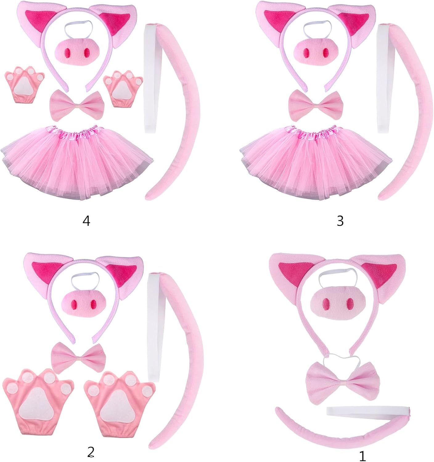 Set di accessori per costume da maialini, fascia per capelli, papillon, muso, gonna, guanti e coda. Caratteristiche: Set fantasia kit accessori orecchie fascia, zampe guanti, tutù gonna naso coda e papillon 4 pezzi, 5 pezzi o 6 pezzi set Questo set elegante è molto facile e comodo da indossare e molto da indossare e da togliere. Può vestirti in breve tempo Taglia da bambini a piccoli adulti. Questo è un ottimo set per feste in maschera, Halloween, recite scolastiche o semplicemente per divertimento. Ottimo per indossare meglio il kit costume è un panno morbido e comodo da indossare Specifiche tecniche: tessuto. 1 2 3 4 La confezione include: Stile 1: 1 cerchietto con orecchie. 1 naso. 1 coda. 1 papillon. Stile 2: 1 cerchietto con orecchie. 1 naso. 1 coda. 1 papillon. 1 paio di guanti con zampe. Stile 3: 1 cerchietto con orecchie. 1 naso. 1 coda. 1 papillon. 1 gonna a tutù. Stile 4: 1 cerchietto con orecchie. 1 naso. 1 coda. 1 papillon. 1 paio di guanti con zampe. 1 gonna a tutù. Nota: Considerare un margine di errore di 1-2 cm dovuto alla misurazione manuale. A causa della differenza tra i diversi monitor, l'immagine potrebbe non rispecchiare il colore reale dell'articolo.