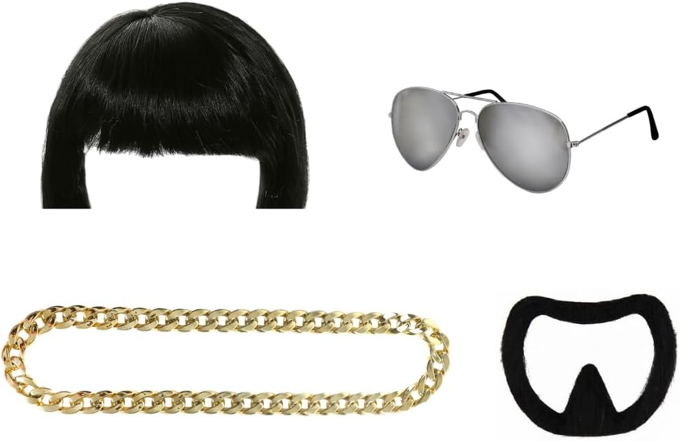 Trasformati nella leggenda definitiva della festa con il nostro set di accessori per costume da Boss finale di Ibiza per adulti, perfetto per festival, eventi in maschera e serate indimenticabili. Questo kit esilarante e audace include un'elegante parrucca nera a caschetto, pizzetto adesivo, catena d'oro grossa e un paio di tonalità nere fredde per darti quel look VIP over-the-top. Sia che tu stia andando sulla pista da ballo, organizzando una festa a tema o distinguendoti a un addio al celibato, questo set di costumi è garantito per ottenere risate, foto e attenzione. Comodo da indossare e facile da montare, è ideale per trasformazioni rapide e di impatto senza il trambusto di un costume completo. Abbinalo al tuo outfit preferito per completare il personaggio più grande della vita o vai all-in per un'atmosfera da boss di Ibiza che ti farà girare la testa. Progettato per adulti, questo set divertente e versatile funziona per serate in discoteca, festival estivi, feste di compleanno o qualsiasi evento in cui si desidera essere al centro dell'attenzione. Sali su, possiedi la stanza e lascia fluire l'energia del boss finale.