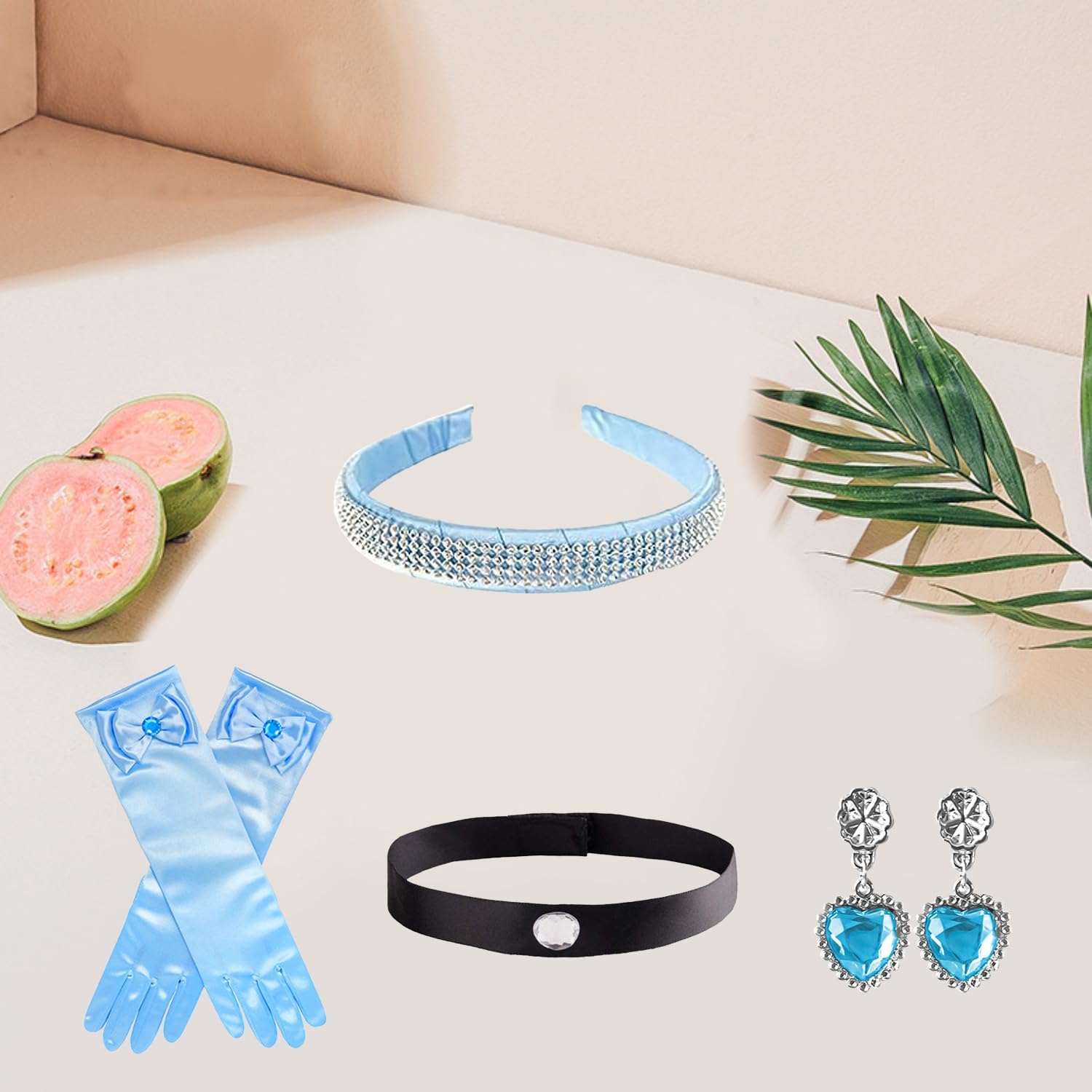 Descrizione prodotto Set di accessori per costume da principessa blu fascia girocollo guanti lunghi con fiocco orecchini donna Halloween Cosplay Dress up Avviso di sicurezza No