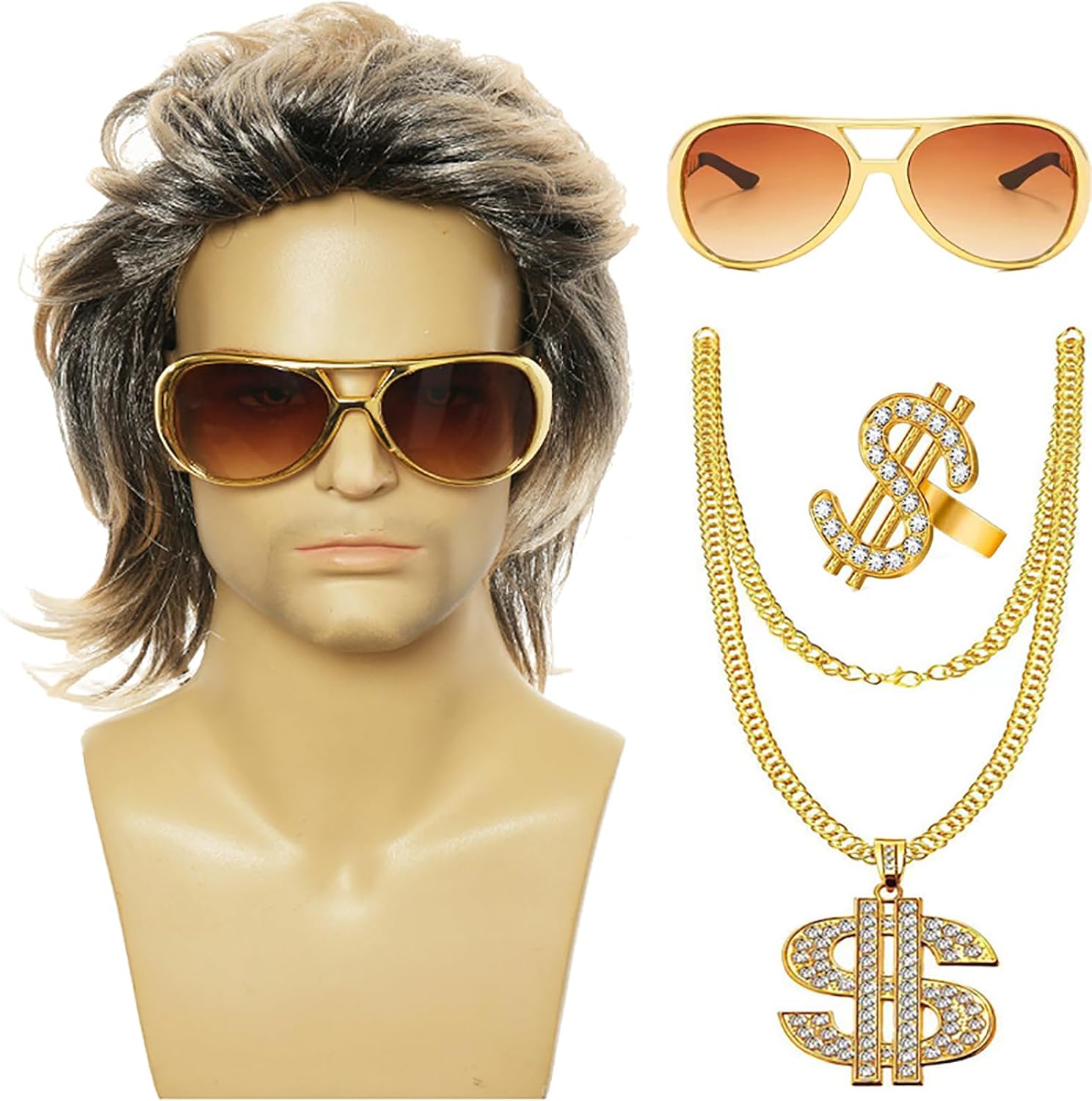 Set di accessori per costume da uomo anni '80, da donna, stile hippie, collana riccia per feste a tema