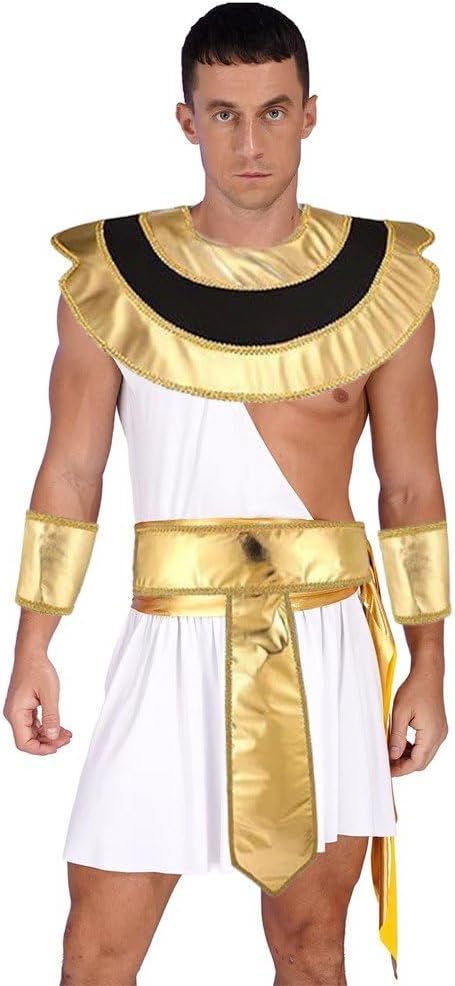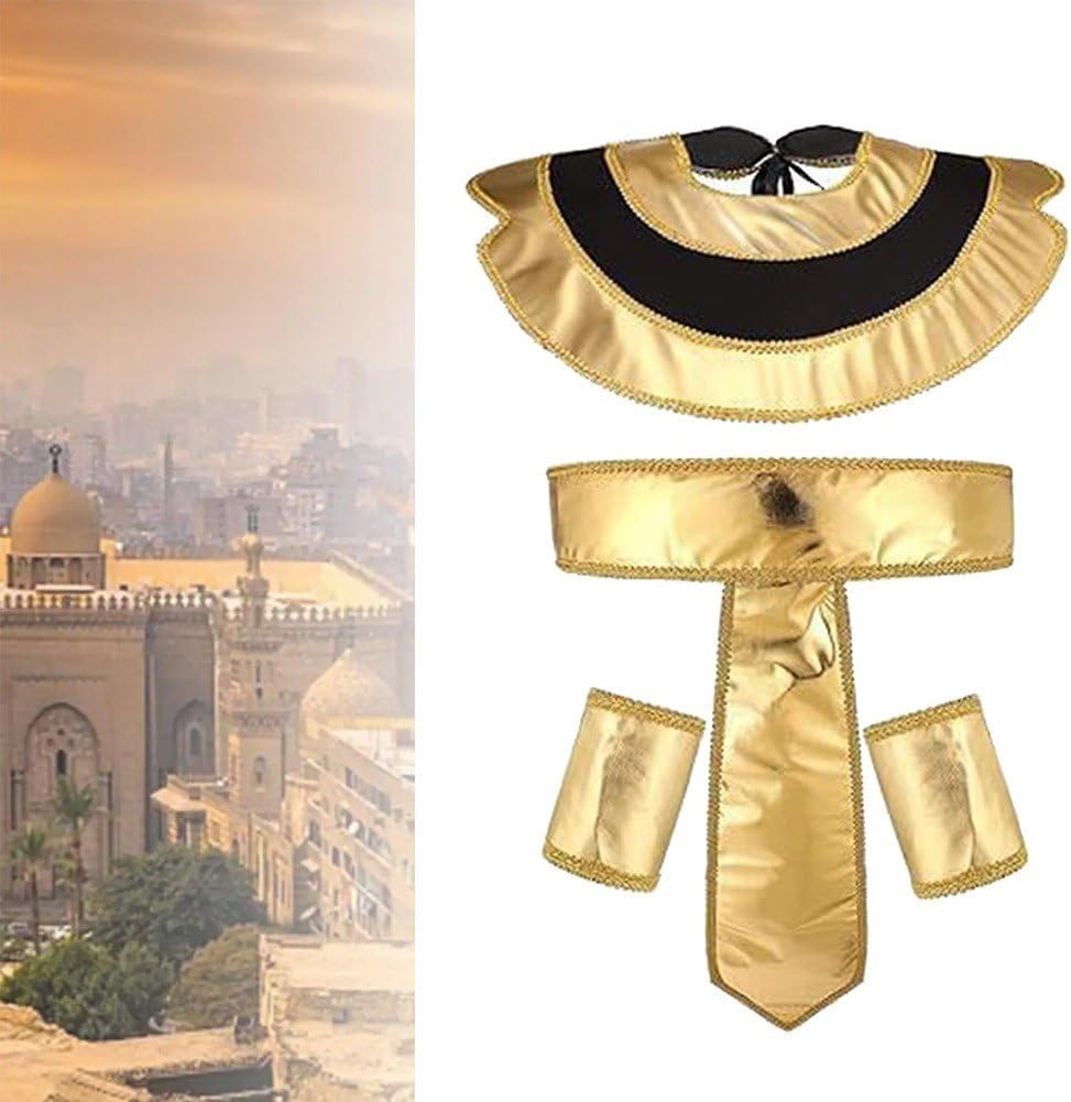 Costume Re Faraone: dona un look unico e giocoso ad Halloween con questo costume Re Faraone. Tutti ti faranno sicuramente un complimento! Design unico: questo cappello faraone presenta un design dettagliato, con audaci strisce dorate e nere, cattura l'essenza del copricapo regale di King Tut. Materiale: realizzato in tessuto resistente e leggero, questo costume egiziano è comodo indossare per lunghi periodi. Kit egiziano: combinare disegni a strisce dorate con stringhe, drappeggi e mantelli ti renderebbe il faraone più nobile della festa! Procurati il miglior costume re faraone per questo Halloween! Perfetto per molteplici occasioni: ideale per Halloween, feste a tema, rievocazioni storiche, spettacoli teatrali o eventi cosplay.