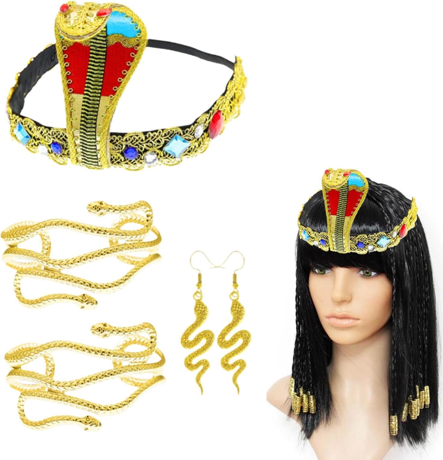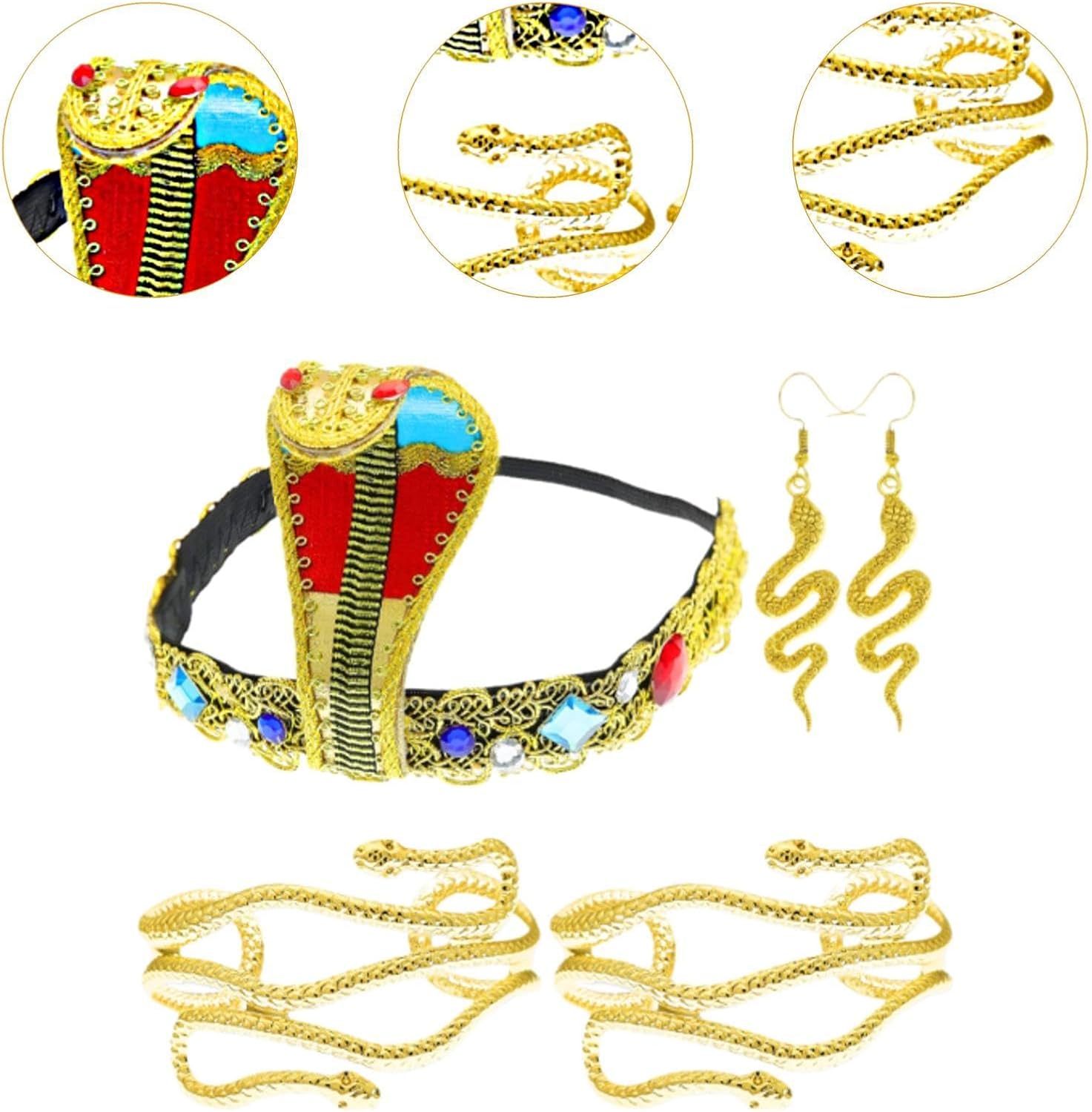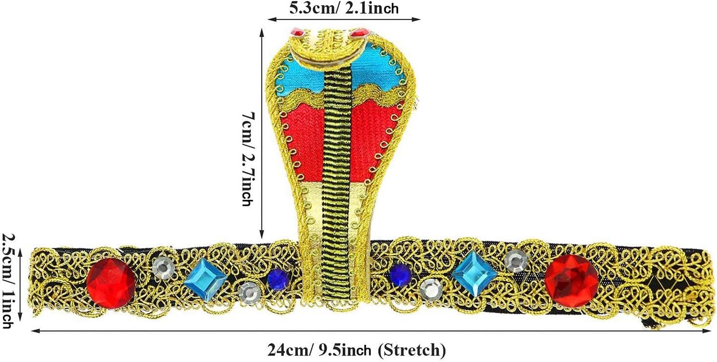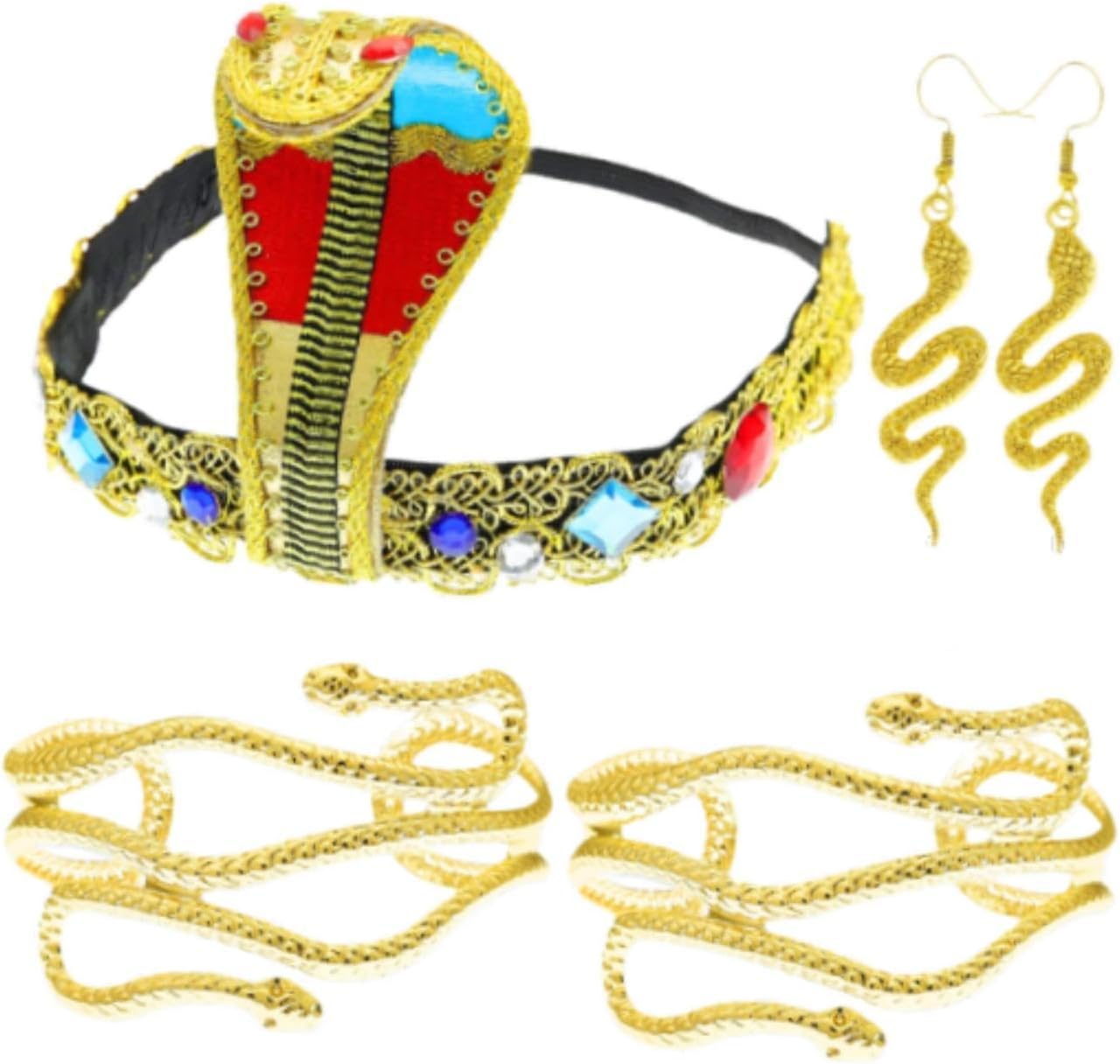 【Comodo da indossare】: i braccialetti leggeri sono progettati per aggiungere stile senza appesantire i polsi. Abbinali al copricapo e agli orecchini con motivo a serpente per un look completo o indossali separatamente in base alle tue preferenze 【Materiali di qualità】: realizzata con elastici, acrilico e tessuto composito, la fascia egiziana è progettata per adattarsi comodamente alla maggior parte delle donne. I suoi materiali promettono un uso prolungato e decorativo 【Splendente tema egiziano】: questo set di accessori per costumi presenta un incantevole tema egiziano, evidenziato da un copricapo a forma di testa di serpente. Gli orecchini e i braccialetti creano un look vivido e accattivante che ti assicura di distinguerti in qualsiasi 【Occasioni versatili】: ideali per feste di Halloween, spettacoli teatrali, eventi a tema o come oggetti di scena per foto con immagini straordinarie e divertenti che lasceranno impressioni a lungo 【Il set completo include】: la confezione contiene 1 copricapo (24 cm di larghezza x 7 cm di altezza), 2 bracciali a forma di serpente e 1 paio di orecchini pendenti a forma di serpente: tutto ciò di cui hai bisogno per creare un ensemble di ispirazione egizia