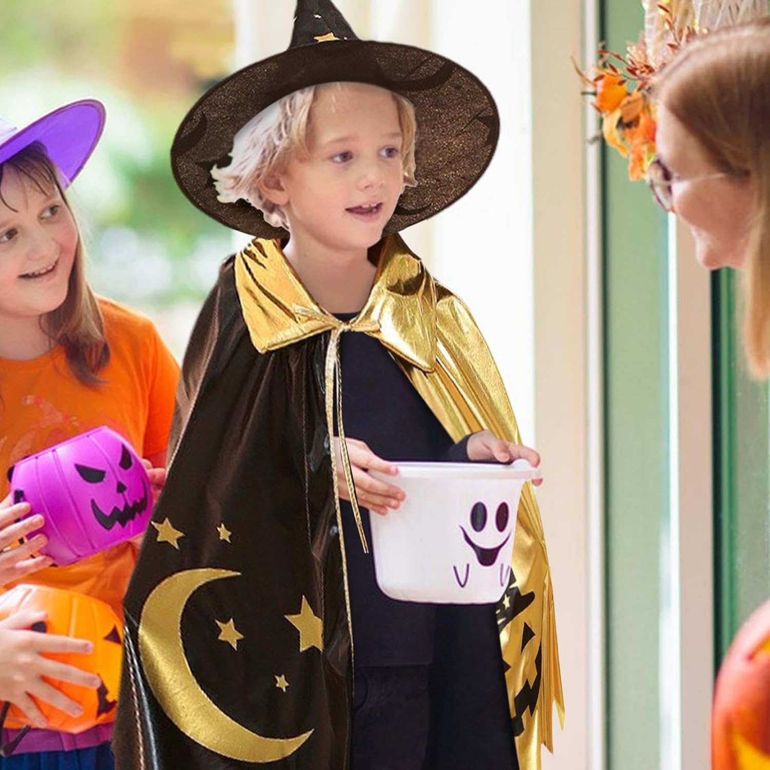 Stile meraviglioso: migliora il tuo gioco di costumi con questo splendido mantello da strega, con un design unico e accattivante. Sperimenta un abbigliamento sicuro e confortevole con materiali di alta qualità e tessuti morbidi che offrono una vestibilità accogliente, perfetta per l'uso di tutto il giorno. Design versatile: non solo adatto per feste di Halloween, ma anche per spettacoli teatrali scolastici o palle mascherate, rendendolo per le riunioni di famiglia e le feste a tema. Scelta fantastica: lascia che l'immaginazione di tuo figlio voli con questo mantello delle streghe. Una scelta meravigliosa per coltivare la loro creatività e mantenerli impegnati in attività di gioco di ruolo piene di divertimento che aiutano nella loro sana crescita. per compleanni e vacanze, trasmette anche i buoni auguri del donatore. Connessione tra pari: migliorare l'interazione tra genitori e bambini o colleghi con questo mantello delle streghe, perfetta per il gioco di ruolo con la famiglia o gli amici. Stile unico: questo mantello da strega ha un design creativo che combina stelle, lune e immagini di streghe per un'esperienza di Halloween piena di fantasia. L'atmosfera misteriosa che trasuda sicuramente affascinerà l'immaginazione dei bambini.