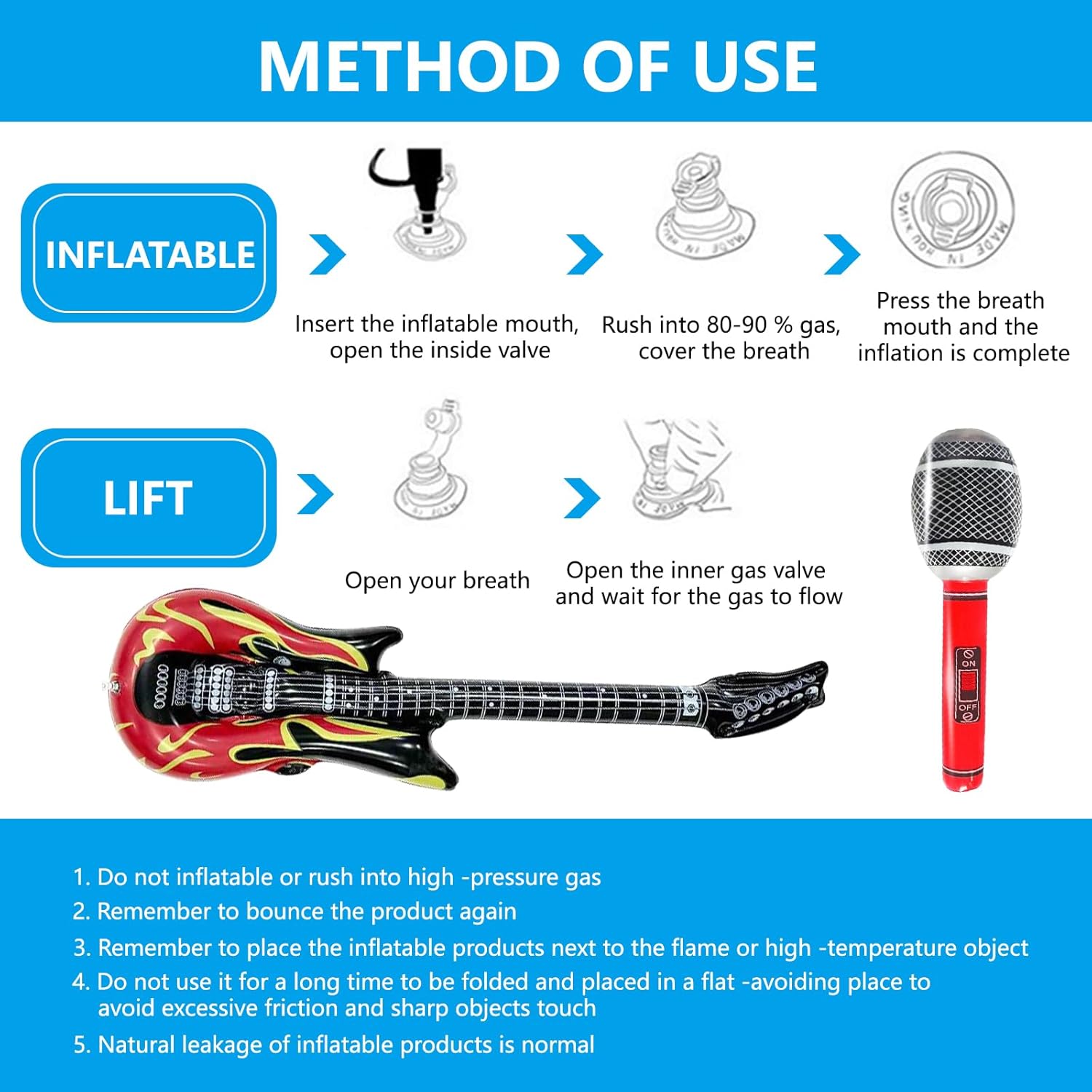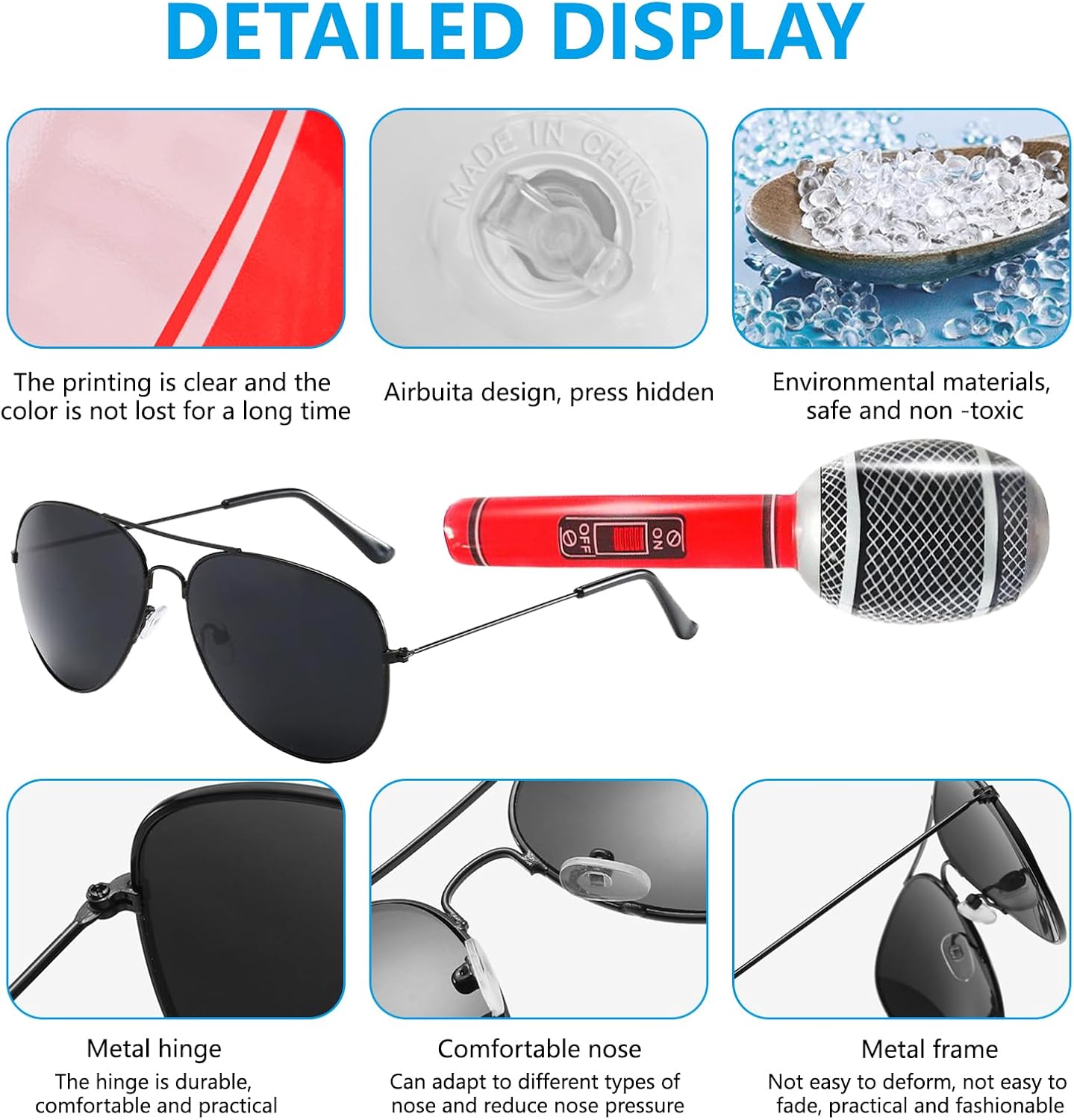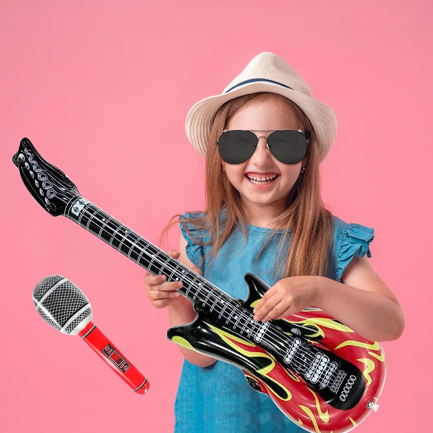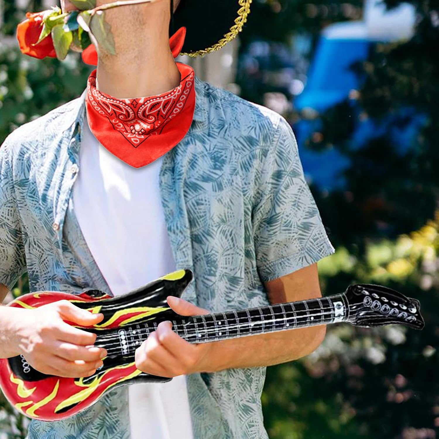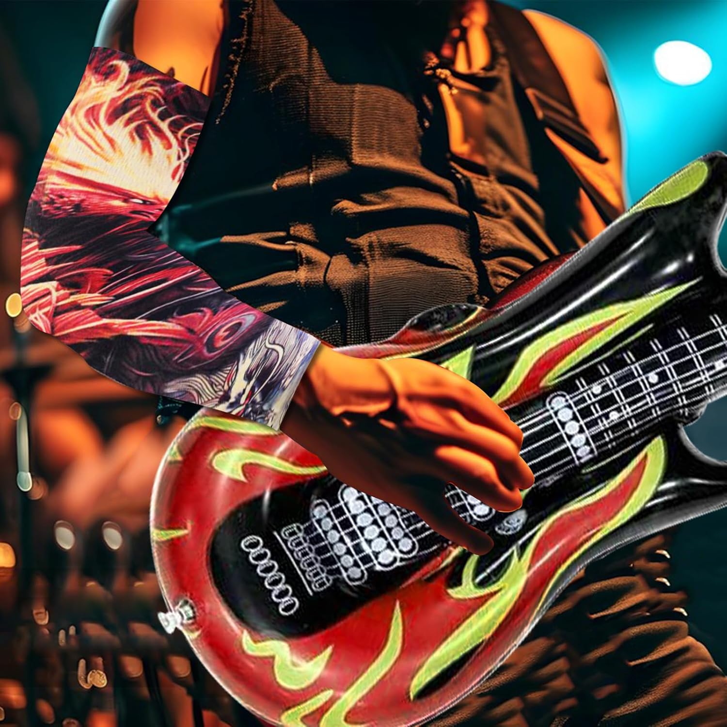Kit di accessori rock: Il nostro kit include: 2 tatuaggi temporanei, un paio di guanti a mezzo dito stile punk, 2 bandane punk, un paio di occhiali da sole con montatura nera, una chitarra gonfiabile e un microfono gonfiabile. Materiali di alta qualità: I coprisleeve del tatuaggio e le bandane sono realizzati in poliestere di alta qualità, elastico e traspirante per un comfort ottimale. Gli altri accessori sono fatti di materiali resistenti e duraturi. Microfono e chitarra gonfiabili: Realizzati in PVC di alta qualità, queste due divertenti decorazioni sono indispensabili per qualsiasi amante del rock. Ideale per feste rock: Completo di una serie di accessori, questo kit vi farà sembrare una vera rock star. È perfetto per le feste a tema anni '80, adatto a uomini e donne. Usi diversificati: Ideale per eventi rock indoor o outdoor, feste a tema, Halloween, San Valentino, Natale, compleanni, spettacoli, ballo in maschera e altre festività.