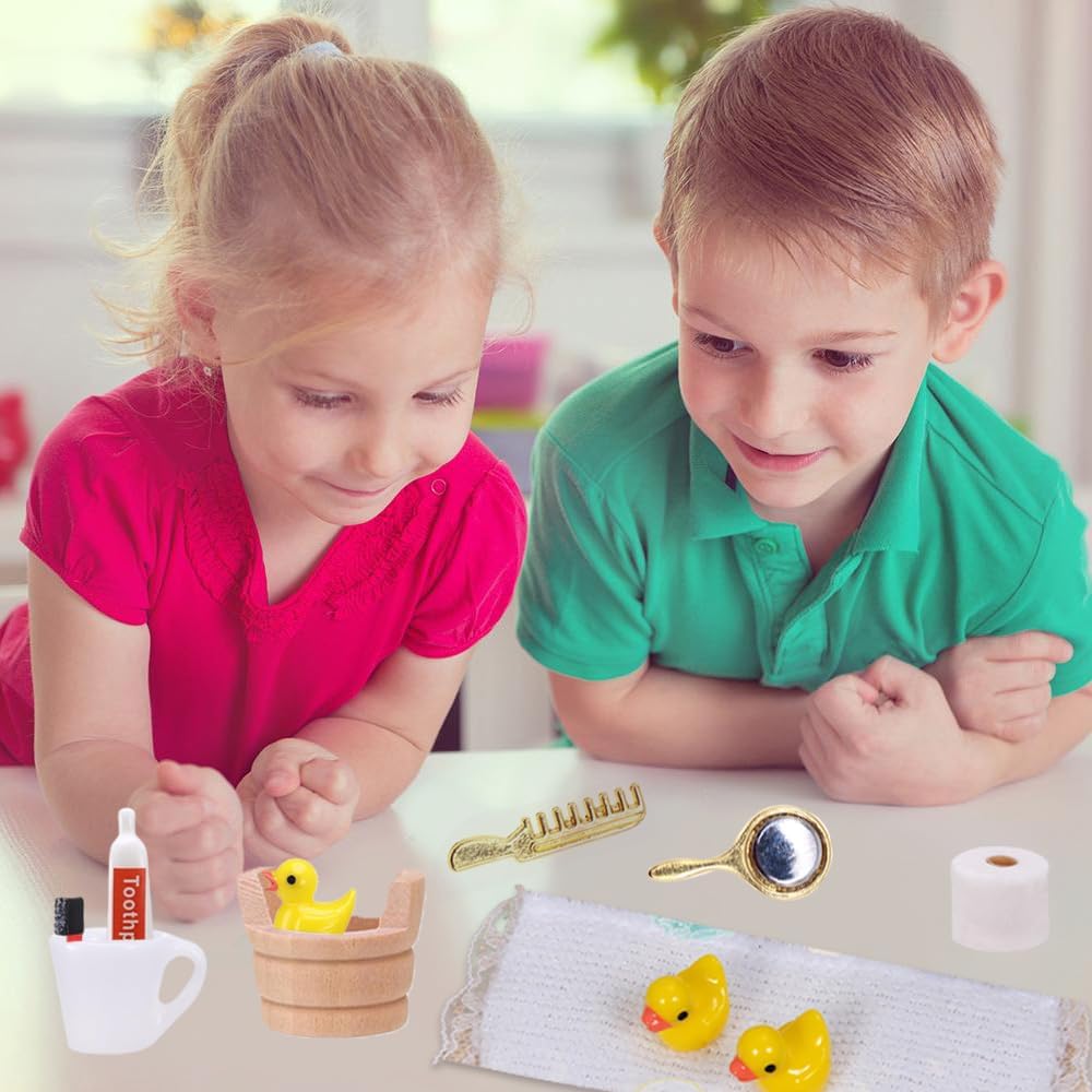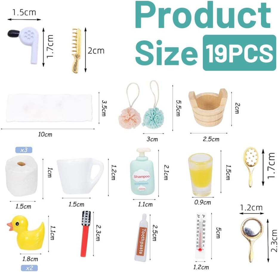 Mini accessori per vasca: accessori essenziali per un totale di 19, tra cui micro dentifricio, mini spugna, asciugamani, anatra, mini rotolo di carta igienica, shampoo, sapone, pettine, ecc. Il numero di accessori in miniatura è sufficiente per soddisfare le esigenze di diversi scenari. Materiale di qualità: gli accessori sono realizzati con materiali di alta qualità. Il colore degli accessori è luminoso e luminoso, non si danneggia facilmente, sbiadito o scolorito, la struttura è robusta e può essere utilizzata a lungo. Gli accessori in miniatura possono garantire sia la sicurezza dei bambini durante il gioco, sia soddisfare le esigenze della decorazione a lungo termine e offrire divertimento duraturo. Design realistico: gli accessori a forma di gnomo sembrano realistici, i dettagli sono ricchi. Gli accessori natalizi possono creare una vera e propria scena di lavaggio e bagno, combinati con pregevole fattura e texture naturale per sostituire la mini scena e dare allo spazio decorativo un'atmosfera vivace e autentica. Stimolazione dell'immaginazione: gli accessori importanti sono adatti per la combinazione e la ristrutturazione di molte scene e i bambini possono progettare esclusive decorazioni natalizie e molto altro ancora. Che si tratti di un bagno, di una piscina nana o di un piccolo mercatino di Natale, gli accessori natalizi offrono ai bambini il divertimento. Regalo ideale: gli accessori a forma di gnomo si adattano all'atmosfera natalizia ed è la scelta ideale per una ricca decorazione e una sensazione magica. Gli accessori per porta di gnomo, il design grazioso, le funzioni ricche e l'ampia applicabilità lo rendono un piccolo collezionista di casa, come decorazione fai da te per bambini, regali di Natale o regali di compleanno, accessori per porta di Babbo Natale possono soddisfare la ricca domanda dei bambini di case delle bambole amate dai bambini.