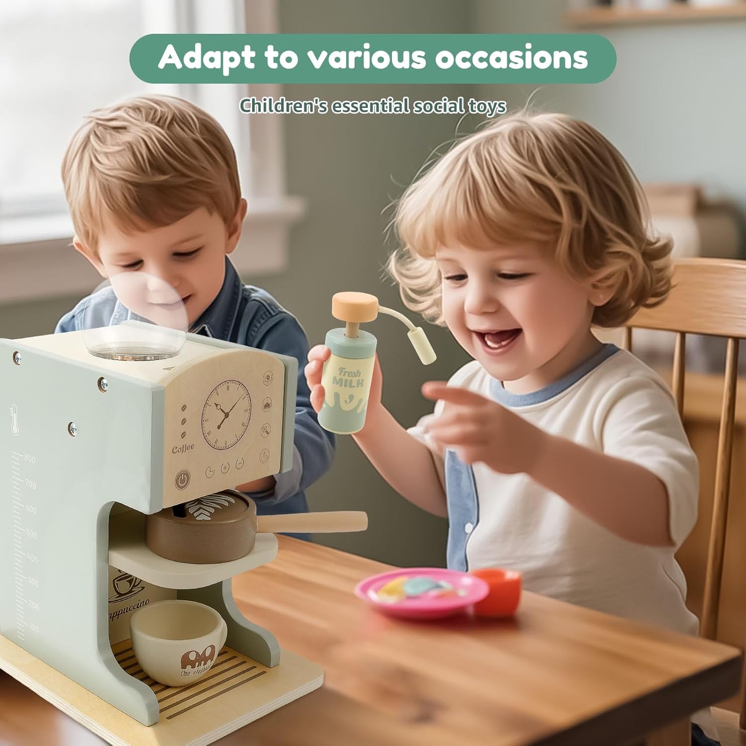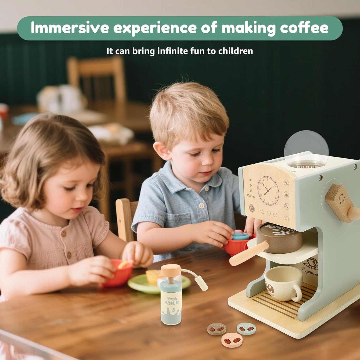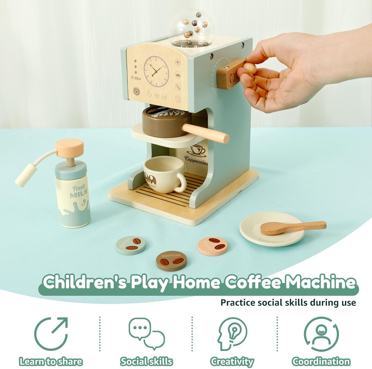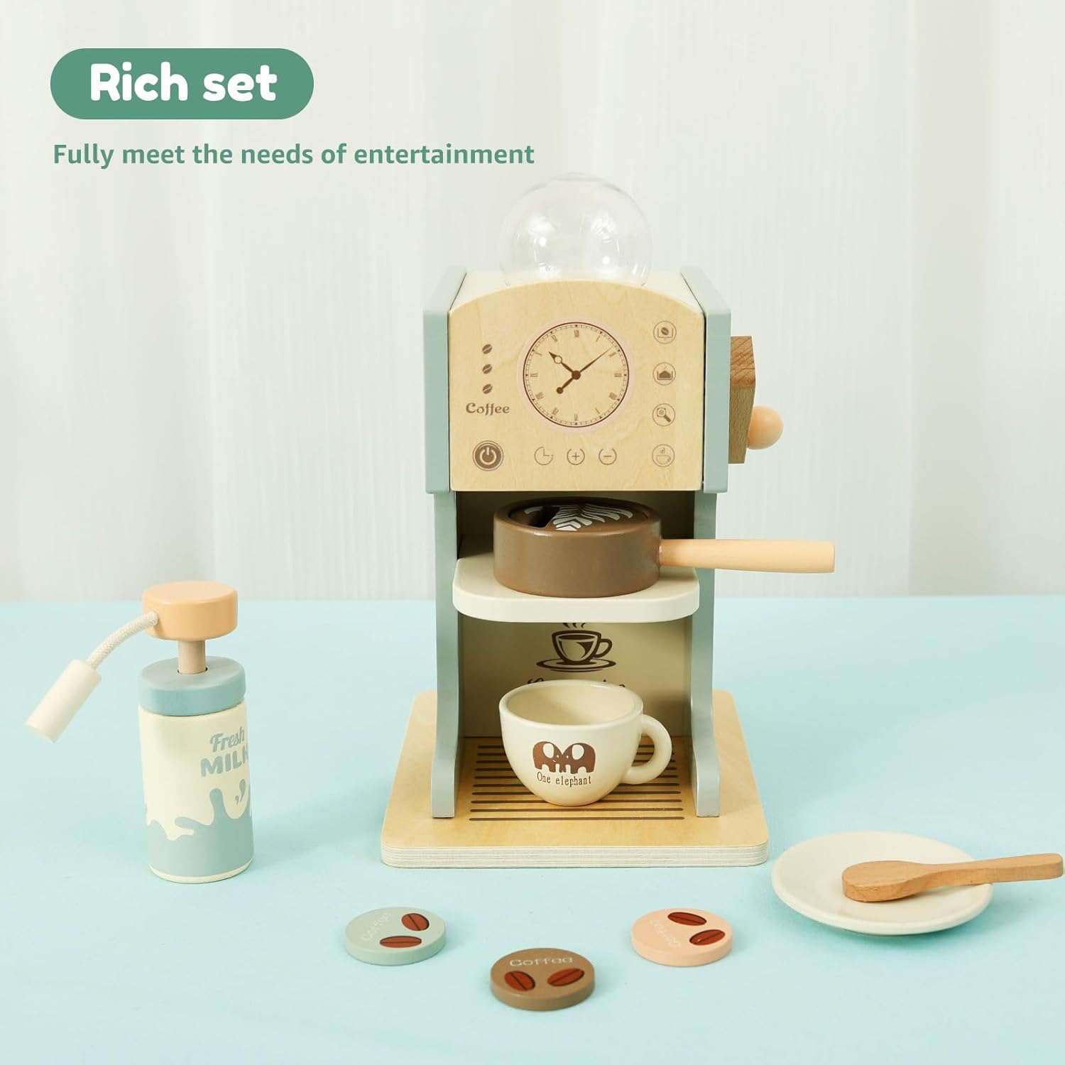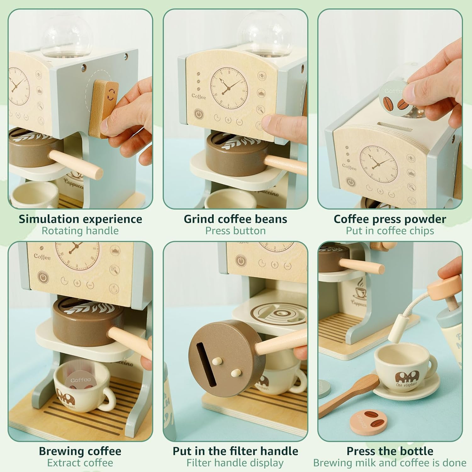 Materiale in legno: il giocattolo per macchina da caffè per bambini è realizzato in legno, che ha una struttura forte e non è facile da rompere e deformare, che può sopportare il gioco ripetuto dei bambini nella loro vita quotidiana. Esperienza di simulazione: questo giocattolo per macchina da caffè in legno simula una vera situazione di preparazione del caffè, in modo che i bambini possano immergersi nel processo di preparazione del caffè e divertirsi. Set ricco: il set da gioco per macchina da caffè include una macchina da caffè, un montalatte, una tazza, un tampone per tazze, un cucchiaio, una caffettiera e capsule di caffè. Facile da pulire: questo giocattolo per macchina da caffè in legno è facile da pulire e può essere tenuto pulito semplicemente strofinando con un panno umido, risparmiando tempo e fatica durante la pulizia. Regalo unico: i giocattoli per macchina da caffè in legno per bambini possono esercitare le mani dei bambini sulla capacità di esercitarsi e sono il regalo ideale per le vacanze e il compleanno dei bambini.