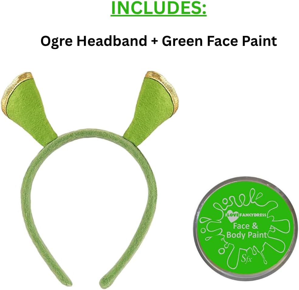 Look completo orco: include 1 fascia per orecchie da orco verde e 1 vasetto di vernice verde per il viso per una trasformazione facile e veloce. Facile da applicare e da togliere: la vernice per il viso si applica senza problemi e si lava via con acqua e sapone; sicura per tutti i tipi di pelle. Perfetto per feste – Ideale per Halloween, eventi scolastici, feste a tema o divertimento cosplay. Adatto a bambini e adulti: la fascia morbida e flessibile si adatta comodamente a tutte le età per ore di divertimento degli orchi. Stile di carattere immediatamente riconoscibile - Un modo semplice e divertente per diventare una creatura divertente palude verde!