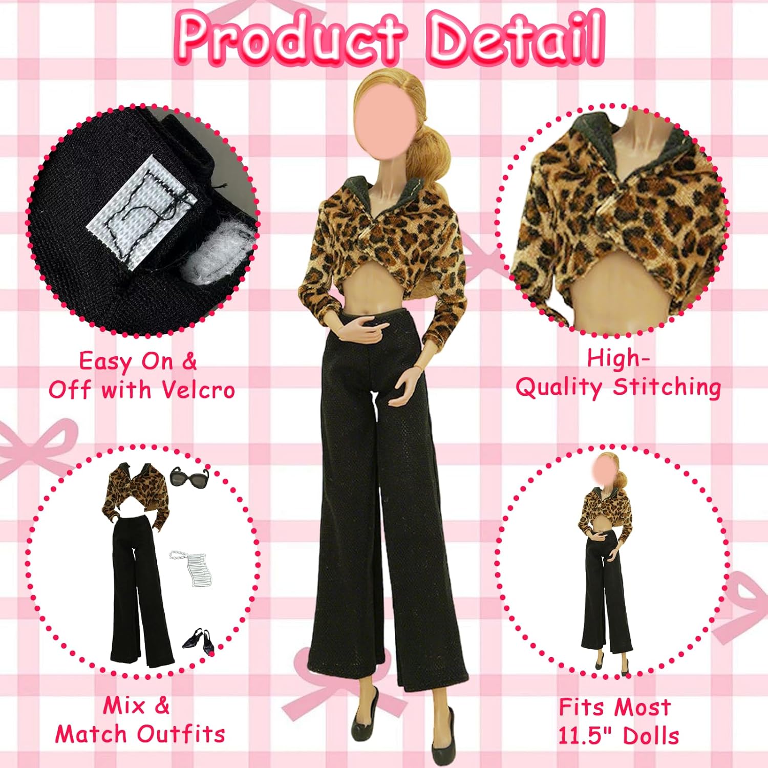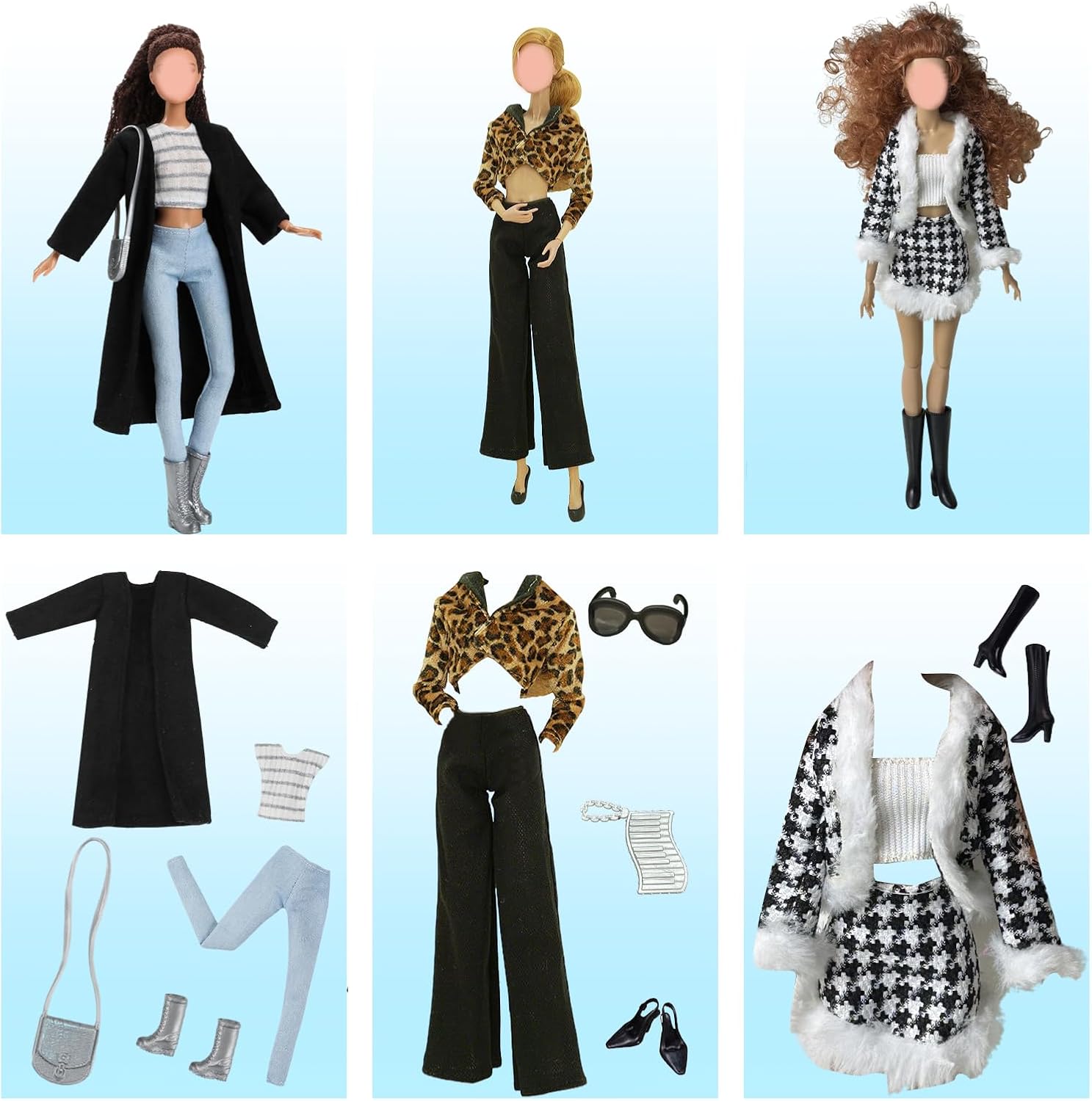Trio pied de poule e cappotto nero – Caratterizzato da gonne pied de poule e stili di cappotto/giacca a vento neri, che combinano chic retrò ed eleganza moderna per un appeal cool-girl. Combinazioni di abiti versatili: pantaloni a maniche lunghe con stampa leopardata, abito scozzese, gonna in maglia con scialle in peluche e abito con scialle in peluche da principessa offrono divertimento mix and match con un'estetica fresca, dolce ed elegante. Collezione completa di scarpe e accessori: viene fornita con un paio di tacchi alti a punta, due paia di stivali, un paio di scarpe da ginnastica, quattro borse, due collane e un paio di occhiali da sole, perfetti per completare ogni look alla moda. Materiali sicuri e di alta qualità: abbigliamento realizzato con morbidi tessuti misto cotone con colori vivaci; Accessori in plastica, sicuri, delicati sulla pelle e resistenti per i giochi dei bambini. Opzione regalo perfetta: elegante set da 24 pezzi con stili mescolabili, ideale per compleanni, Natale o giochi di travestimento fantasiosi. Parole chiave: scelta del regalo, regalo per le feste, gioco di vestire.