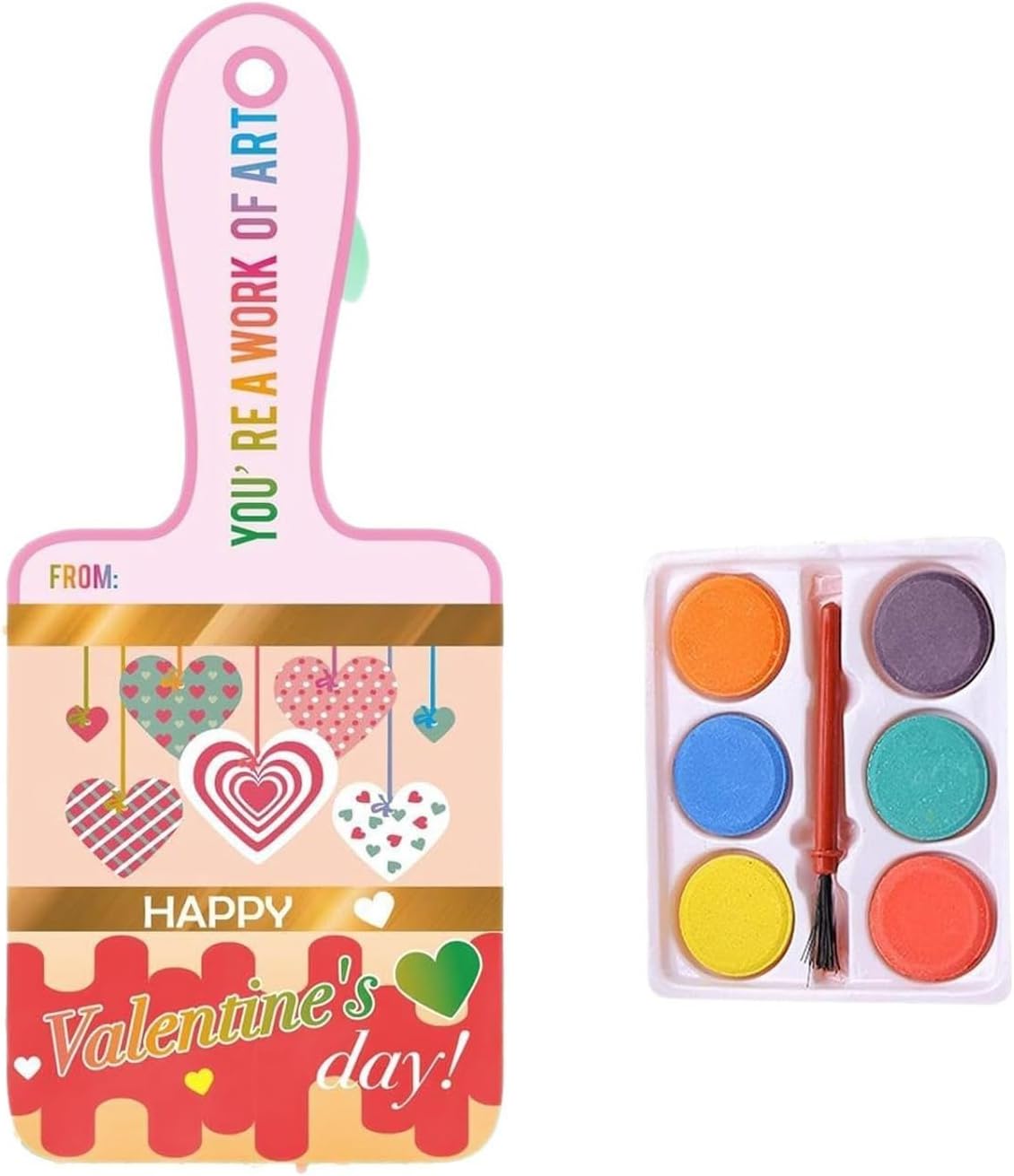Questa pittura ad acquerello è realizzata con pigmenti, lavabile, sicura per i bambini, facile da miscelare e buona durata Ogni set include 6 colori ad acquerello, pennello, biglietto di San Valentino, che consente di condividere la tua creazione artistica con gli amici in modo unico Scopri il mondo dell'arte con il nostro set di pittura ad acquerello a tema San Valentino, con 6 colori lavabili ad acquerello, ideali per scatenare la creatività durante la celebrazione di San Valentino Molto adatto per studenti, bambini, appassionati d'arte e professionisti, questo set di acquerelli si rivolge a chiunque ami la pittura ad acquerello Ampiamente usata per scambi di classe, progetti artistici scolastici o feste a tema San Valentino, questa pittura ad acquerello fornisce un'espressione divertente e artistica in vari ambienti