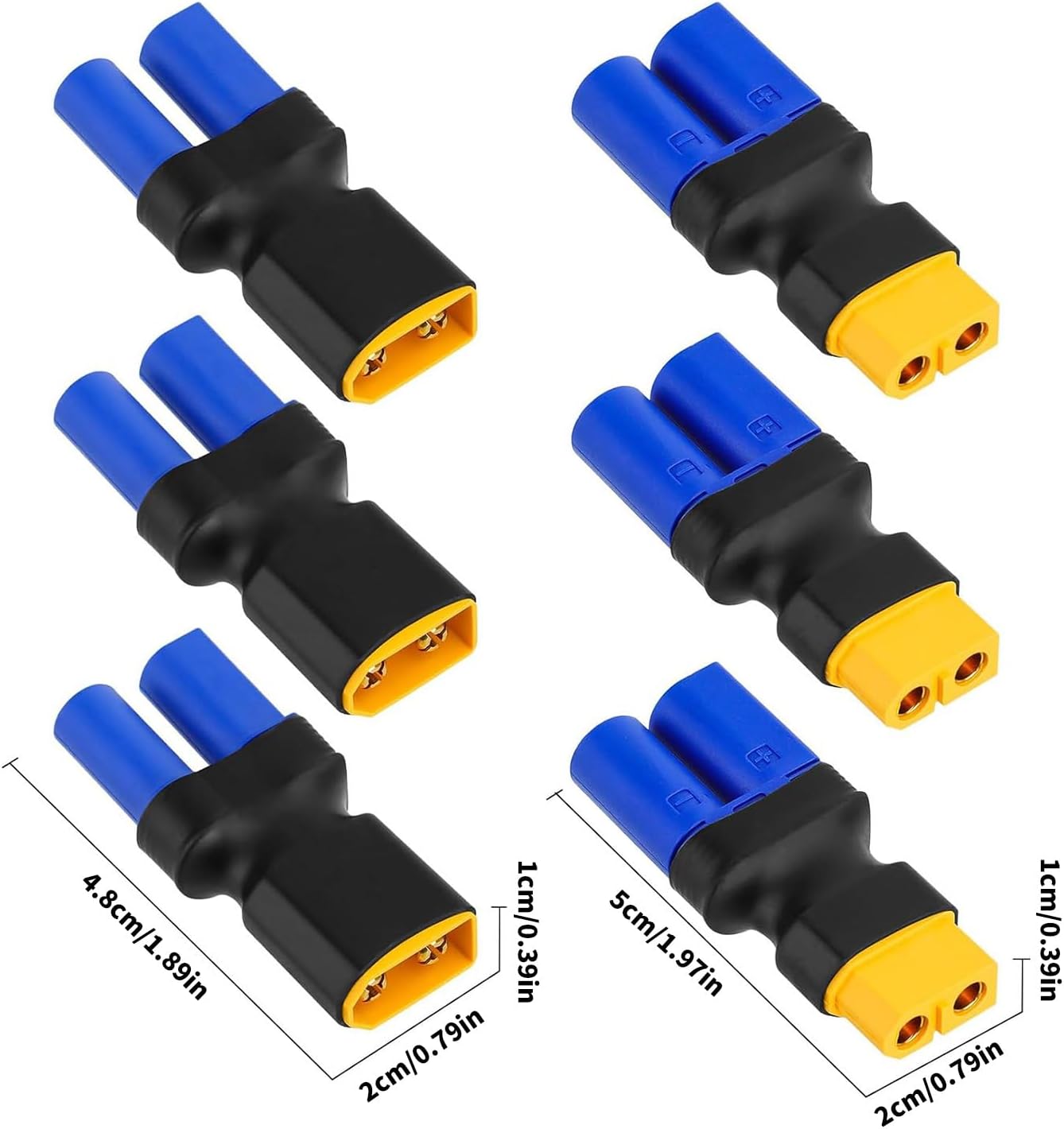 Questo set di adattatori da 6 pezzi a EC5 offre una compatibilità versatile per dispositivi remoti, con 3 connettori EC5 maschio a femmina e 3 connettori EC5 femmina a maschio per convertire senza problemi batterie EC5 in interfacce su ESC/caricabatterie. Realizzati con alloggiamento e contatti progettati con precisione, questi adattatori compatti garantiscono una connessione sicura e a bassa resistenza pur mantenendo una portabilità leggera per operazioni ininterrotte di veicoli/droni remoti. Ideale per hobbisti remoti, appassionati di droni e utenti tecnici che richiedono la conversione di interfacce tra dispositivi equipaggiati e sistemi di batterie EC5 in progetti competitivi o fai da te. Perfetto per sostituire batterie sul lato pista, aggiornamenti delle attrezzature da officina o regolazioni della compatibilità della stazione di ricarica, consentendo un trasferimento di potenza fluido tra batterie moderne e componenti remoti. Il pacchetto include: 3 adattatori da maschio a EC5 femmina, 3 adattatori femmina a EC5 maschio