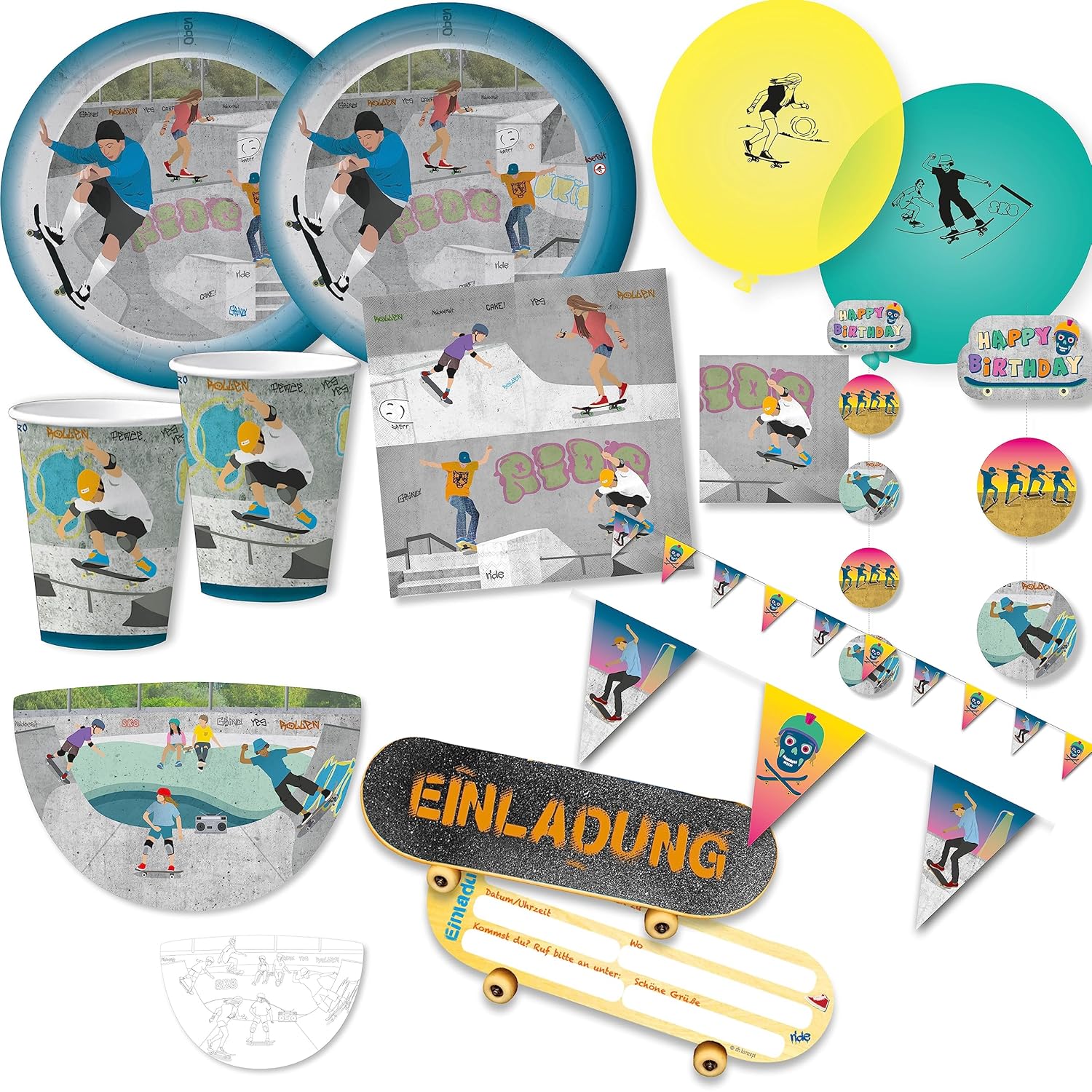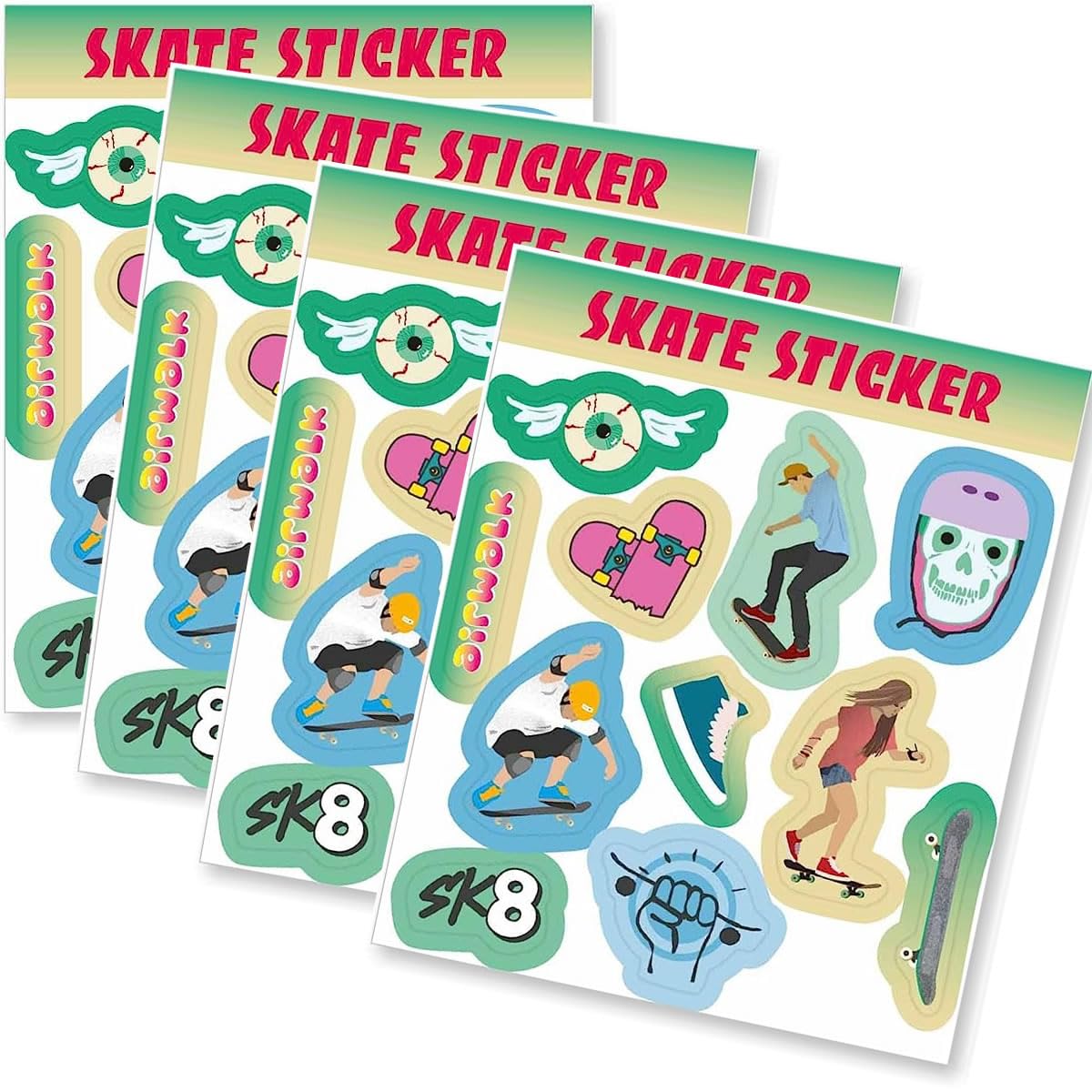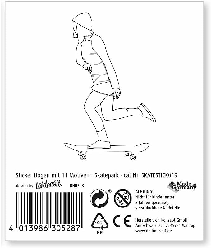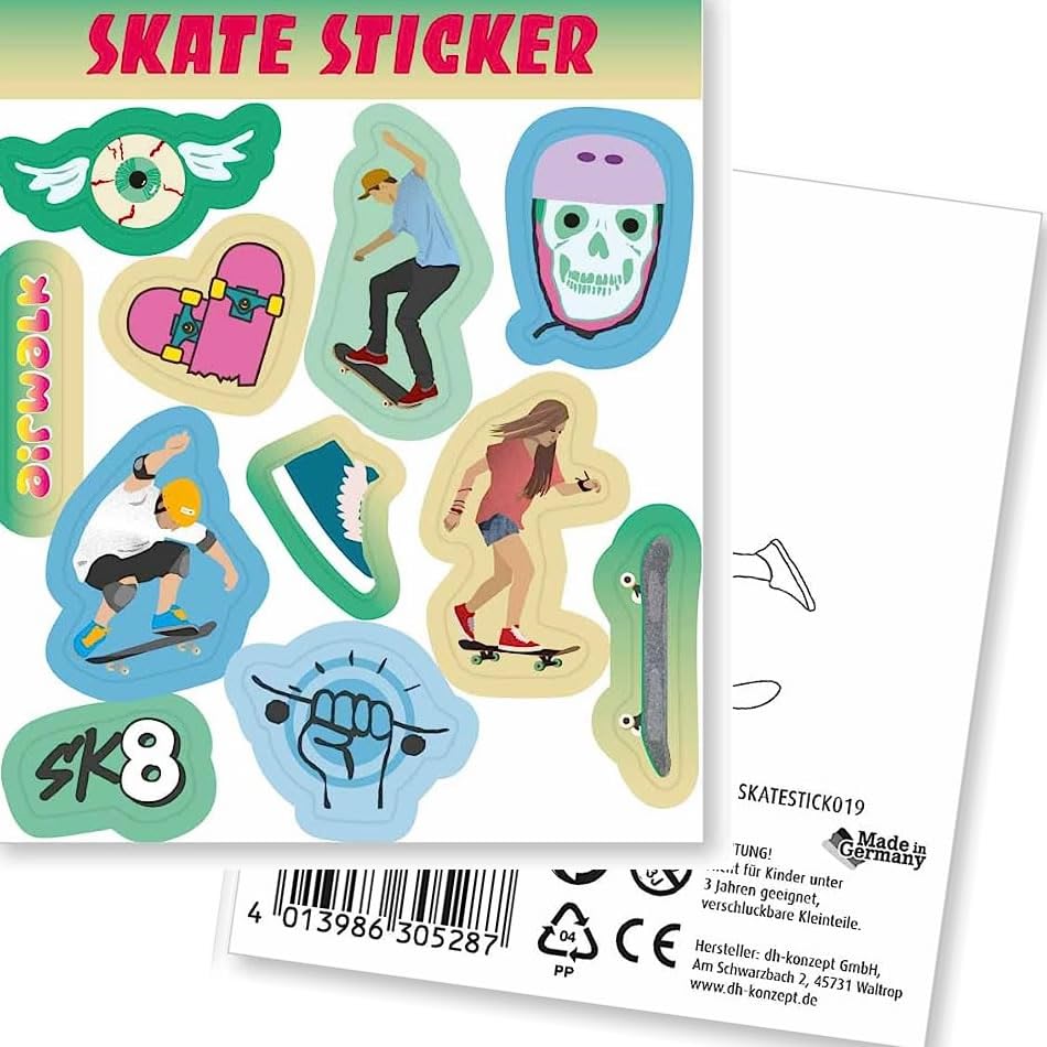 Mega set di adesivi * SKATER * come regalo per la festa di compleanno o un regalo di un bambino ✔ ... composto da 4 fogli ciascuno con 11 adesivi con fantastici motivi per bambini ✔ IN PIÙ: Libro "Gioca + Divertimento con tatuaggi e adesivi per bambini" con fantastiche idee sui tatuaggi e adesivi dei nostri bambini ✔ Facile da usare (istruzioni sul retro) ✔ Made in Germany. Ingredienti, avvertenze e contatto con il produttore: vedere l'immagine dettagliata ✔