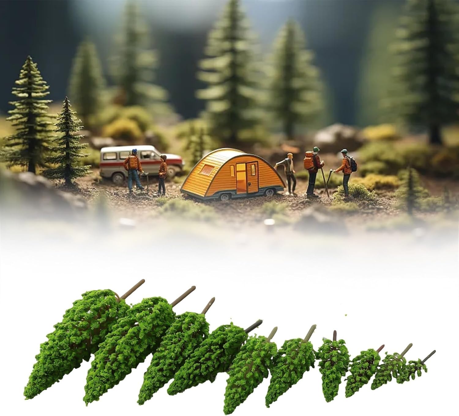 Alberi modello versatili per scene paesaggistiche: crea splendide scene in miniatura con questi alberi di pino altamente dettagliati. Con un'altezza da 4,8 cm a 16 cm, sono l'aggiunta perfetta per set di treni, diorami ferroviari, terreni di wargame e progetti di modellismo. Il loro aspetto realistico esalta qualsiasi paesaggio in miniatura con autentici elementi naturali. Design realistico in pino con diverse altezze: ogni set include 10 alberi modello in diverse altezze (4,8/5,8/6,8/7,8/8,5/9,5/11/13/15/16 cm) consentendo profondità e dimensione nei tuoi display. Il design del pino accuratamente realizzato presenta rami e fogliame dettagliati che imitano gli alberi della vita reale, aggiungendo autenticità al tuo mondo in miniatura. Materiali di qualità per un uso prolungato: realizzati in plastica di alta qualità con basi robuste, questi alberi mantengono la loro forma e il colore verde vibrante nel tempo. La struttura resistente resiste alla manipolazione durante i cambi di scena e i riarrangiamenti, rendendoli componenti affidabili per progetti e display di hobby a lungo termine. Scala 1:100 per una modellazione accurata: Accuratamente scalati a 1:100, questi alberi si integrano perfettamente con modelli ferroviari standard, display architettonici e paesaggi in miniatura. Questo ridimensionamento accurato aiuta a mantenere proporzioni adeguate nelle scene, creando ambienti in miniatura più convincenti e rifiniti professionalmente. Modellazione decorativa multiuso: modellazione tradizionale, questi alberi versatili servono come affascinanti elementi decorativi per composizioni di bonsai, terrari, giardini fatati e display stagionali. Il loro aspetto naturale completa vari progetti creativi, aggiungendo un tocco di verde a qualsiasi ambiente in miniatura o attività artigianale.