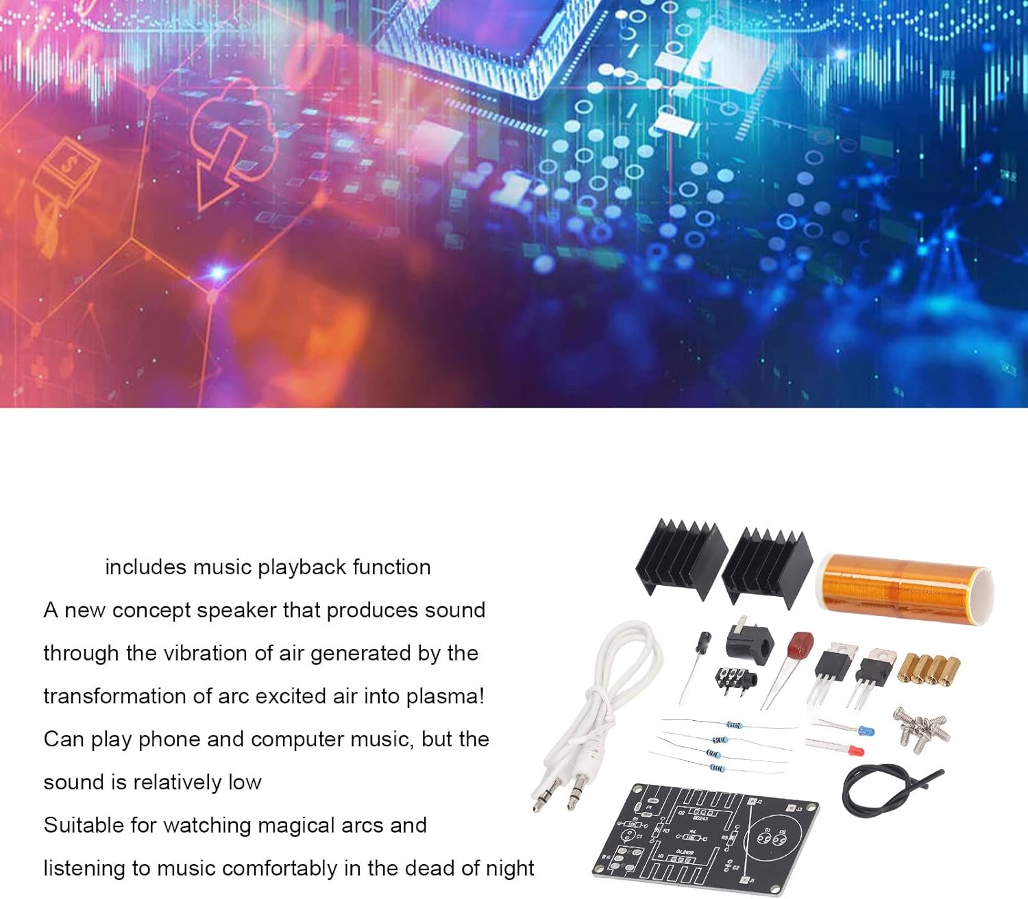 [RIPRODUZIONE MUSICALE INNOVATIVA] Immergiti in un altoparlante rivoluzionario che converte l'aria eccitata dall'arco per creare suoni affascinanti. Goditi la miscela perfetta di intrattenimento audio e spettacolo visivo. [DISPLAY ARC AGAGICO] Sperimenta l'incantevole visualizzazione degli archi creati dai fili di coda quando la bobina è attivata. Migliora la tua esperienza fai-da-te con un tocco di eleganza e fascino. [ILLUMINAZIONE SOTTOVUOTO MOZZAFIATO] Crea un'atmosfera affascinante illuminando una lampada fluorescente nel vuoto utilizzando la bobina. Goditi una presentazione visivamente accattivante con questa funzione di illuminazione unica. [GESTIONE EFFICIENTE DEL CALORE] Gestire efficacemente la dissipazione del calore durante il funzionamento per evitare di toccare il dissipatore di calore caldo. Lo sviluppo del circuito passa attraverso estesi esperimenti di ottimizzazione per prestazioni superiori. [PARAMETRI FUNZIONALI PRECISI] Utilizza il kit con una tensione di ingresso di 15-24 V CC e una corrente di 2 A per garantire prestazioni affidabili e costanti. Il kit Mini Music Coil è