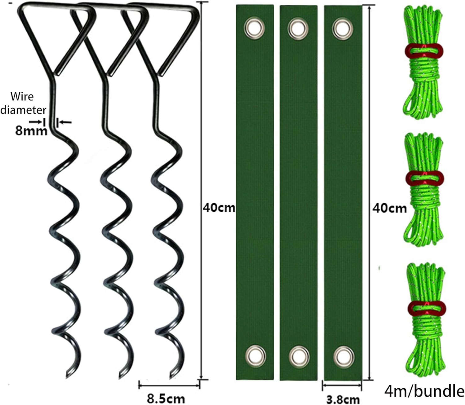1. Set completo di 9 pezzi: il kit comprende 3 strisce verdi da 40*3,8 cm, 3 fasci di corde antivento verdi (4 metri per fascio) e 3 ancoraggi a terra elicoidali neri da 40*8,5 cm. Tutto ciò di cui hai bisogno per il trampolino è in un unico comodo pacchetto. 2. Compatibilità con tutti i terreni: progettato per tutti i tipi di terreno, anche quelli sabbiosi. Le ancore elicoidali possono facilmente penetrare nel terreno e resistere a una trazione verticale fino a 1.000 libbre. 3. Corda antivento facile da usare: con il design a due fori e la regolazione con un solo tocco, puoi stringere o allentare rapidamente la corda. La corda è realizzata in materiale lavorato a maglia robusto e ad alta resistenza, resistente all'abrasione, allo strappo e facile da trasportare. 4. Struttura durevole: la fascia dell'albero è realizzata in nylon per garantire una durata a lungo termine. Gli ancoraggi a terra sono realizzati in solido metallo laminato con eccellente resistenza alla corrosione per prestazioni di lunga durata. 5. Delicato sugli alberi: la striscia piatta può prevenire danni alla corteccia, rendendola adatta a tutti i tipi di alberi. Ideale per sostenere gli alberi a lungo termine.